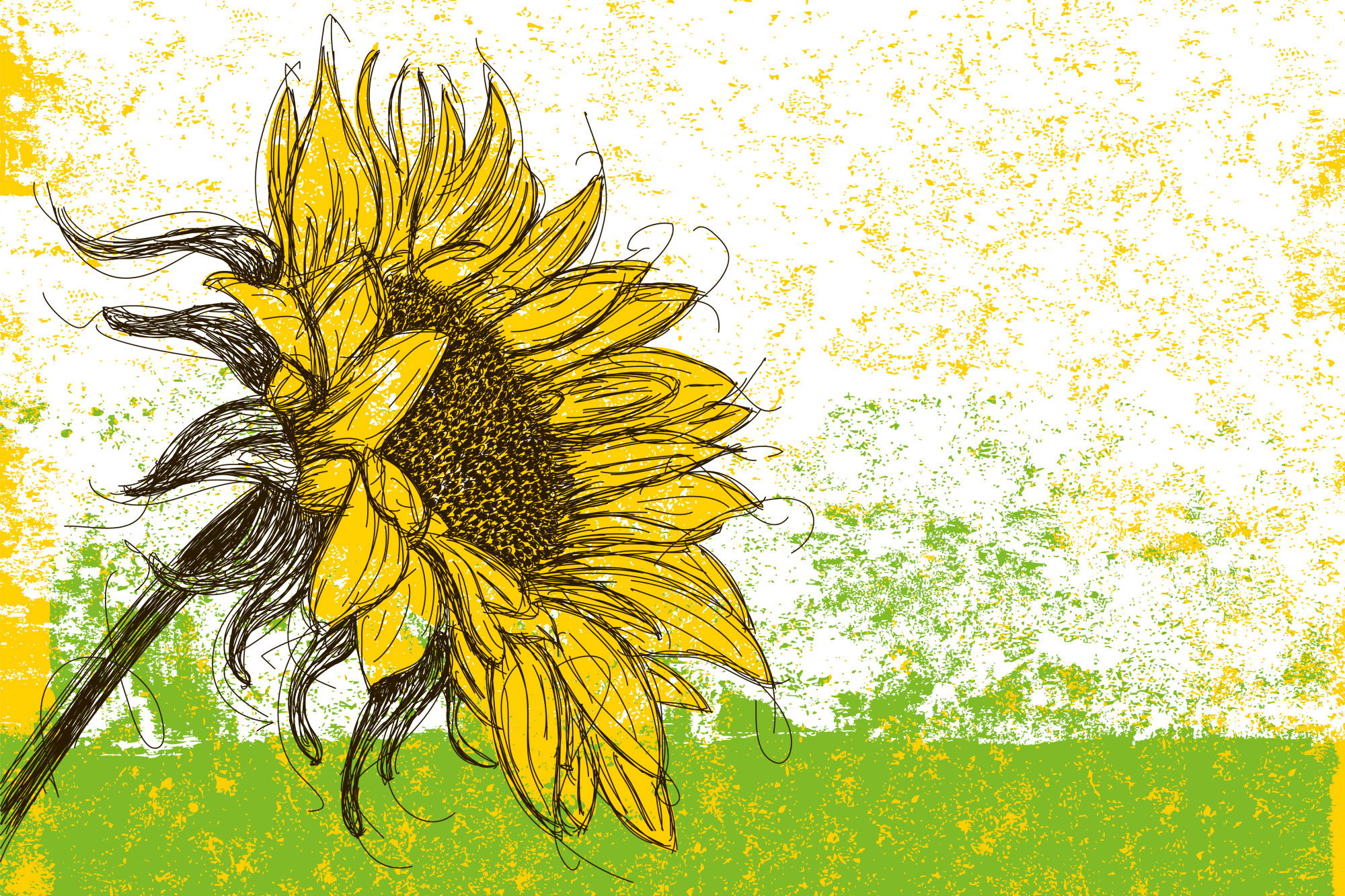 Ljuddämpande tavla – Drawn sunflower in retro för lugnare rum och mjukare akustik