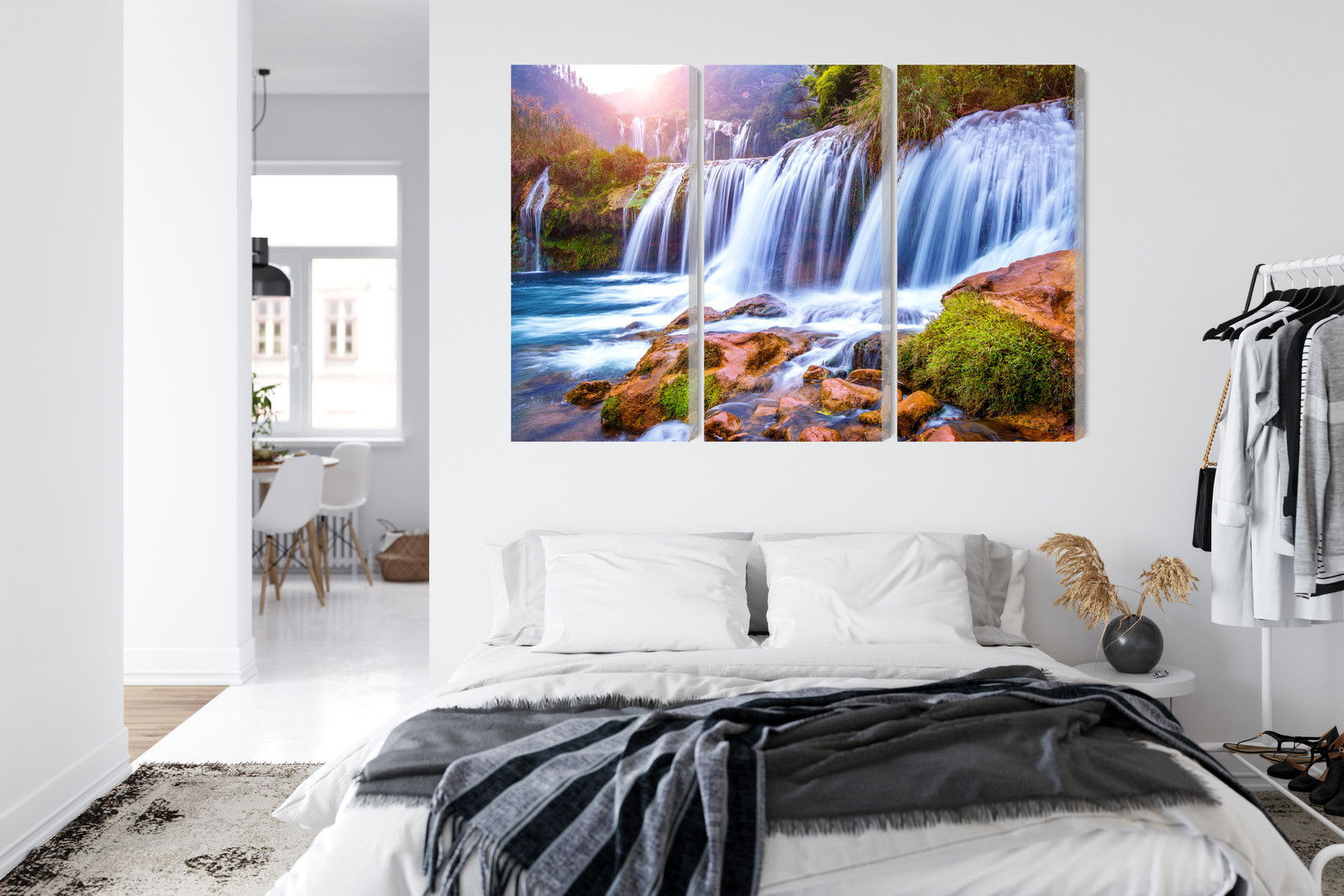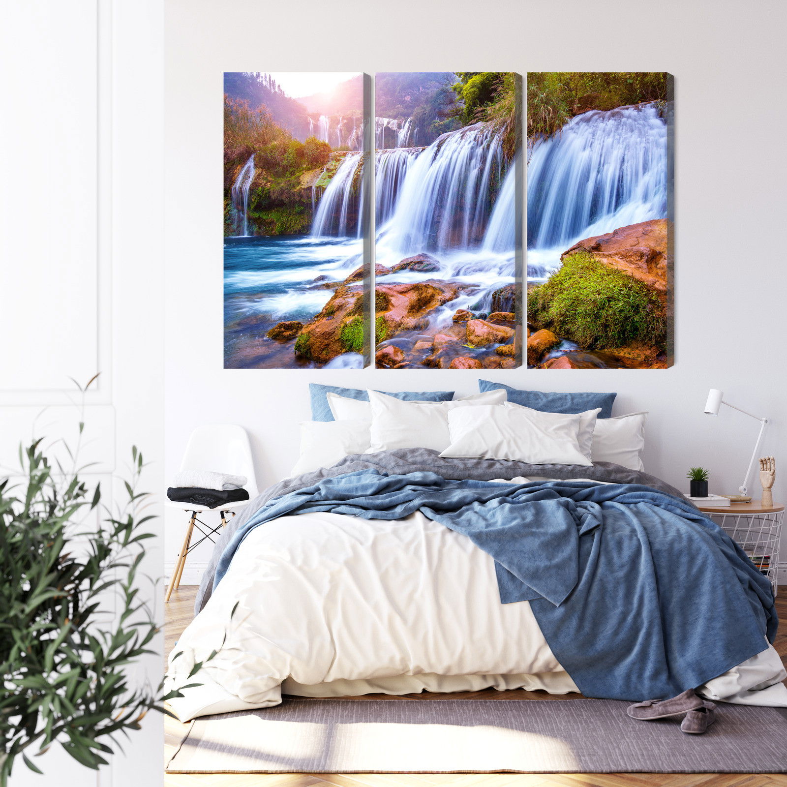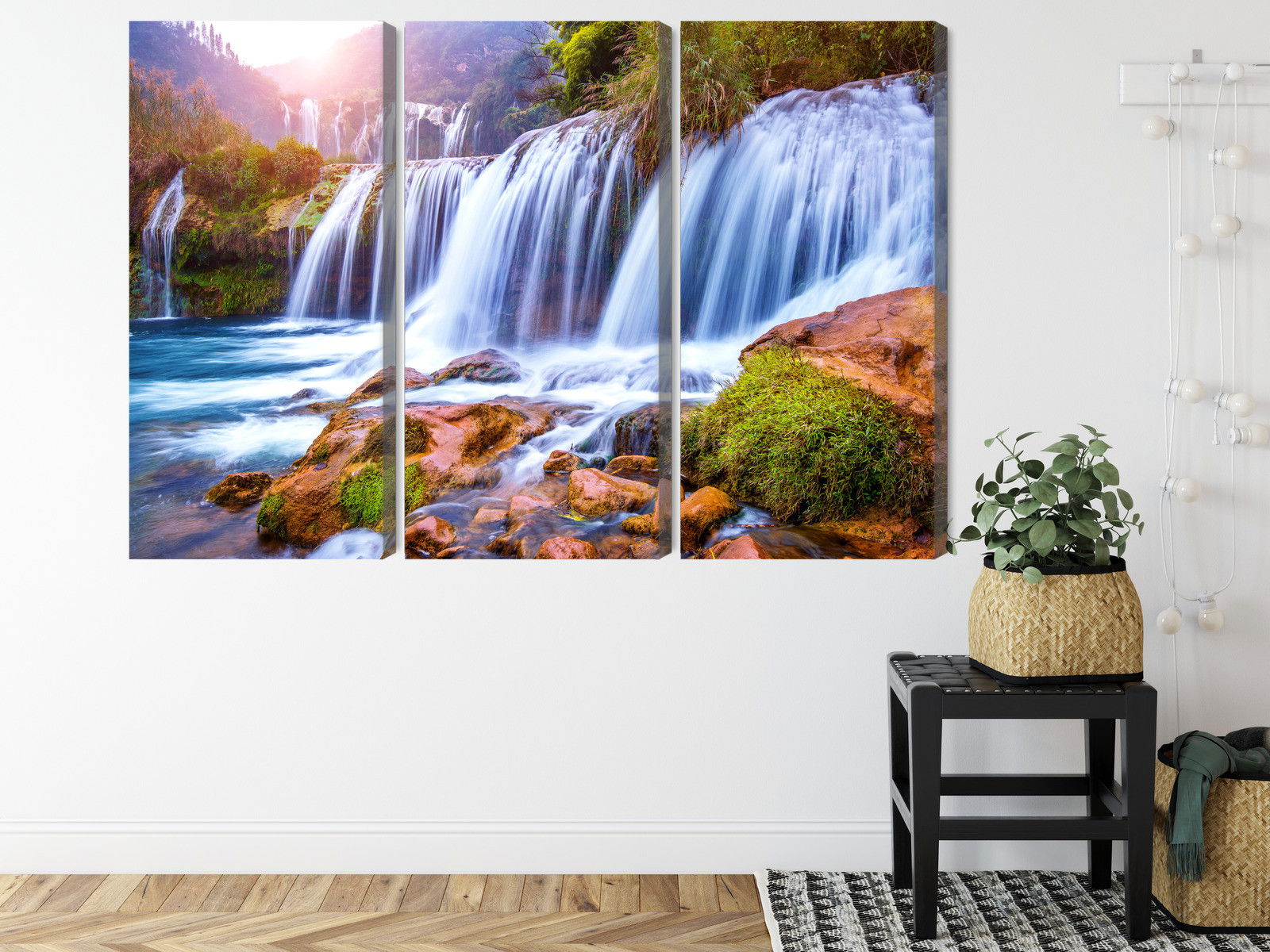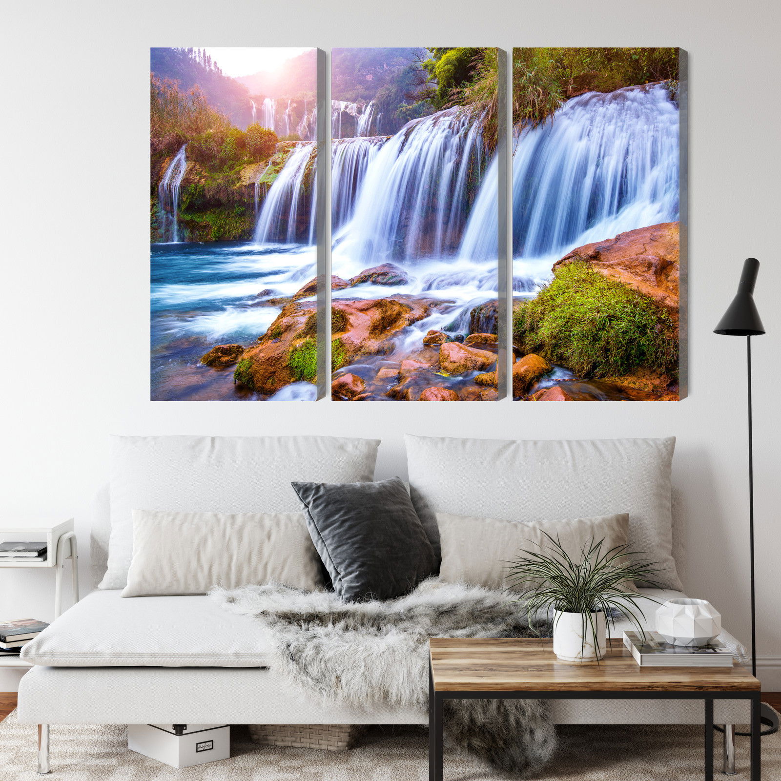 Med SilentDirects ljuddämpande tavla Jiulong waterfall in luoping får du både ett stilrent motiv och en akustisk lösning i samma produkt. Tavlan byggs i Sverige och utgår från en canvastavla med fururam som fylls med en återvunnen polyestercell för effektiv ljudabsorption.