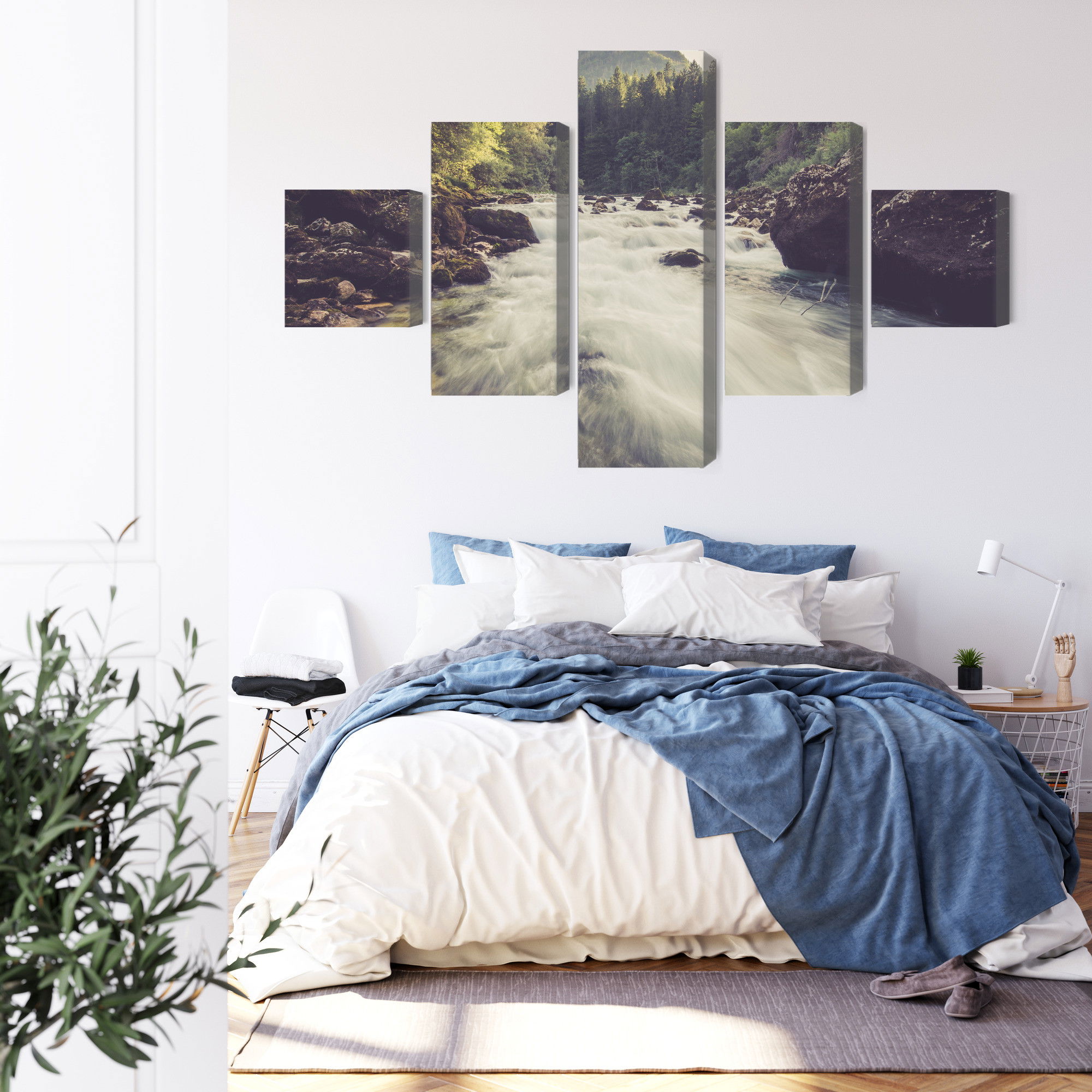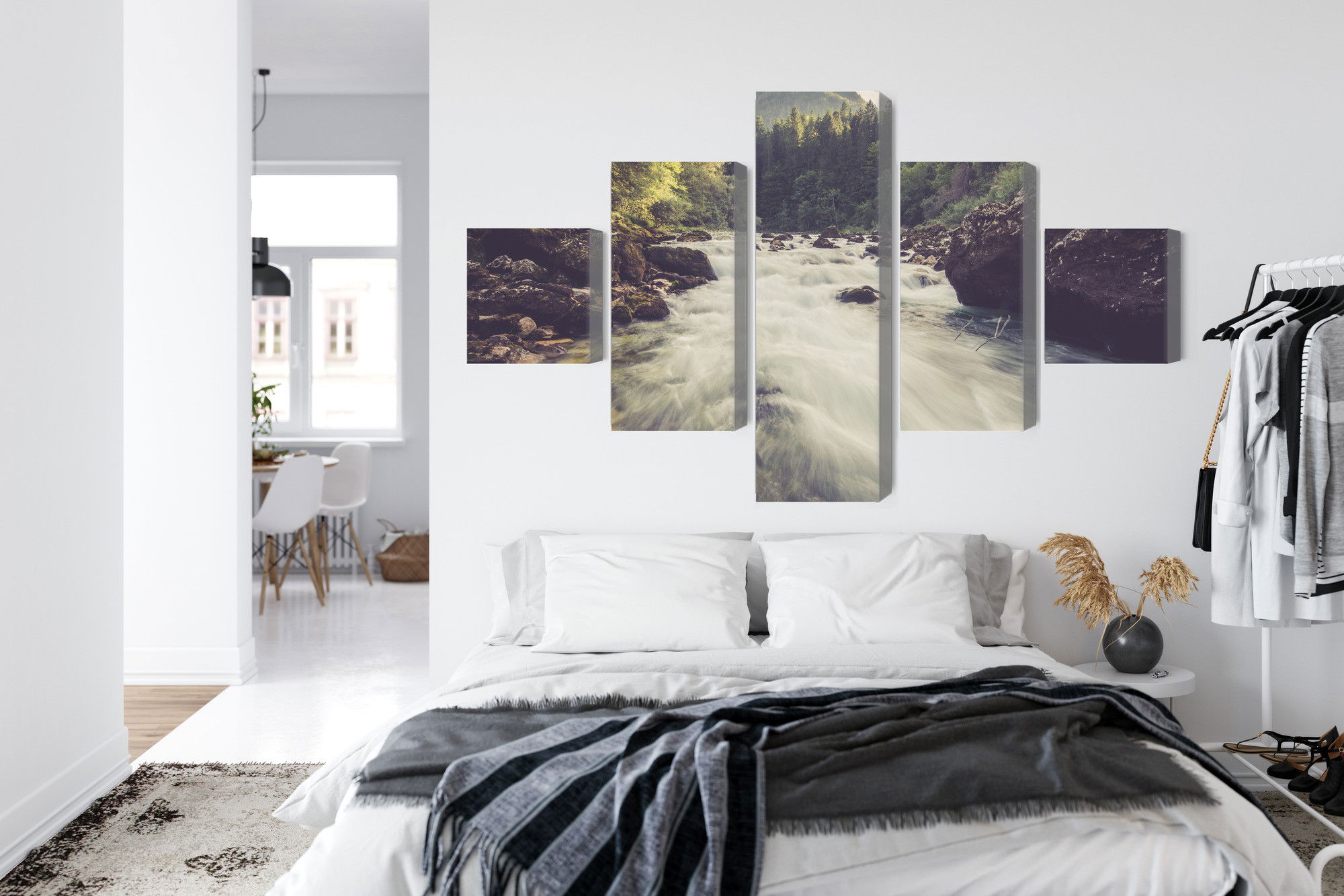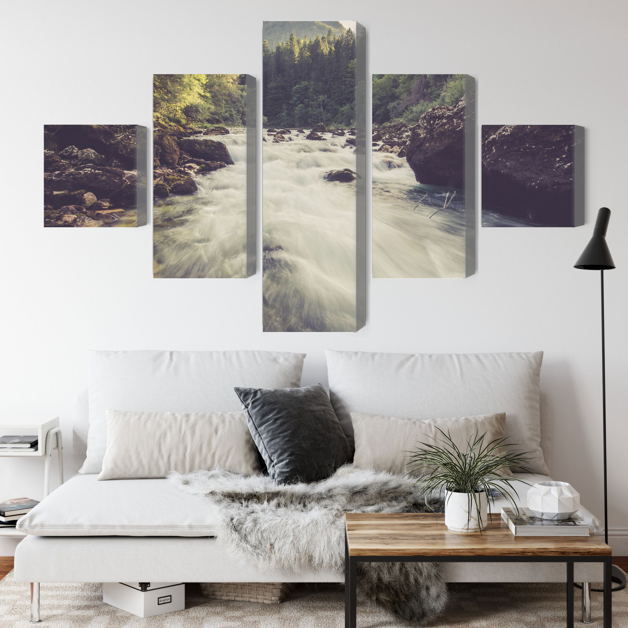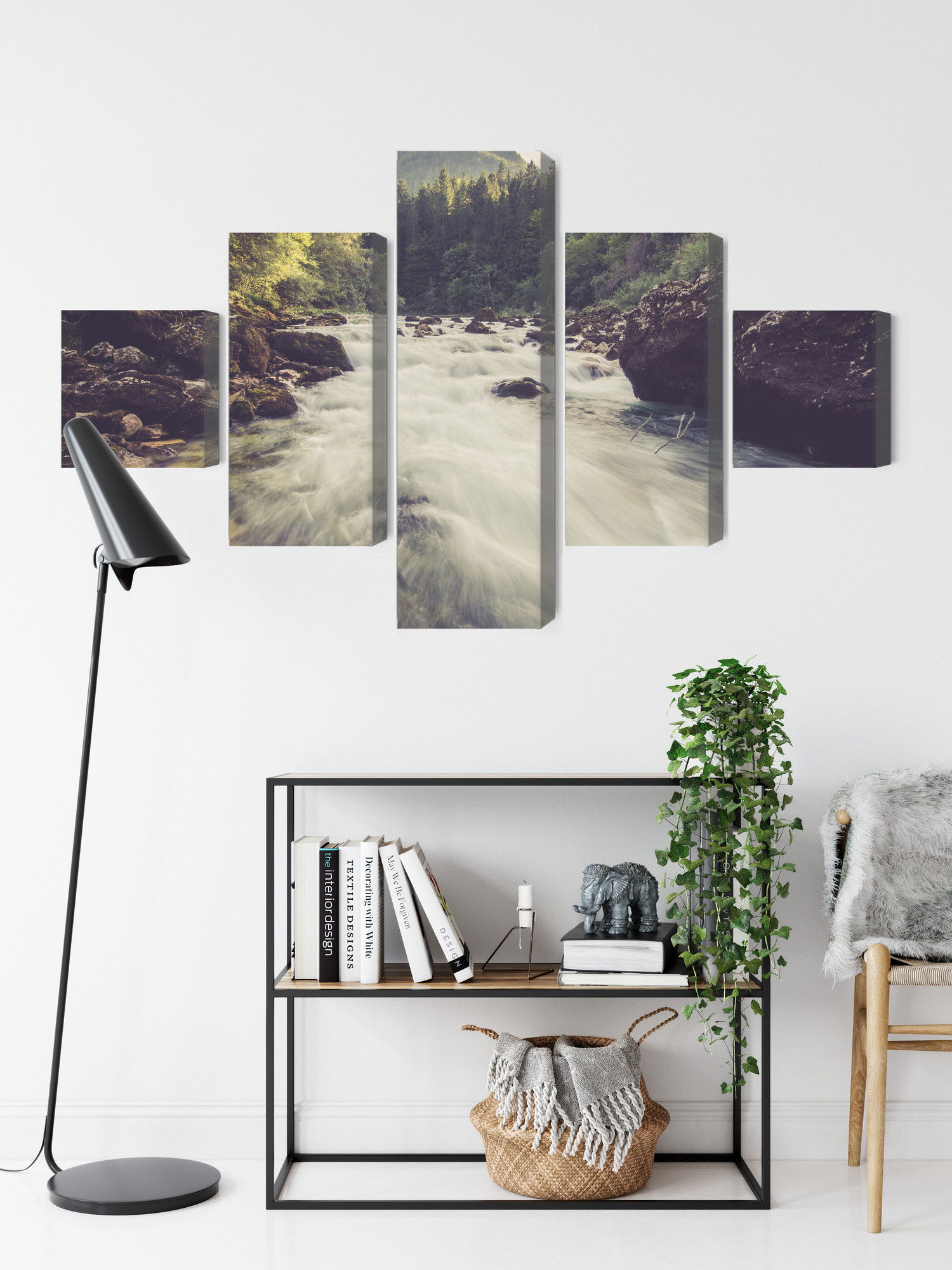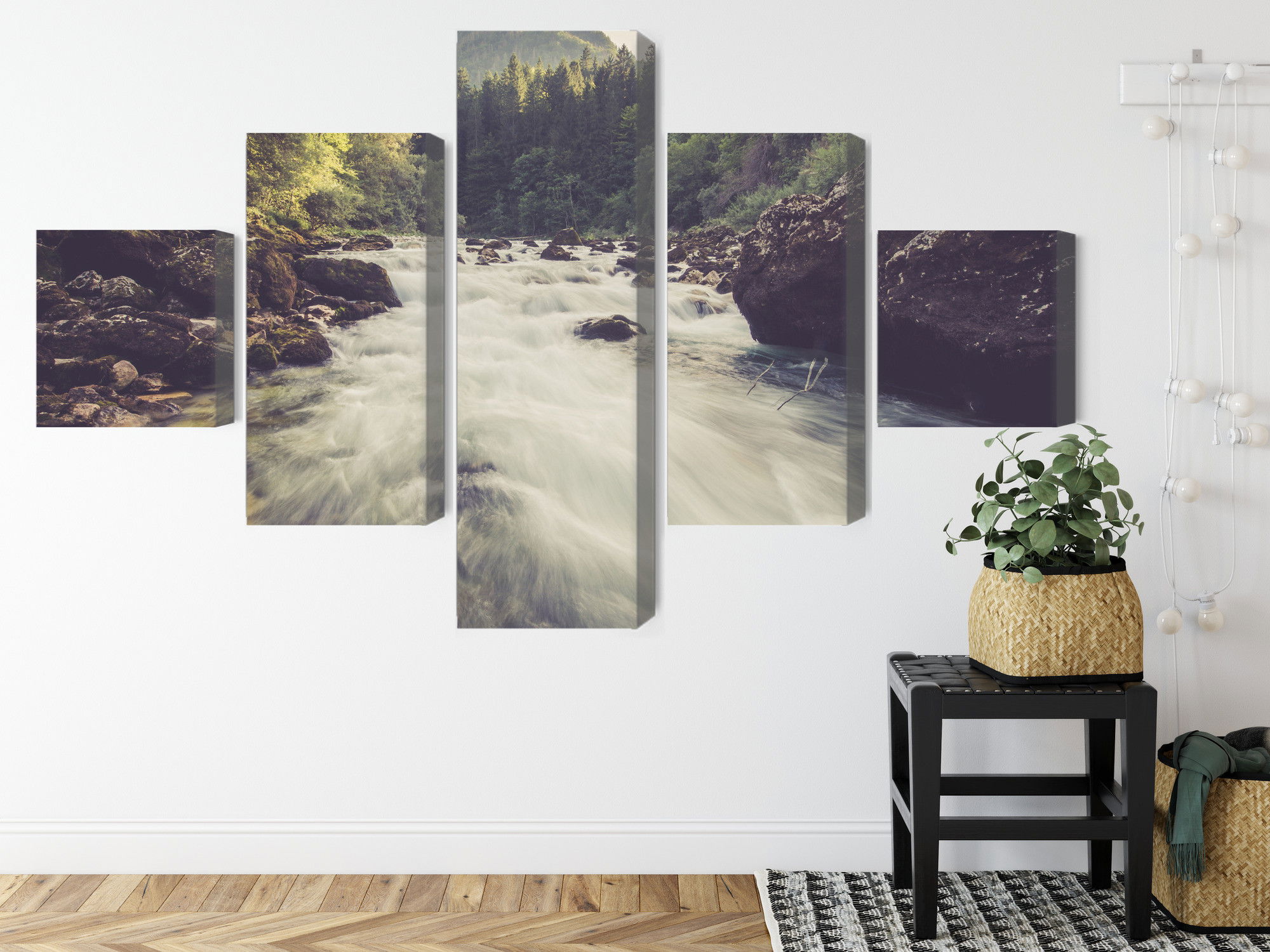 Ljuddämpande tavla – Mountain river in the forest för lugnare rum och mjukare akustik