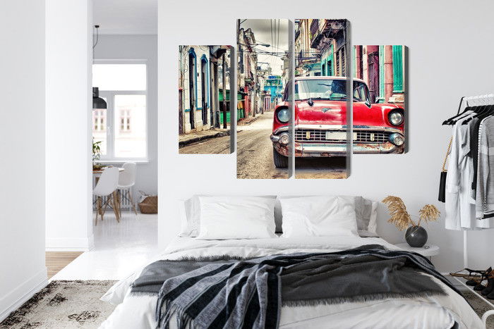 Ljuddämpande tavla – Red chevrolet car in retro för lugnare rum och mjukare akustik