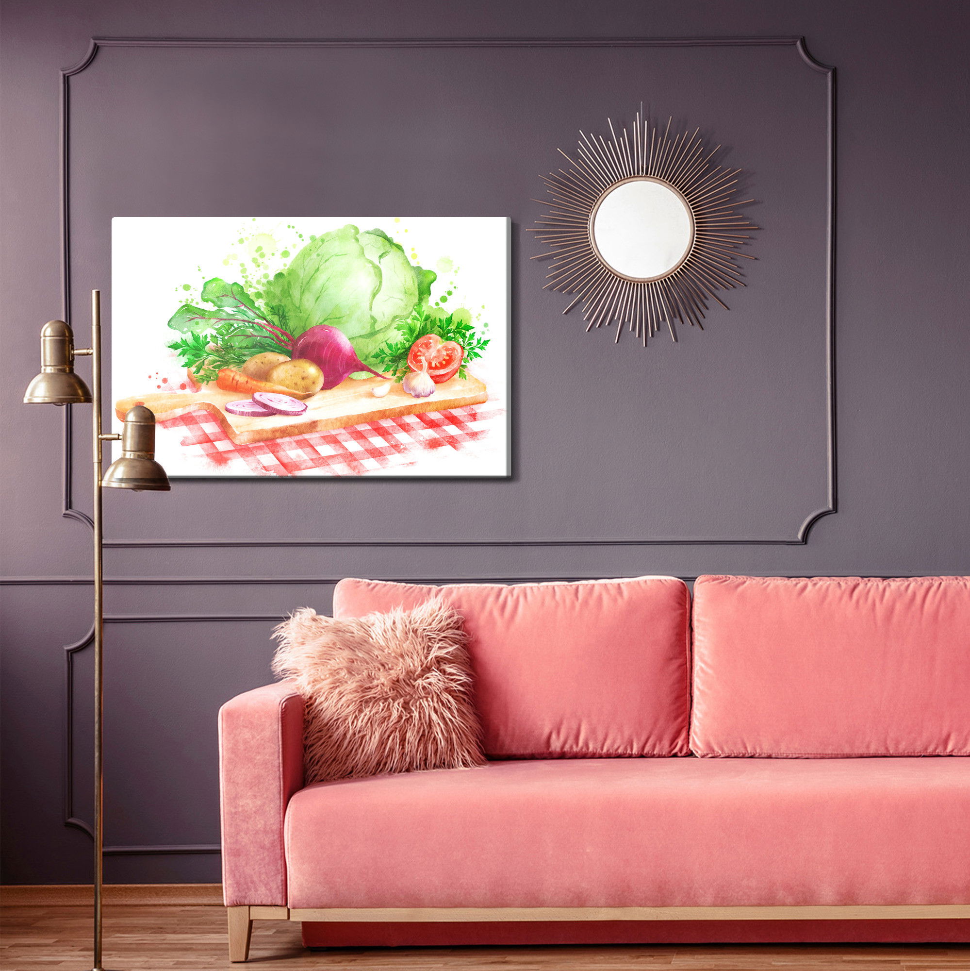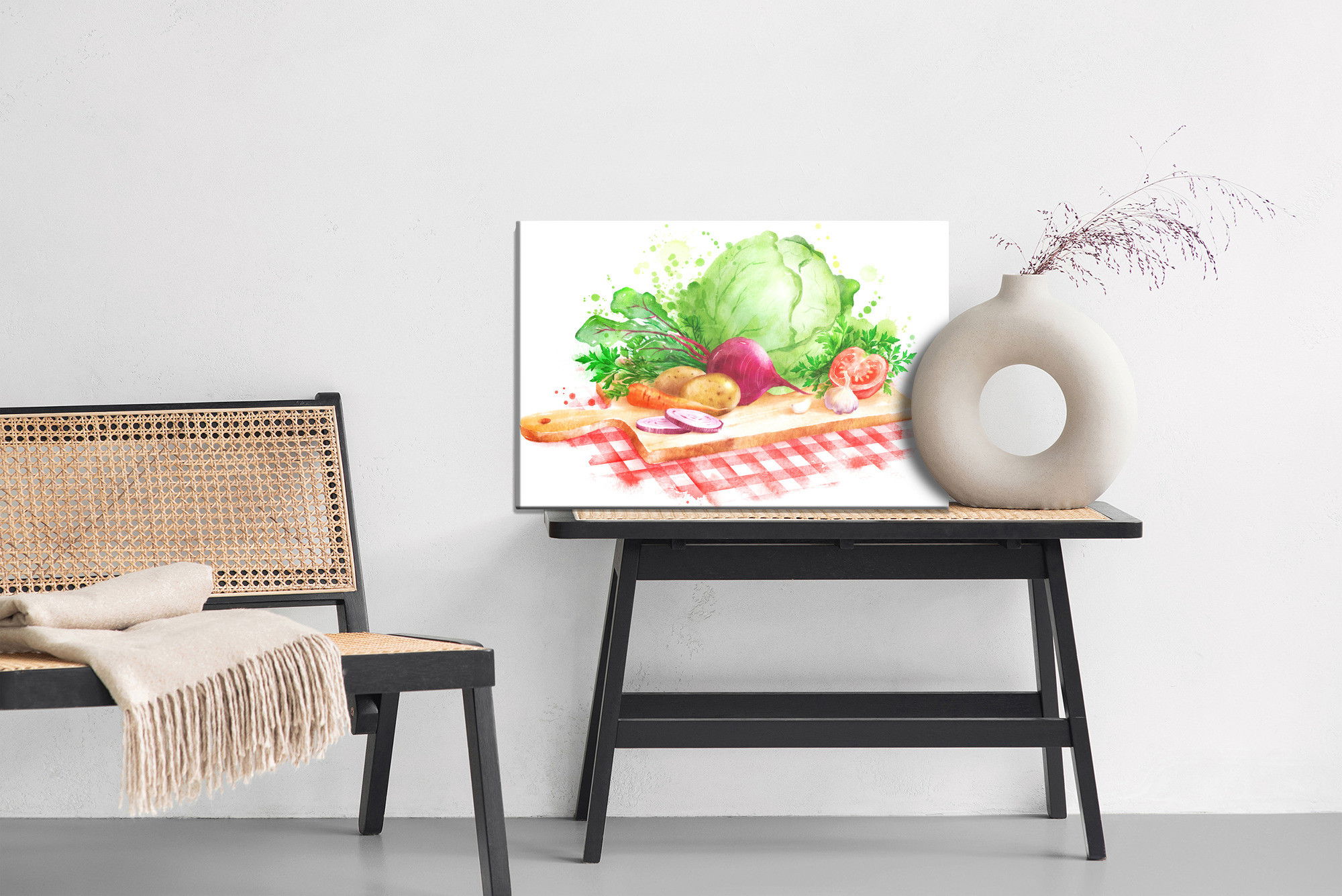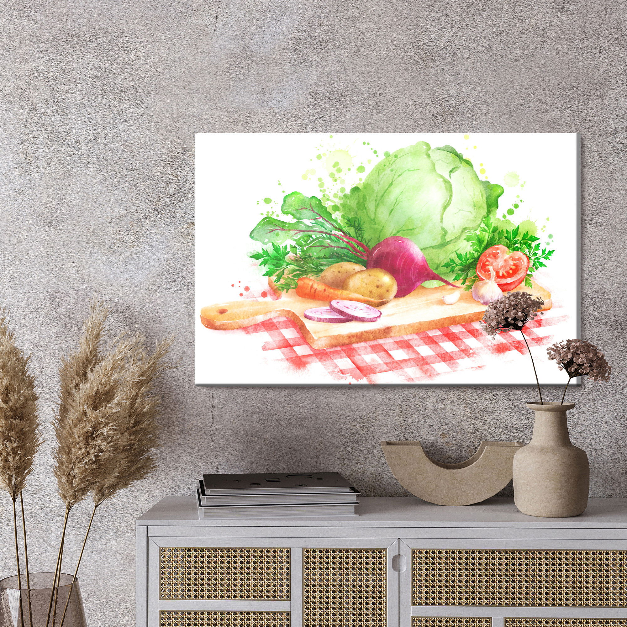 Ljuddämpande tavla – Vegetables on a chopping för lugnare rum och mjukare akustik