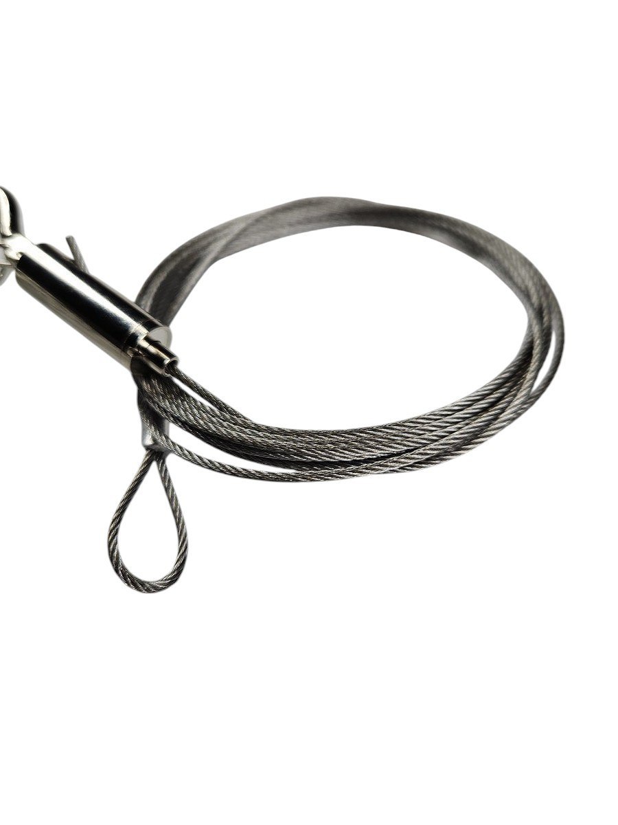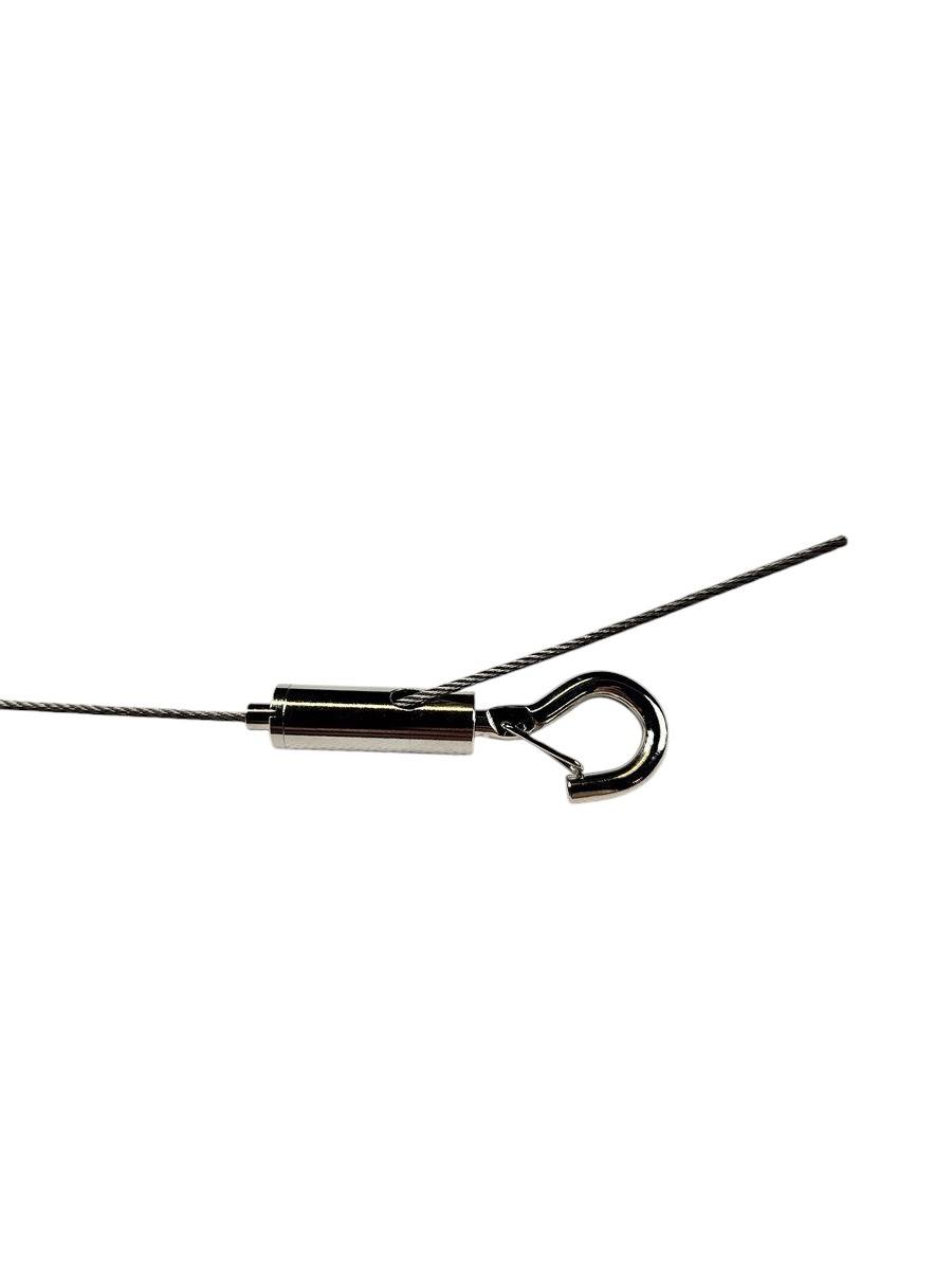 Når du vælger trådafhængning, medfølger følgende trådsæt tilpasset til stabil ophængning. Hvert sæt indeholder en spiralfjeder, wire med øje og karabinhage med justerbar klemme. Kroge til fastgørelse til loftet medfølger ikke og vælges ud fra den aktuelle loftkonstruktion.