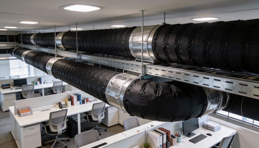 I kontorsmiljöer är det ofta maskiner och teknisk utrustning som orsakar störande ljud som sprids mellan rum. Ventilationsaggregat, serverutrustning, kopiatorer, pumpar och andra installationer kan generera både luftburet ljud och vibrationer som fortplantar sig i byggnadens stomme. Ljudisolering av maskiner och utrustning syftar till att begränsa hur dessa ljud sprids i konstruktionen och påverkar arbetsro och koncentration – inte till att förändra rummets akustik.