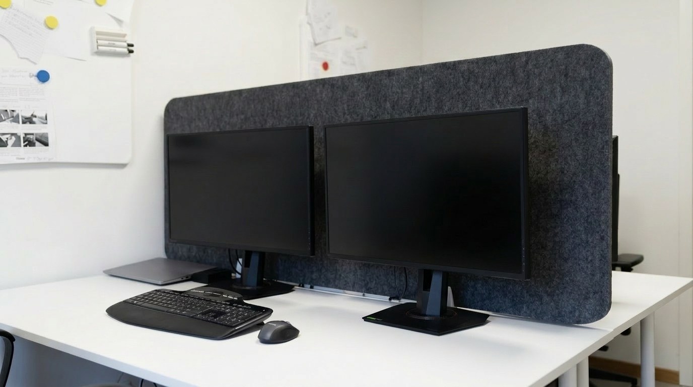 Bulletin Desk Screen är en ljudabsorberande bordsskärm som är utvecklad för att skapa bättre arbetsro, tydligare avskärmning och en mer behaglig ljudmiljö i kontor, hemmakontor, skolor och andra arbetsmiljöer där flera personer arbetar nära varandra. Produkten fungerar som en effektiv skrivbordsskärm som både skärmar av visuellt och hjälper till att reducera störande ljudreflektioner direkt vid arbetsplatsen. Det gör stor skillnad i miljöer där samtal, tangentbordsljud, telefonsignaler och andra vardagsljud annars lätt påverkar koncentrationen.
