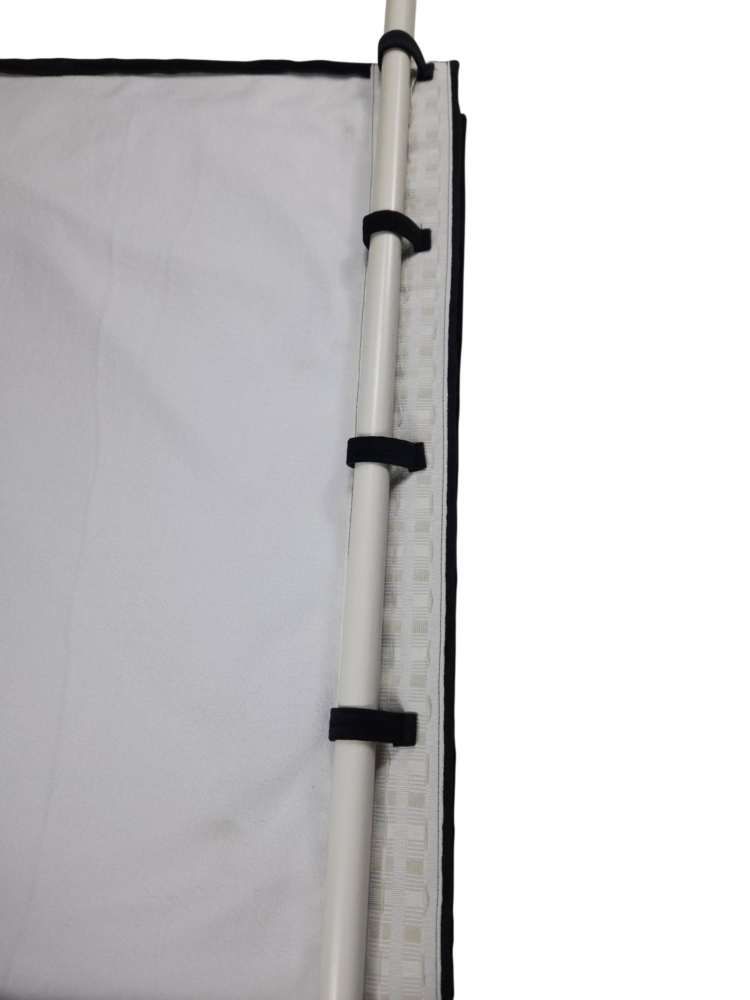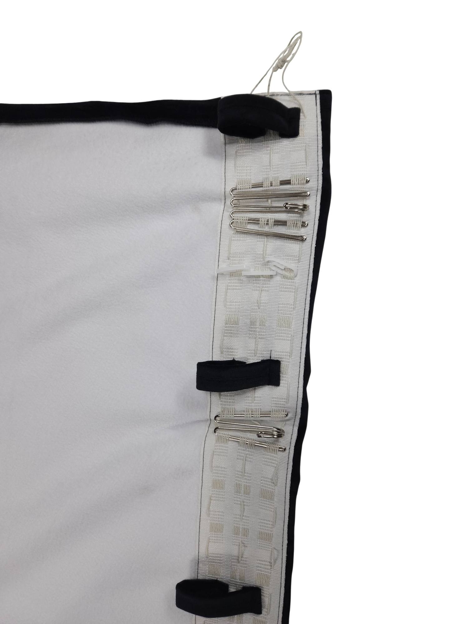 Silent Curtain Feltra är utrustad med multiband som ger full flexibilitet vid upphängning. Gardinen kan monteras med fingerkrokar, rynkbandskrokar eller direkt på gardinstång. På baksidan finns även dolda tyghällor som skapar ett jämnt, vågformat fall när gardinen är upphängd.