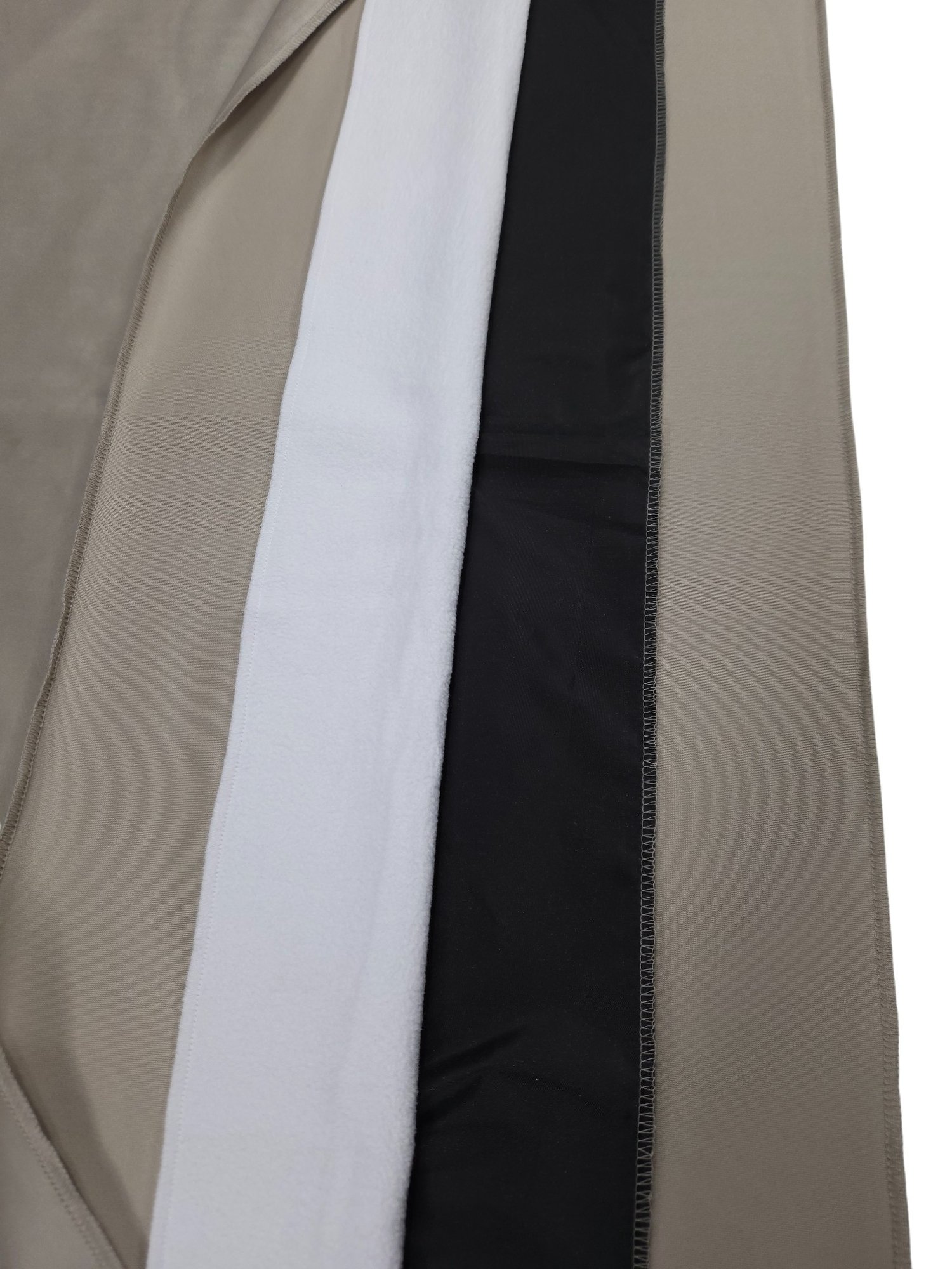 Den extra bredden i Silent Curtain Feltra ger en markant akustisk fördel jämfört med smalare gardiner. En större sammanhängande textilyta innebär att mer ljudenergi fångas upp, vilket minskar eko och efterklang i rummet. Gardinen är uppbyggd i flera lager med tung velour på framsidan och ett akustiskt fleecelager på baksidan, vilket skapar en effektiv kombination av ljudabsorption och ljudspridning.
