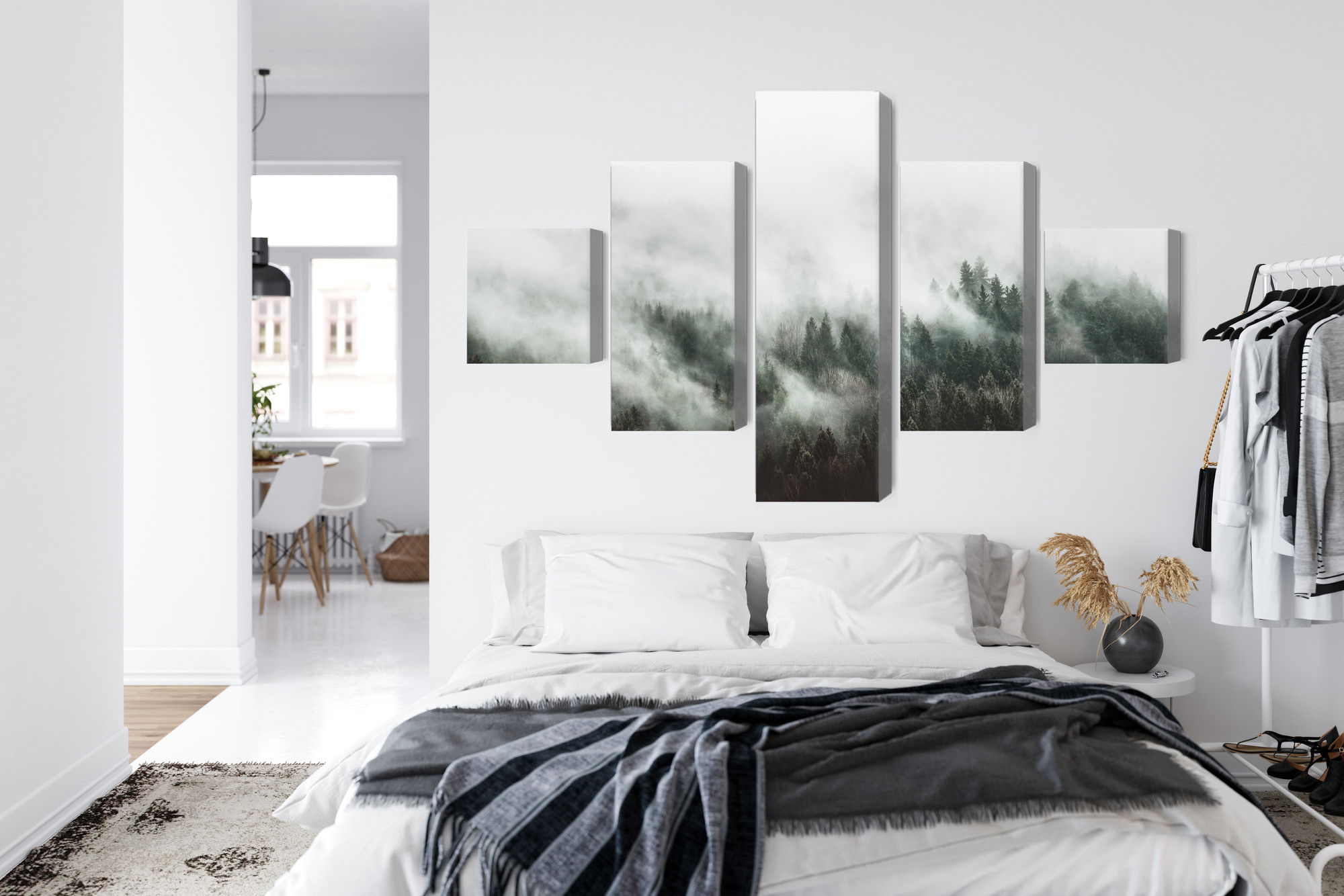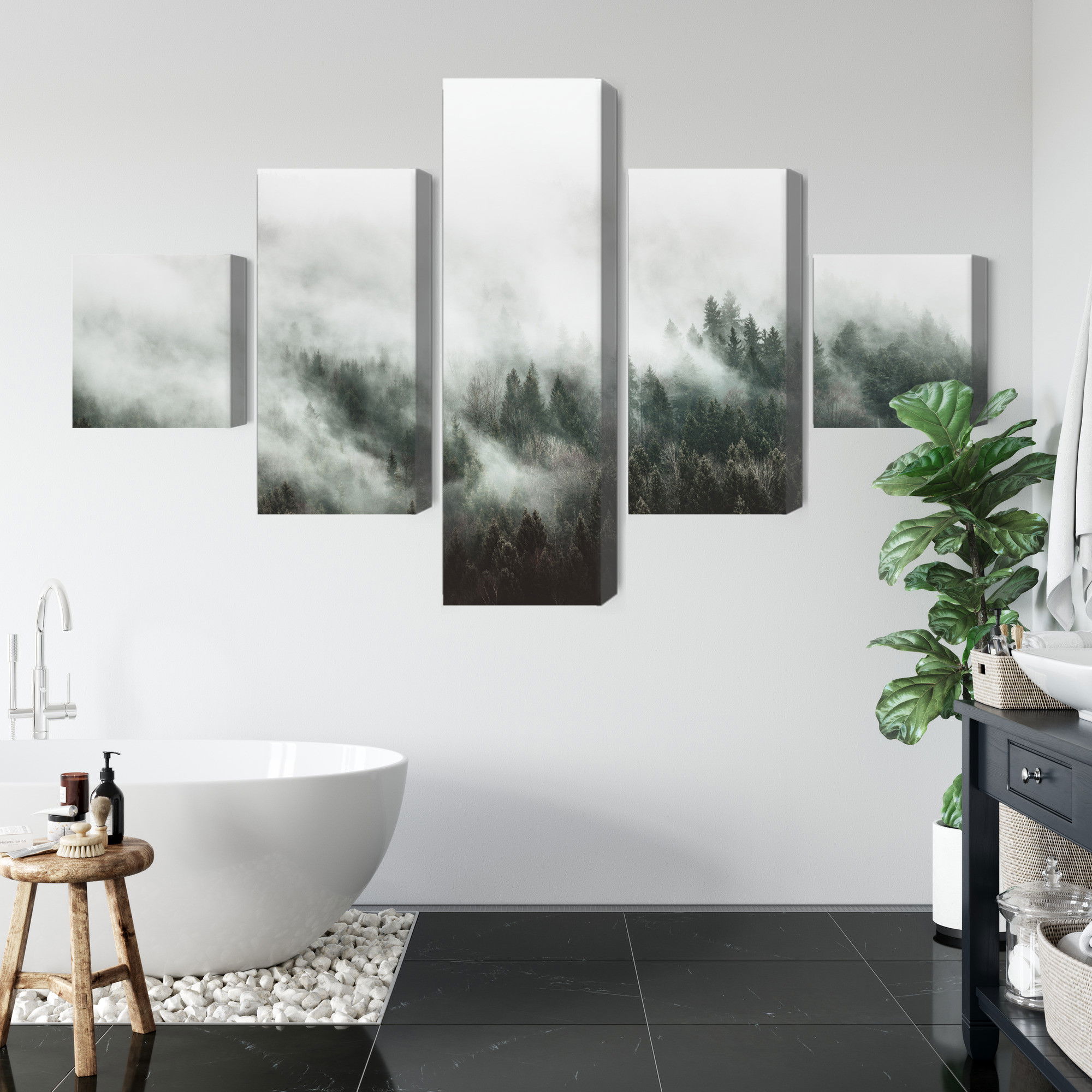 Ljuddämpande tavla – 3d misty forest landscape för lugnare rum och mjukare akustik