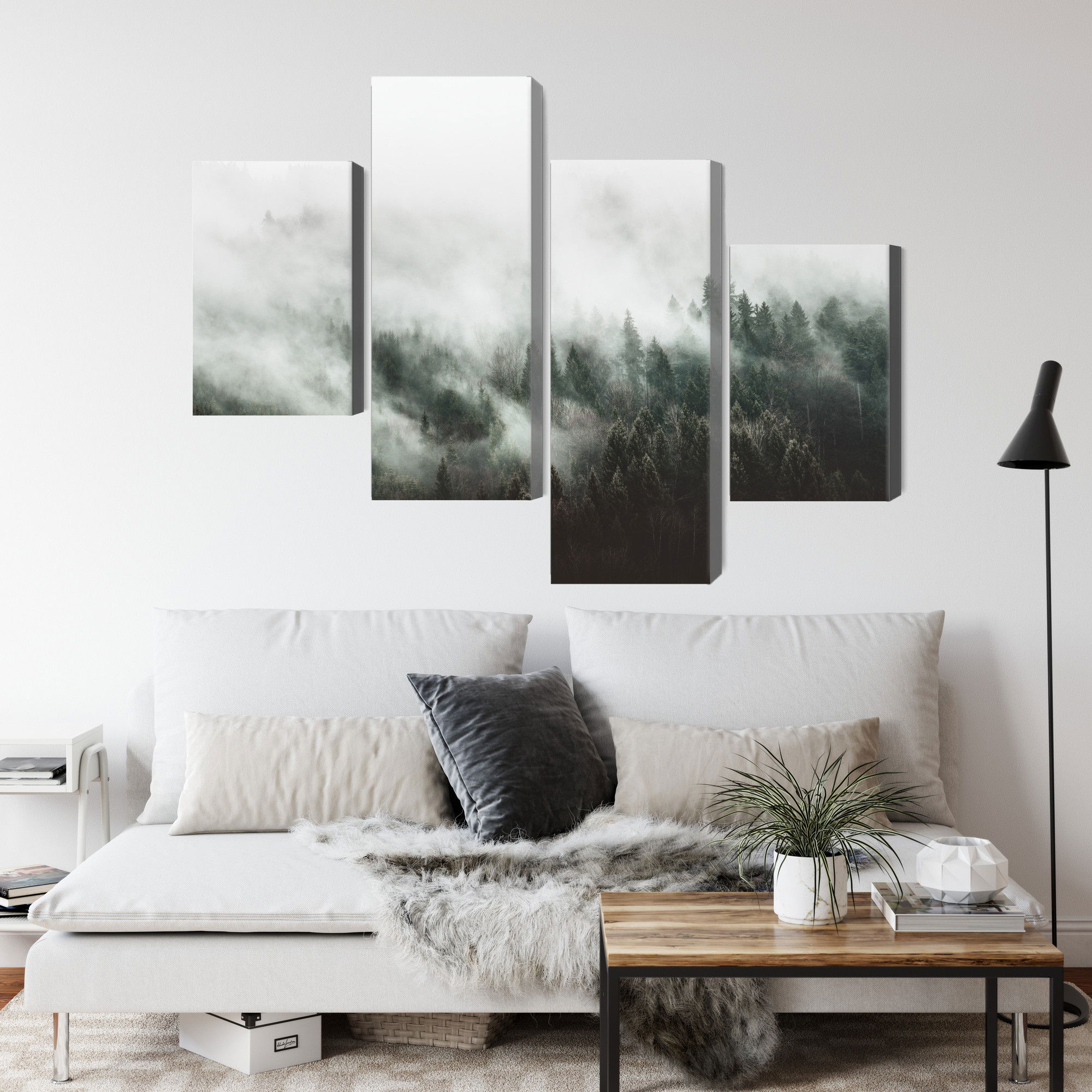 Ljuddämpande tavla – 3d misty forest landscape för lugnare rum och mjukare akustik