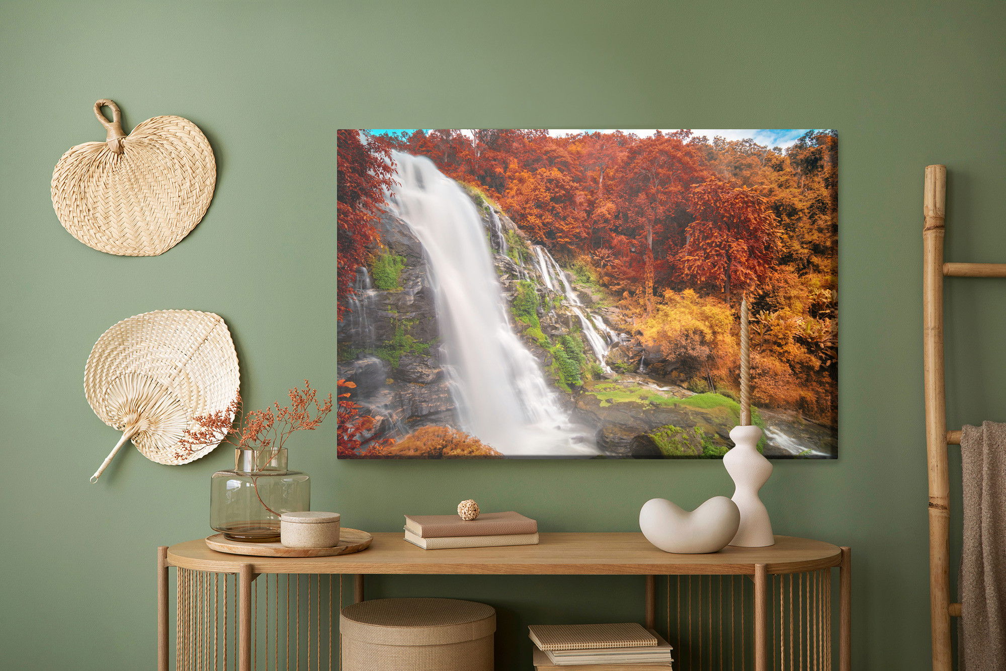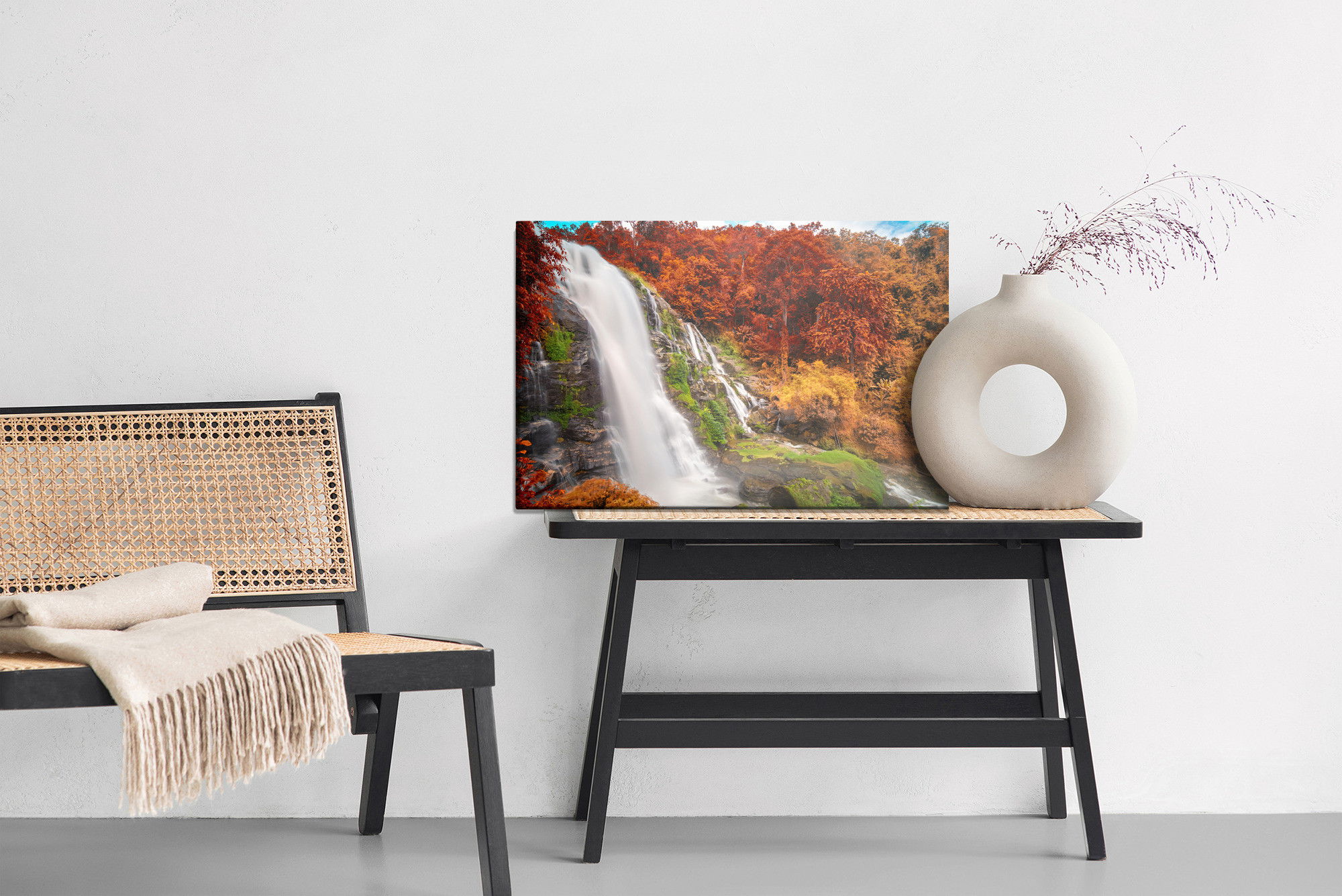 Motivet 3d view of the waterfall återges med hög färgprecision och detaljrikedom tack vare HP Latex-teknologi. Trycket sker med vattenbaserade, luktfria och GREENGUARD Gold-certifierade bläck som ger en upplösning på upp till 300 DPI. Färgerna är UV-beständiga och behåller sin styrka även i ljusa rum, vilket gör tavlan lämplig för både hem- och offentliga miljöer.