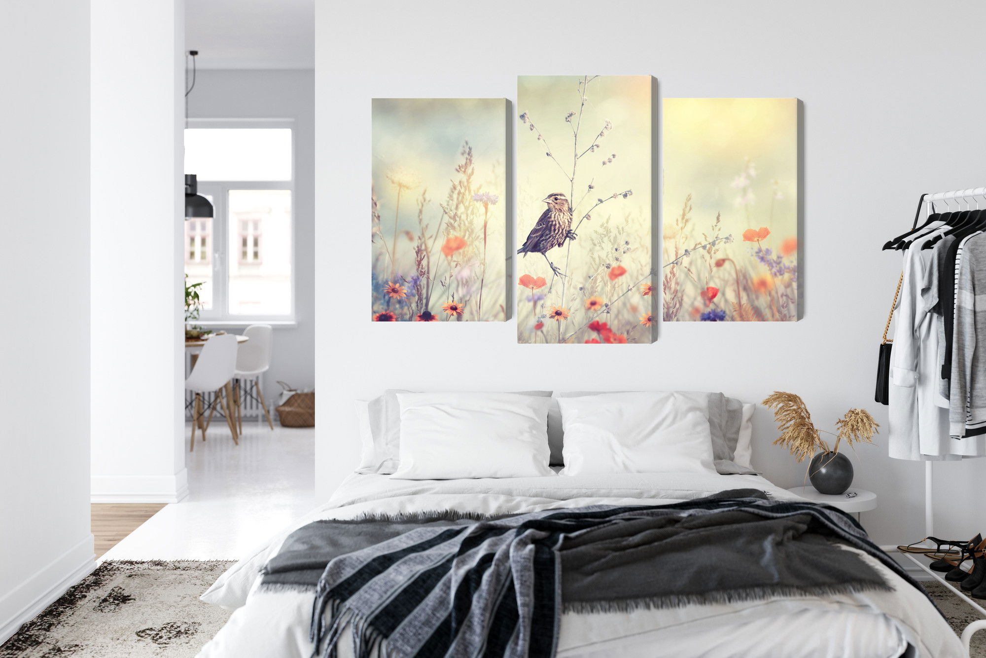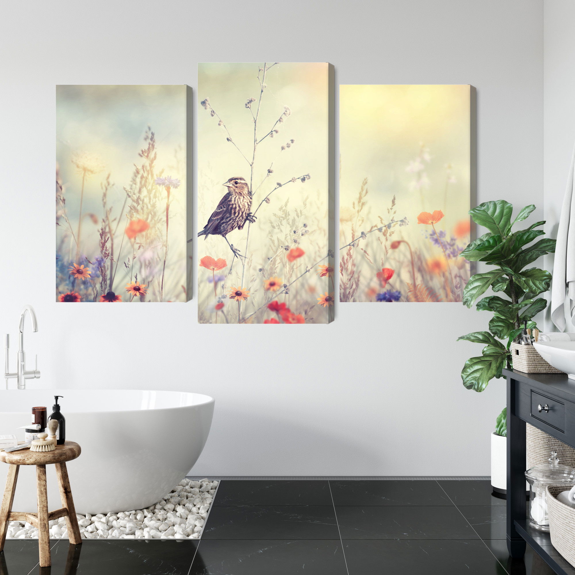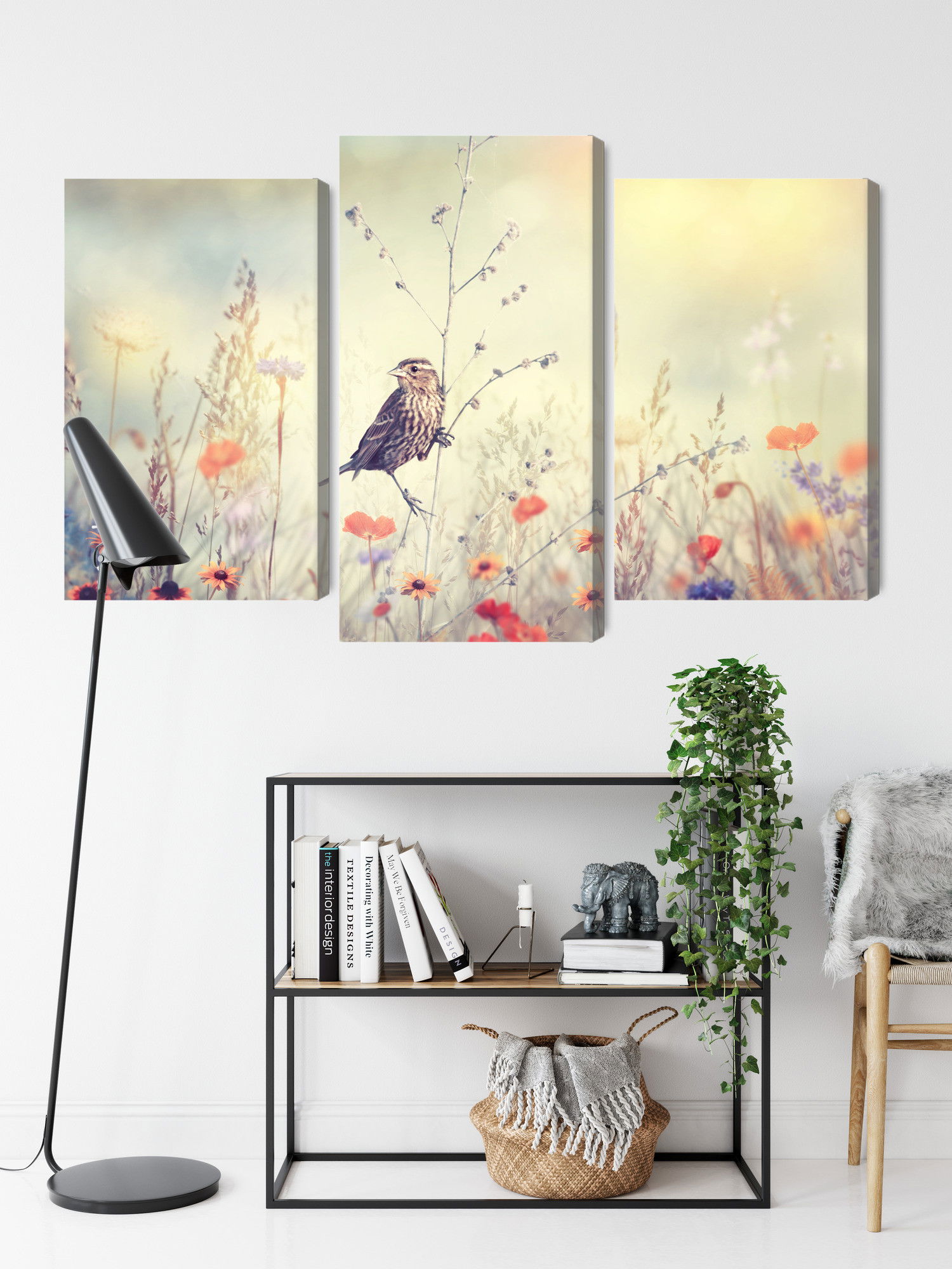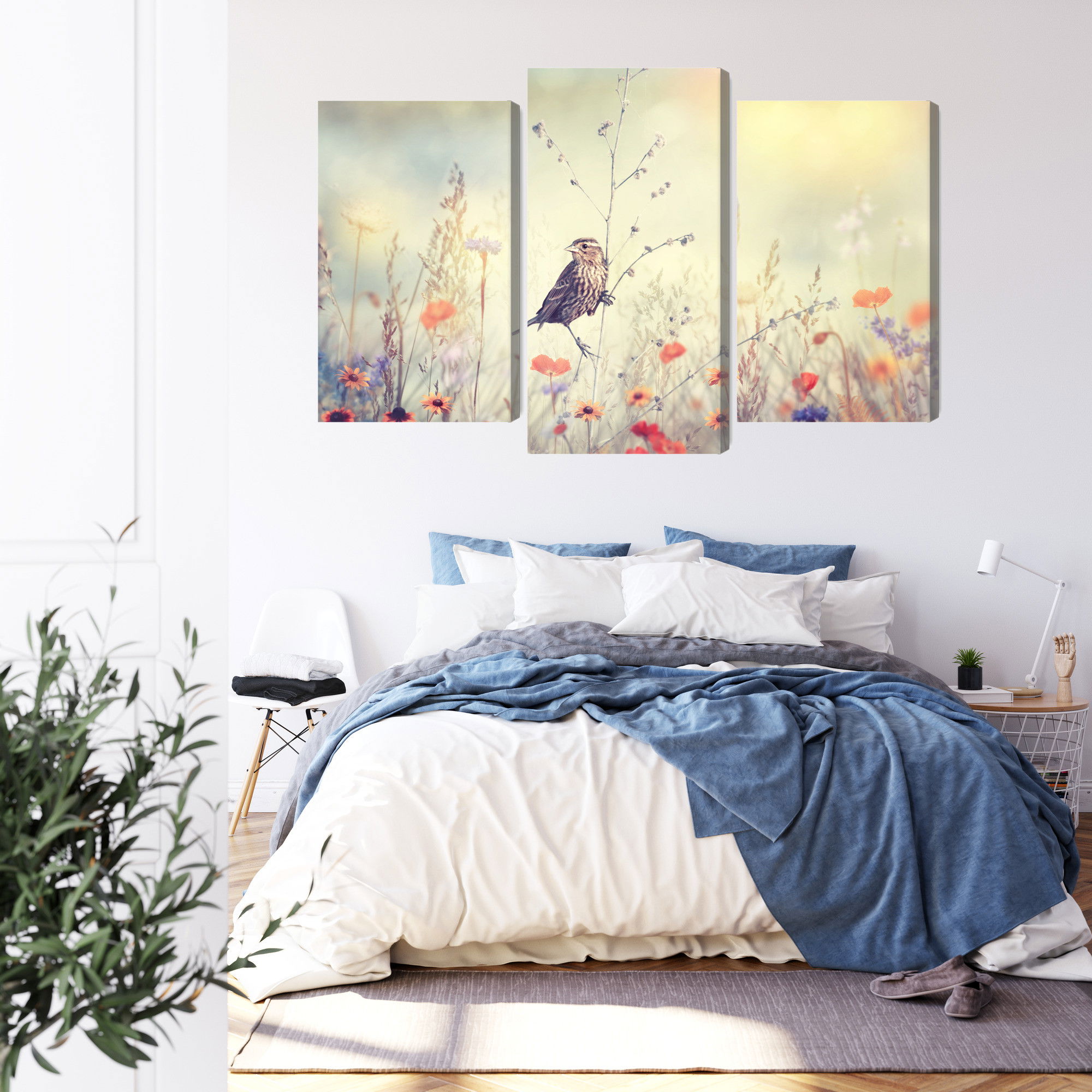Ljuddämpande tavla – A bird among wild flowers för lugnare rum och mjukare akustik