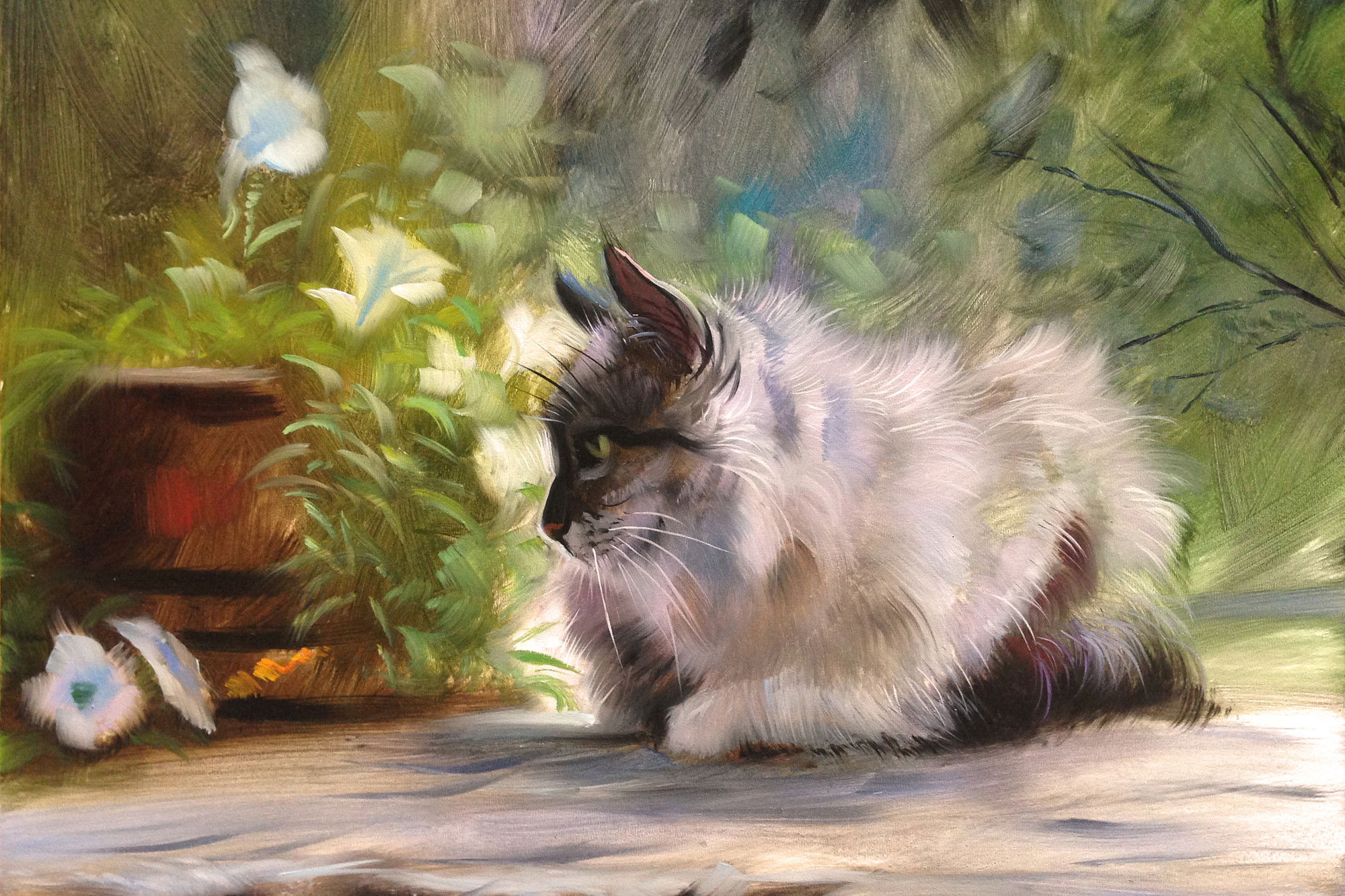 Ljuddämpande tavla – A cat among the green för lugnare rum och mjukare akustik