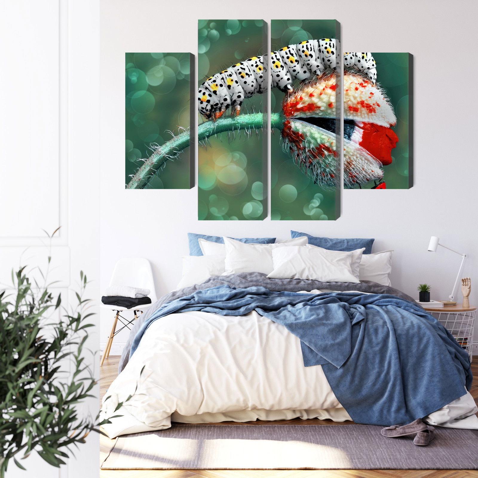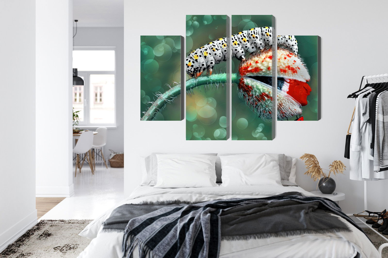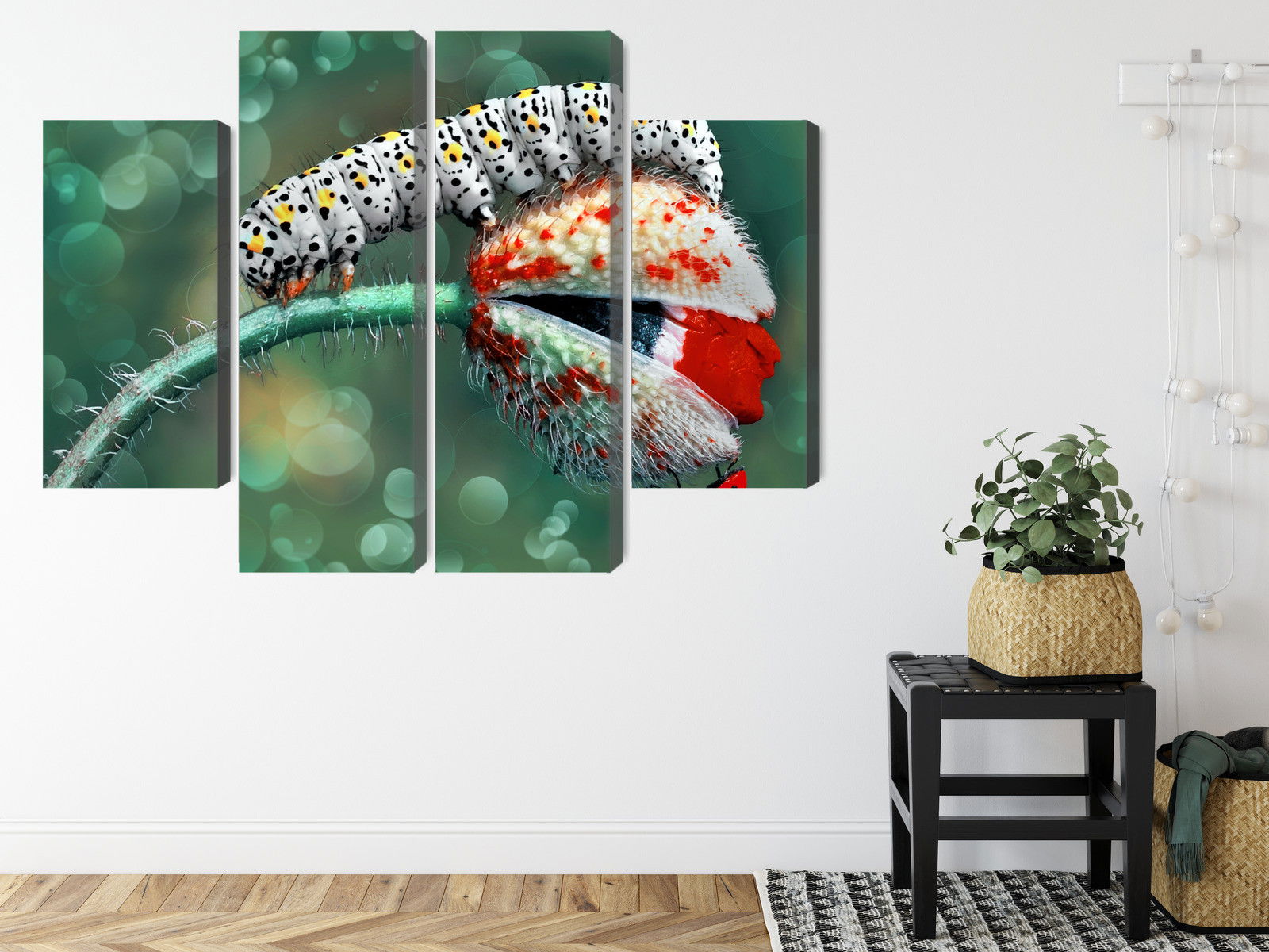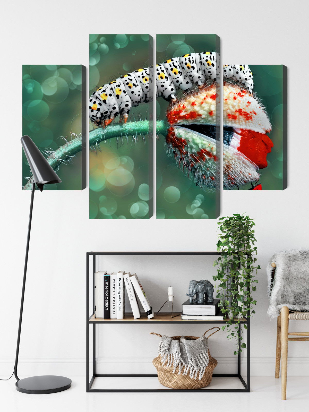 Motivet A caterpillar and a ladybug återges med hög färgprecision och detaljrikedom tack vare HP Latex-teknologi. Trycket sker med vattenbaserade, luktfria och GREENGUARD Gold-certifierade bläck som ger en upplösning på upp till 300 DPI. Färgerna är UV-beständiga och behåller sin styrka även i ljusa rum, vilket gör tavlan lämplig för både hem- och offentliga miljöer.