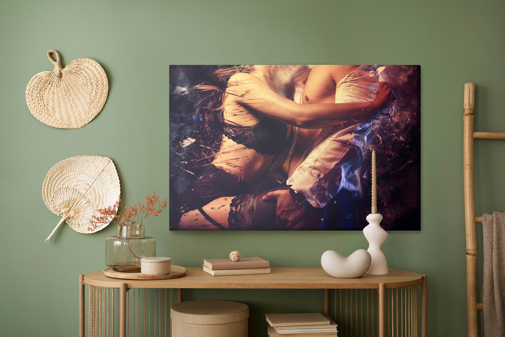 Ljuddämpande tavla – A couple in a hot pose för lugnare rum och mjukare akustik