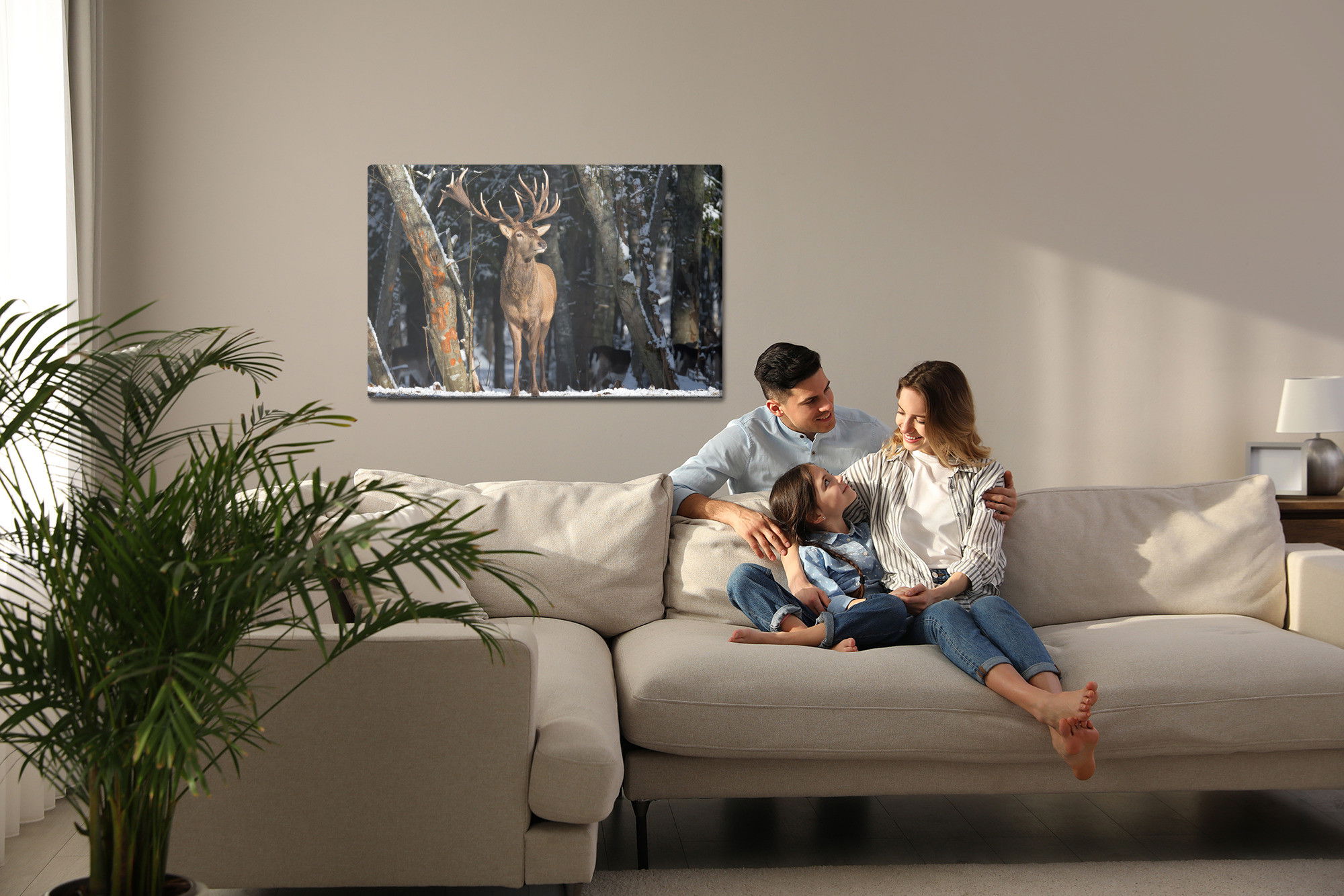 Motivet A deer among the trees återges med hög färgprecision och detaljrikedom tack vare HP Latex-teknologi. Trycket sker med vattenbaserade, luktfria och GREENGUARD Gold-certifierade bläck som ger en upplösning på upp till 300 DPI. Färgerna är UV-beständiga och behåller sin styrka även i ljusa rum, vilket gör tavlan lämplig för både hem- och offentliga miljöer.