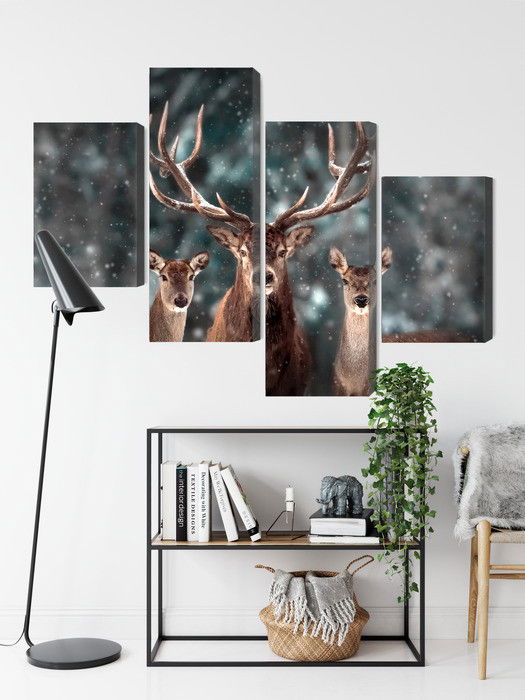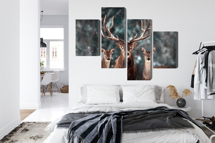 Ljuddämpande tavla – A deer and two does för lugnare rum och mjukare akustik