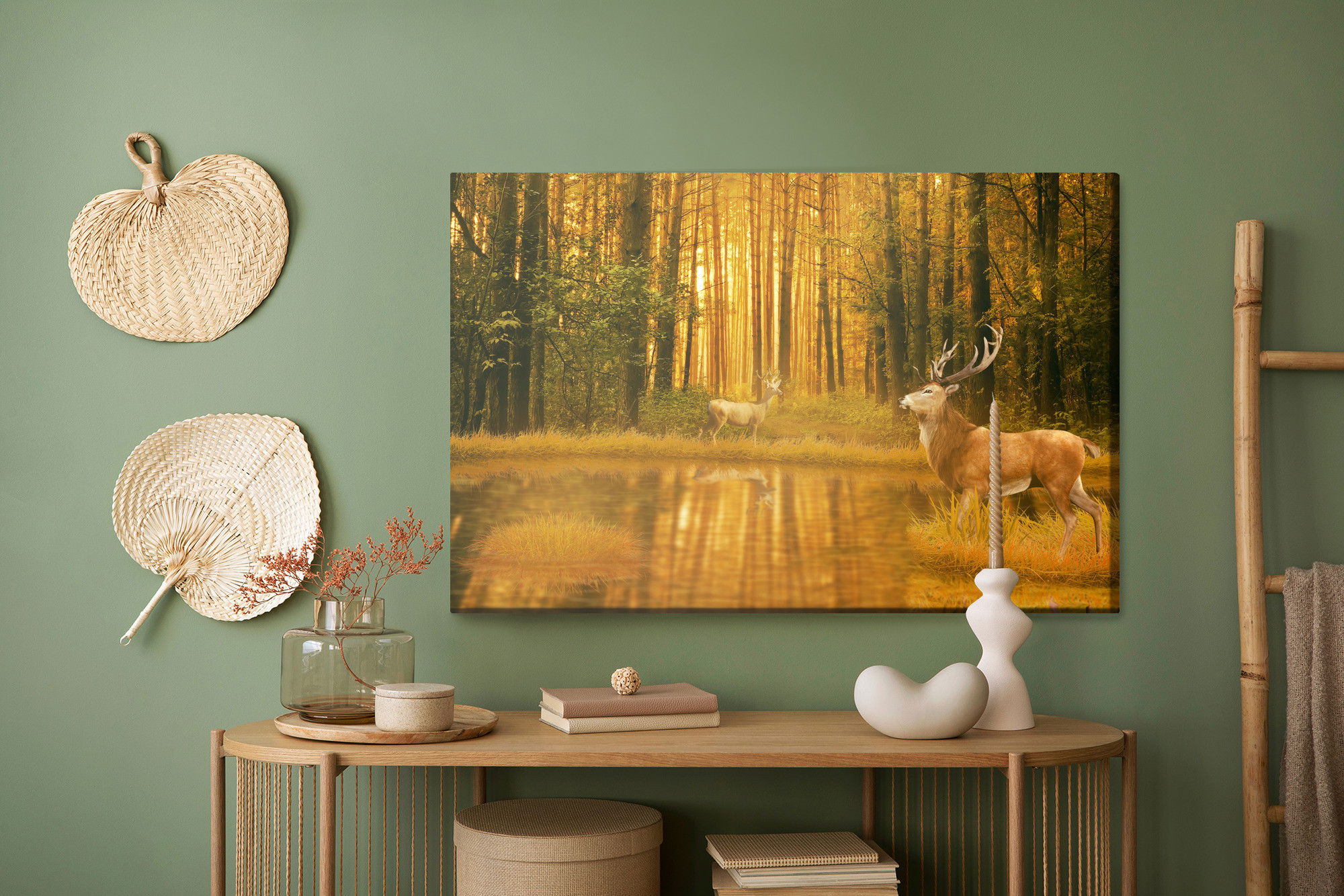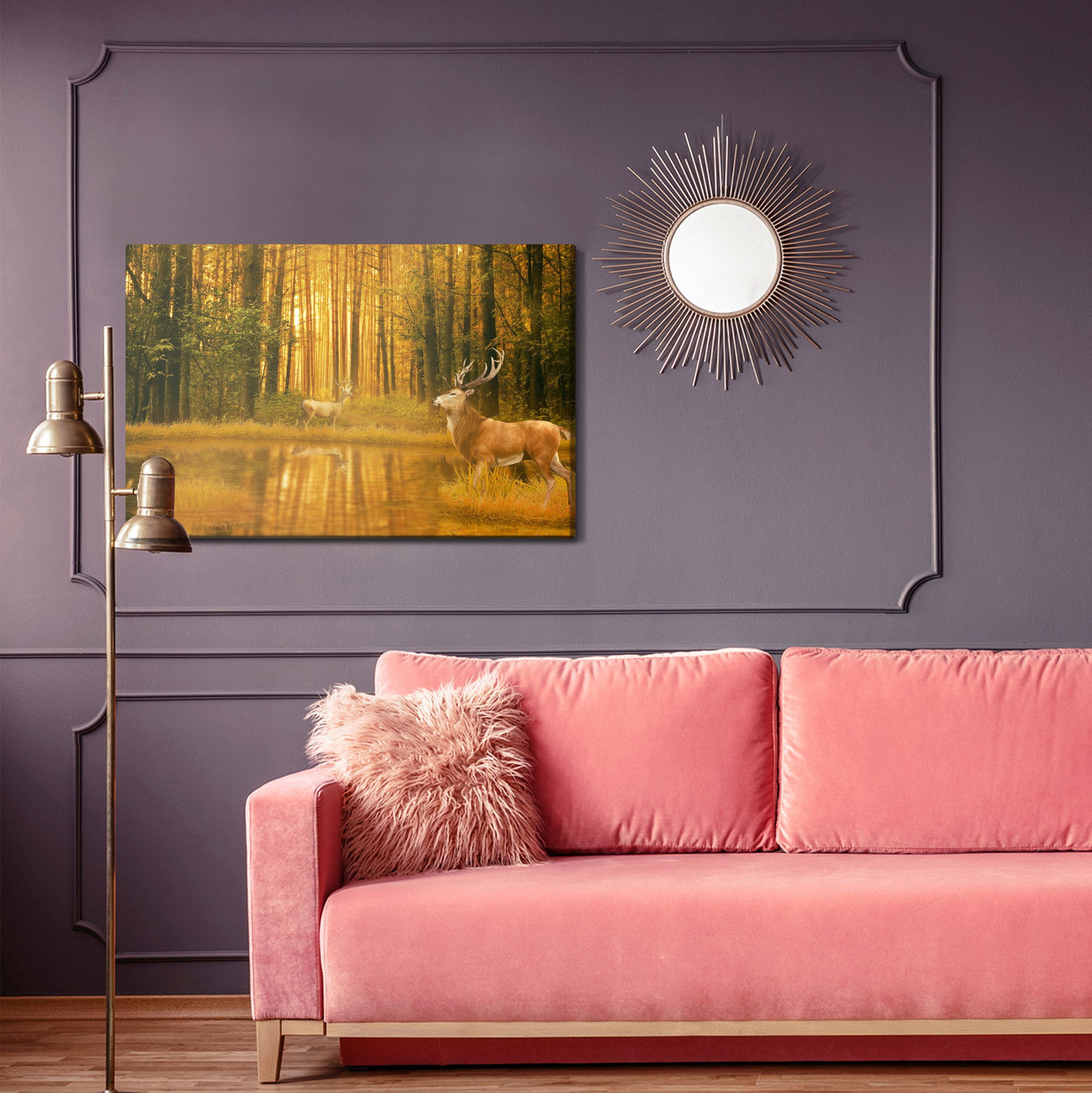 Ljuddämpande tavla – A deer by the lake för lugnare rum och mjukare akustik