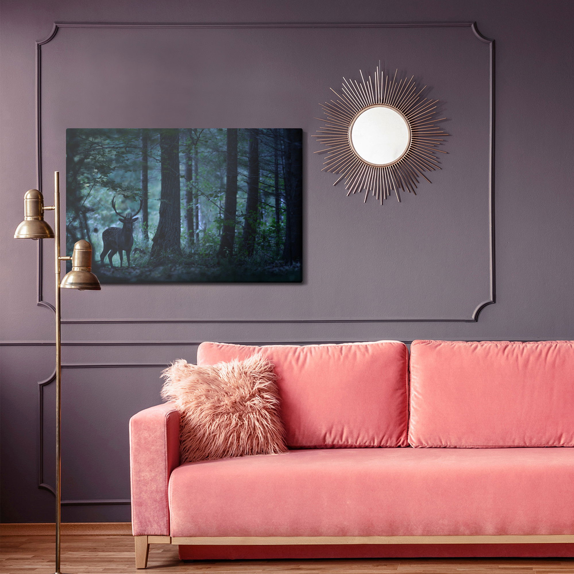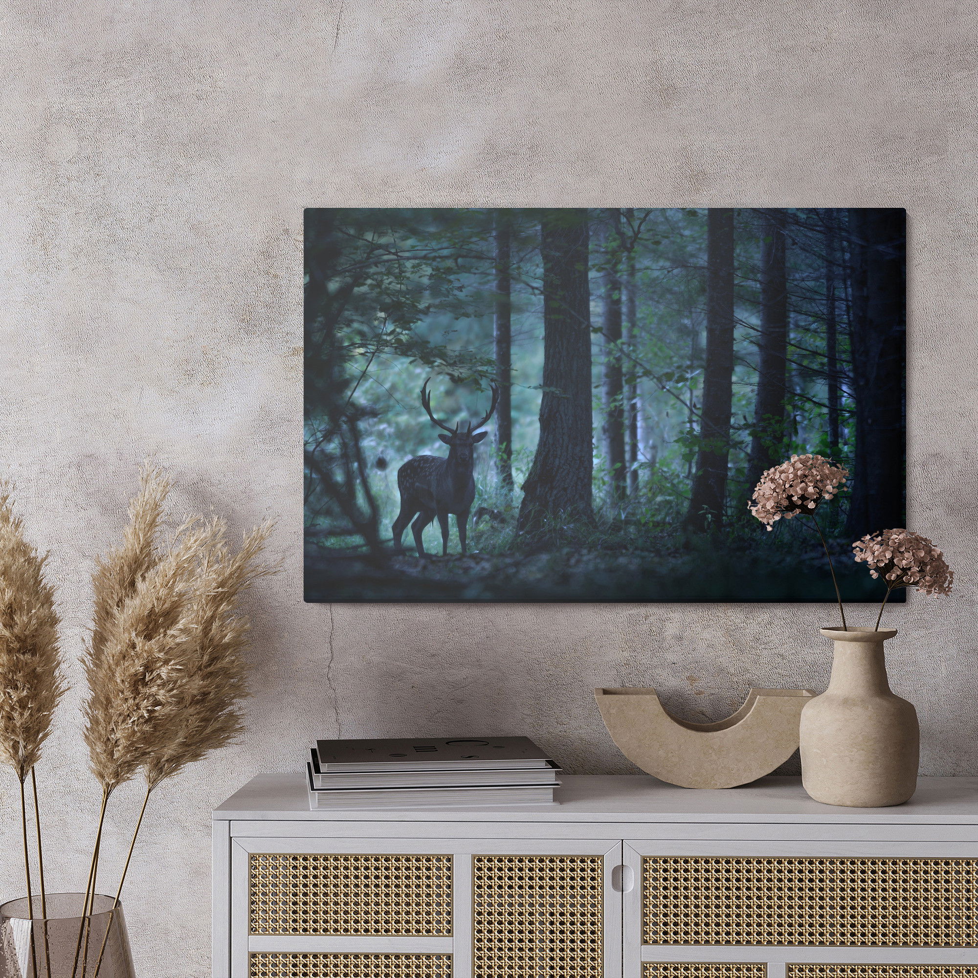 Ljuddämpande tavla – A deer in a dark forest för lugnare rum och mjukare akustik