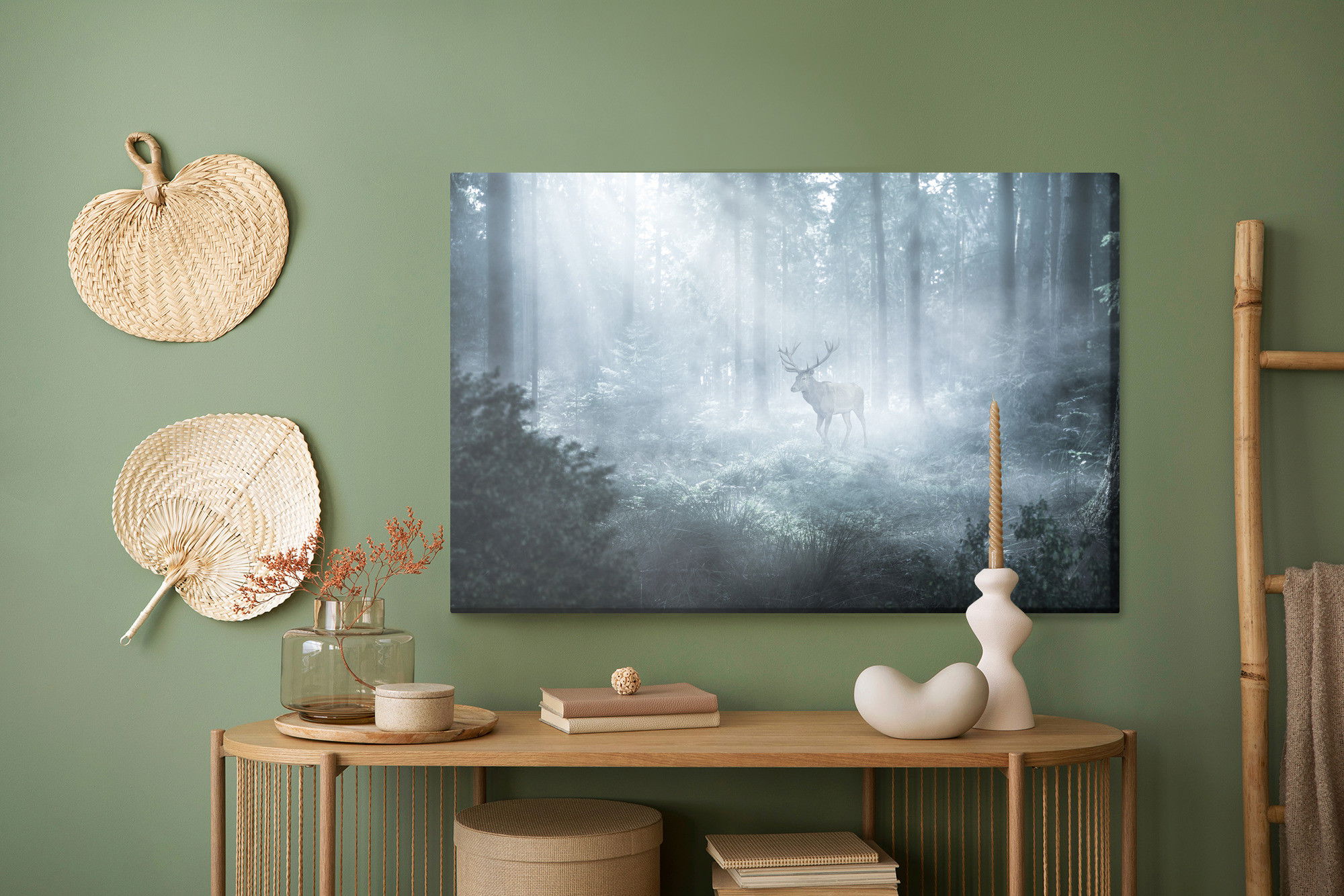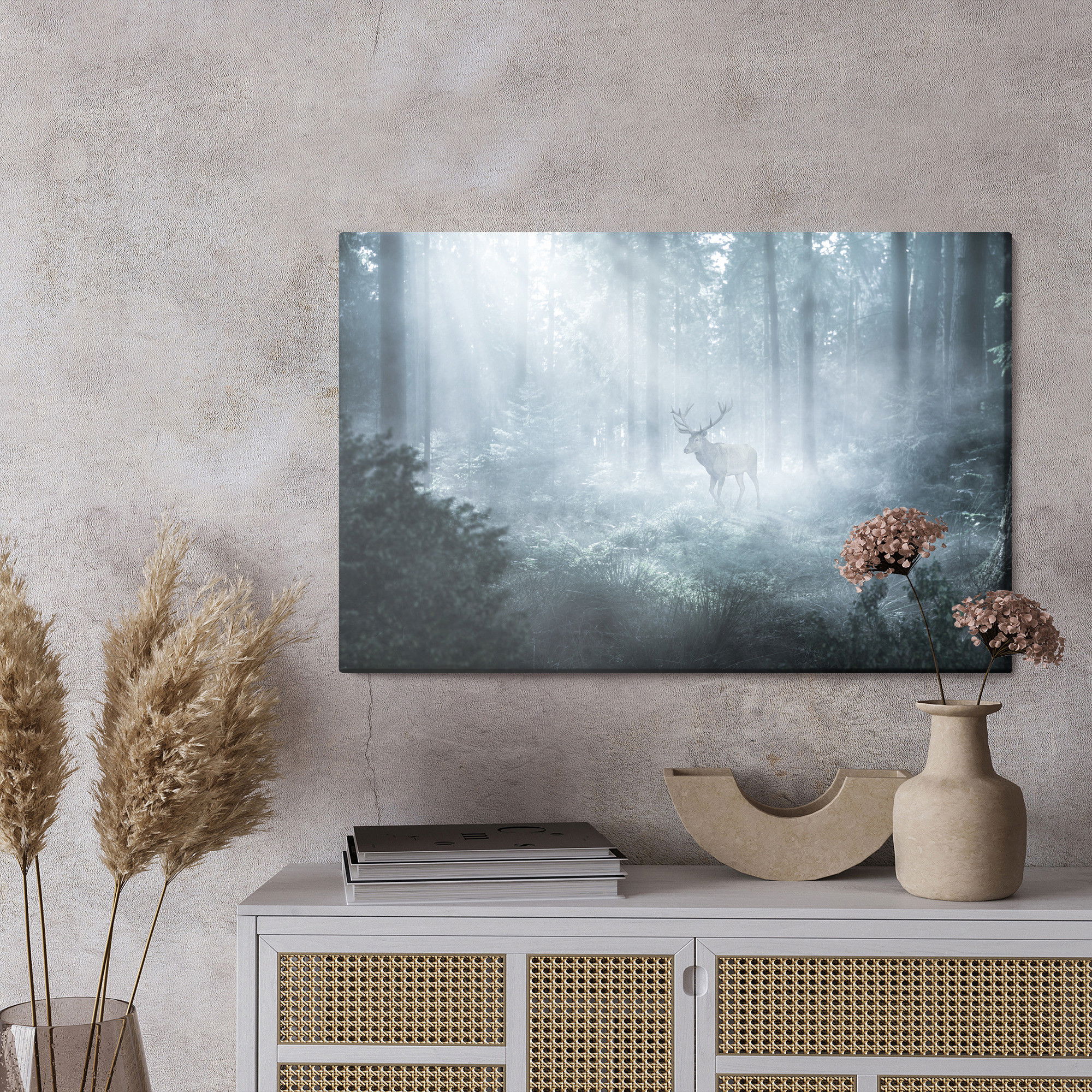 Ljuddämpande tavla – A deer in a dark forest för lugnare rum och mjukare akustik