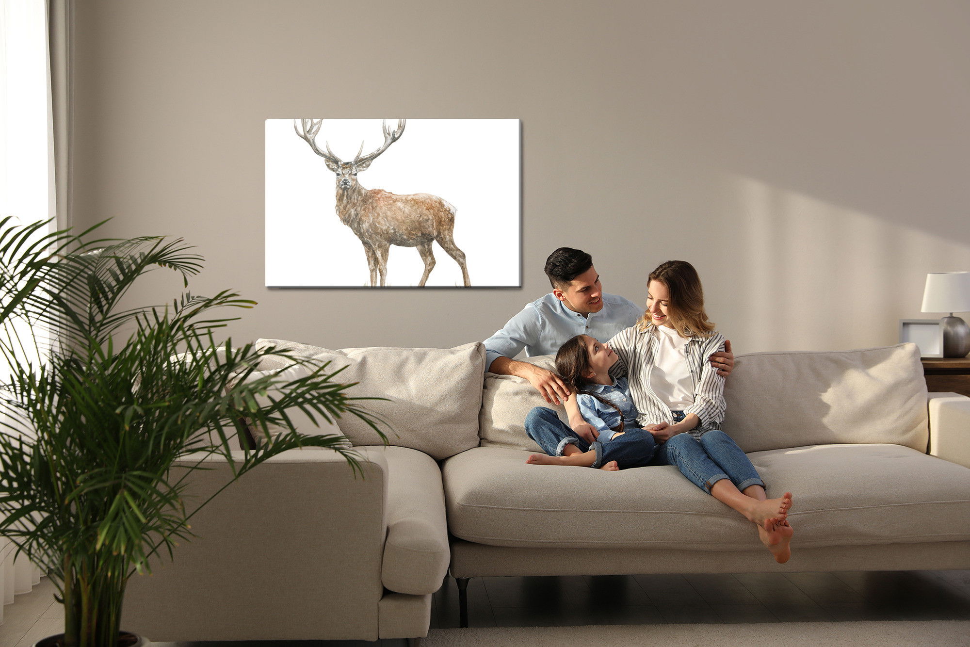 Motivet A deer like painted återges med hög färgprecision och detaljrikedom tack vare HP Latex-teknologi. Trycket sker med vattenbaserade, luktfria och GREENGUARD Gold-certifierade bläck som ger en upplösning på upp till 300 DPI. Färgerna är UV-beständiga och behåller sin styrka även i ljusa rum, vilket gör tavlan lämplig för både hem- och offentliga miljöer.