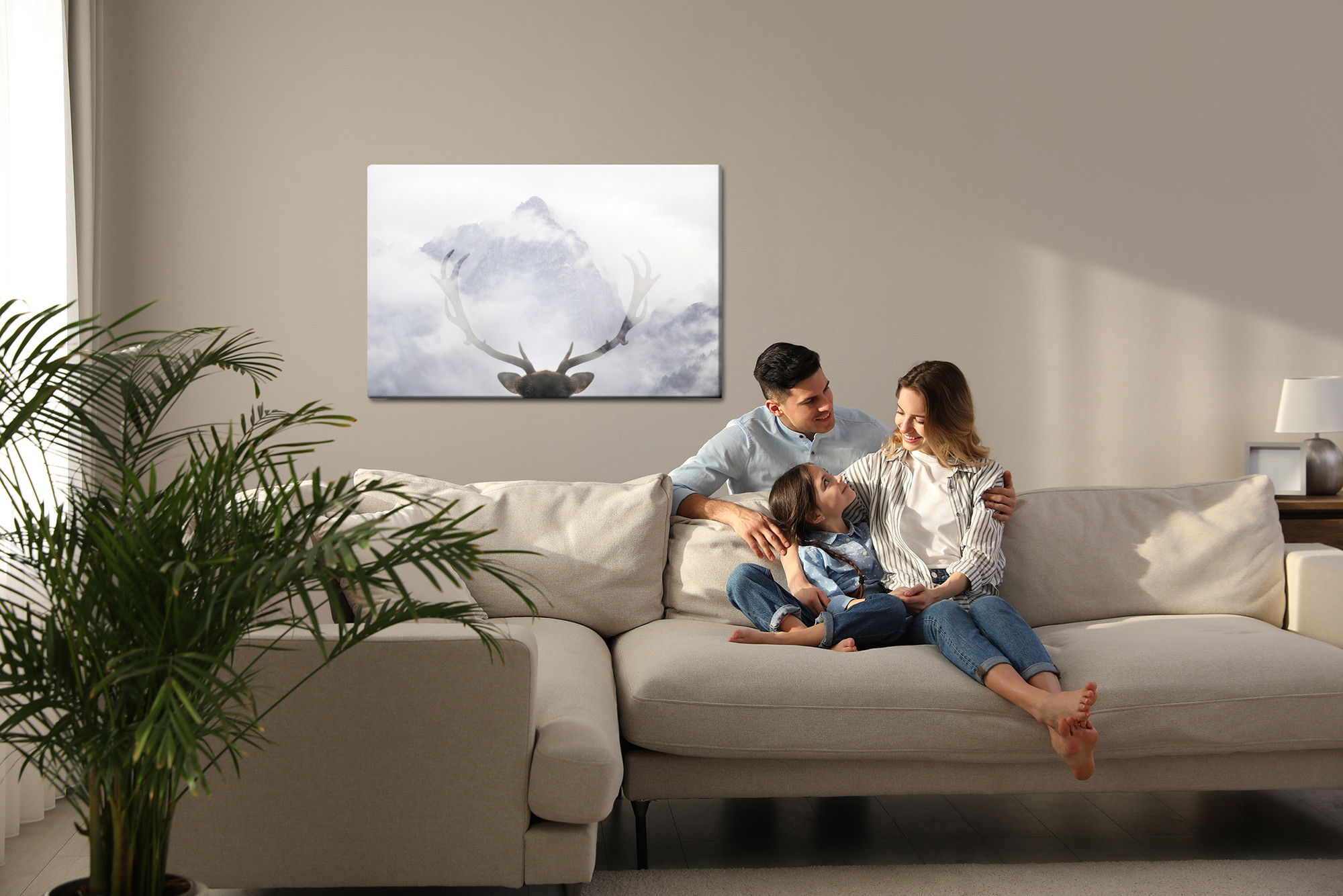 Motivet A deer looking återges med hög färgprecision och detaljrikedom tack vare HP Latex-teknologi. Trycket sker med vattenbaserade, luktfria och GREENGUARD Gold-certifierade bläck som ger en upplösning på upp till 300 DPI. Färgerna är UV-beständiga och behåller sin styrka även i ljusa rum, vilket gör tavlan lämplig för både hem- och offentliga miljöer.