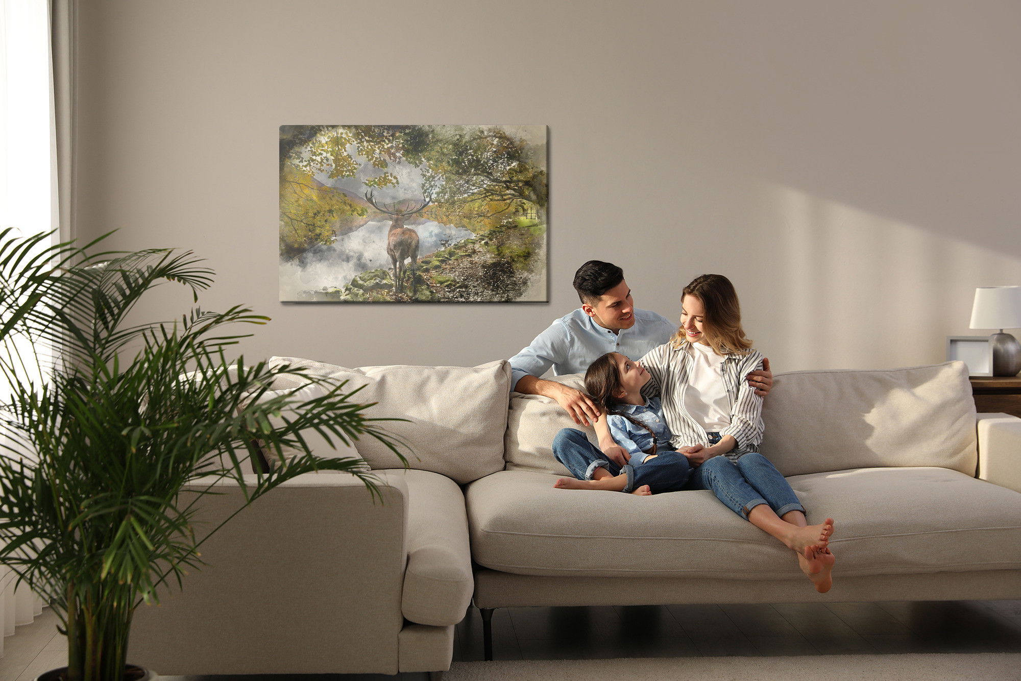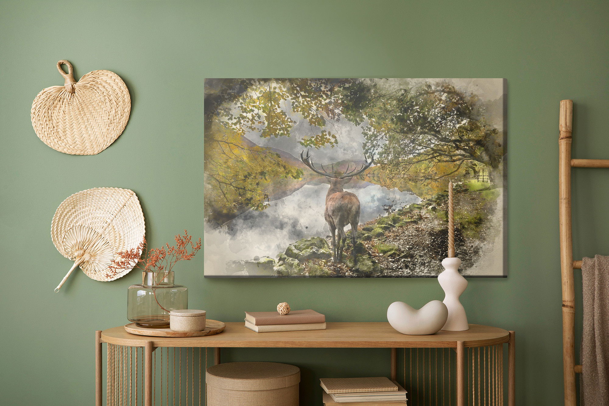 Ljuddämpande tavla – A deer on the river för lugnare rum och mjukare akustik