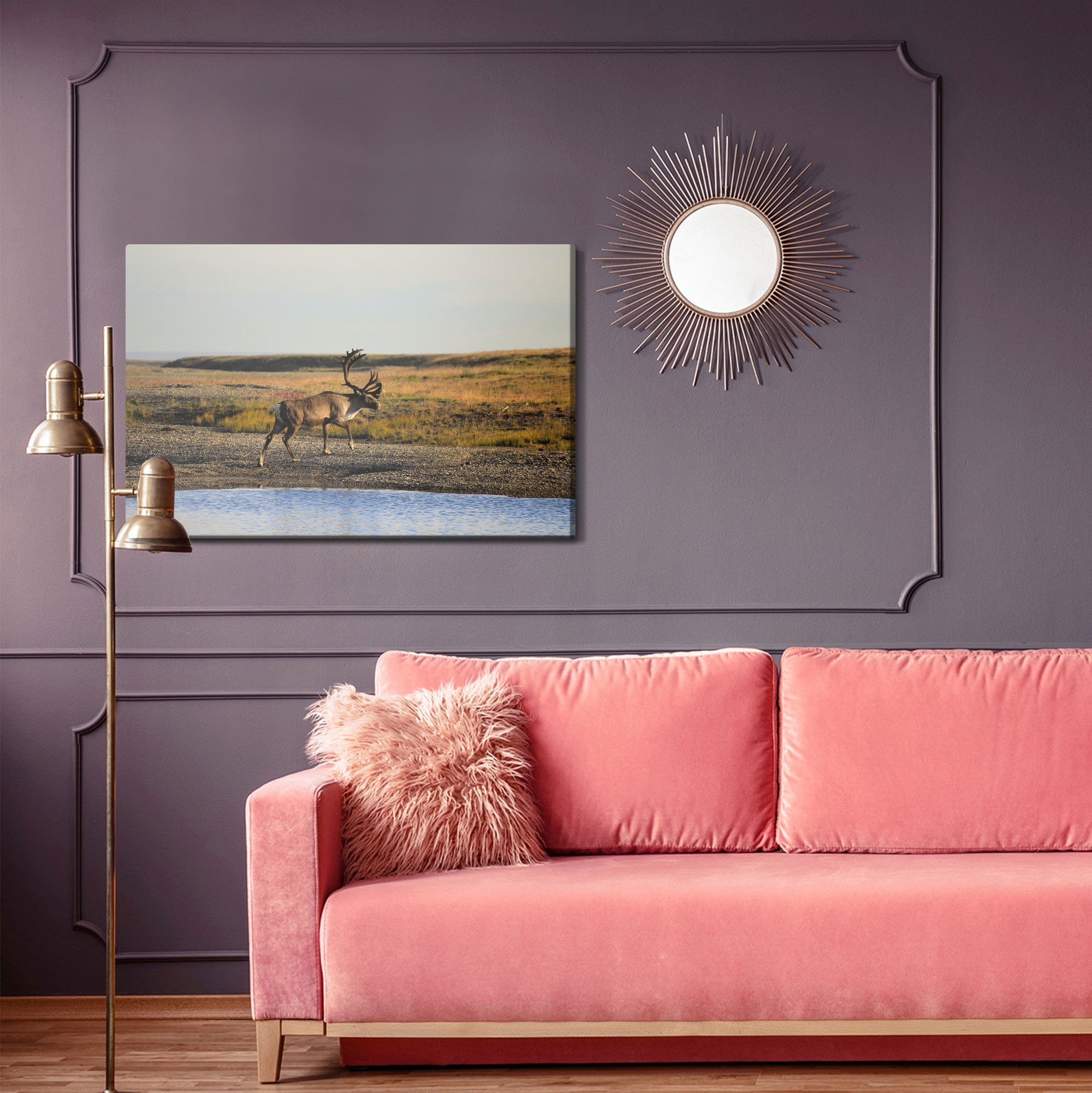 Motivet A deer over the water återges med hög färgprecision och detaljrikedom tack vare HP Latex-teknologi. Trycket sker med vattenbaserade, luktfria och GREENGUARD Gold-certifierade bläck som ger en upplösning på upp till 300 DPI. Färgerna är UV-beständiga och behåller sin styrka även i ljusa rum, vilket gör tavlan lämplig för både hem- och offentliga miljöer.