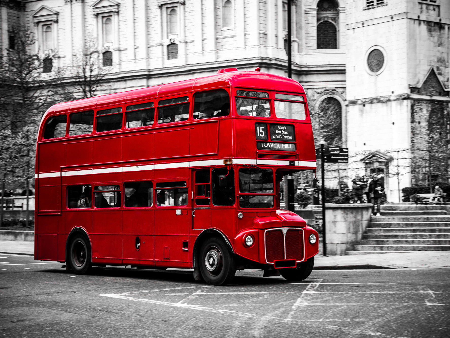 Ljuddämpande tavla – A double decker bus in London för lugnare rum och mjukare akustik