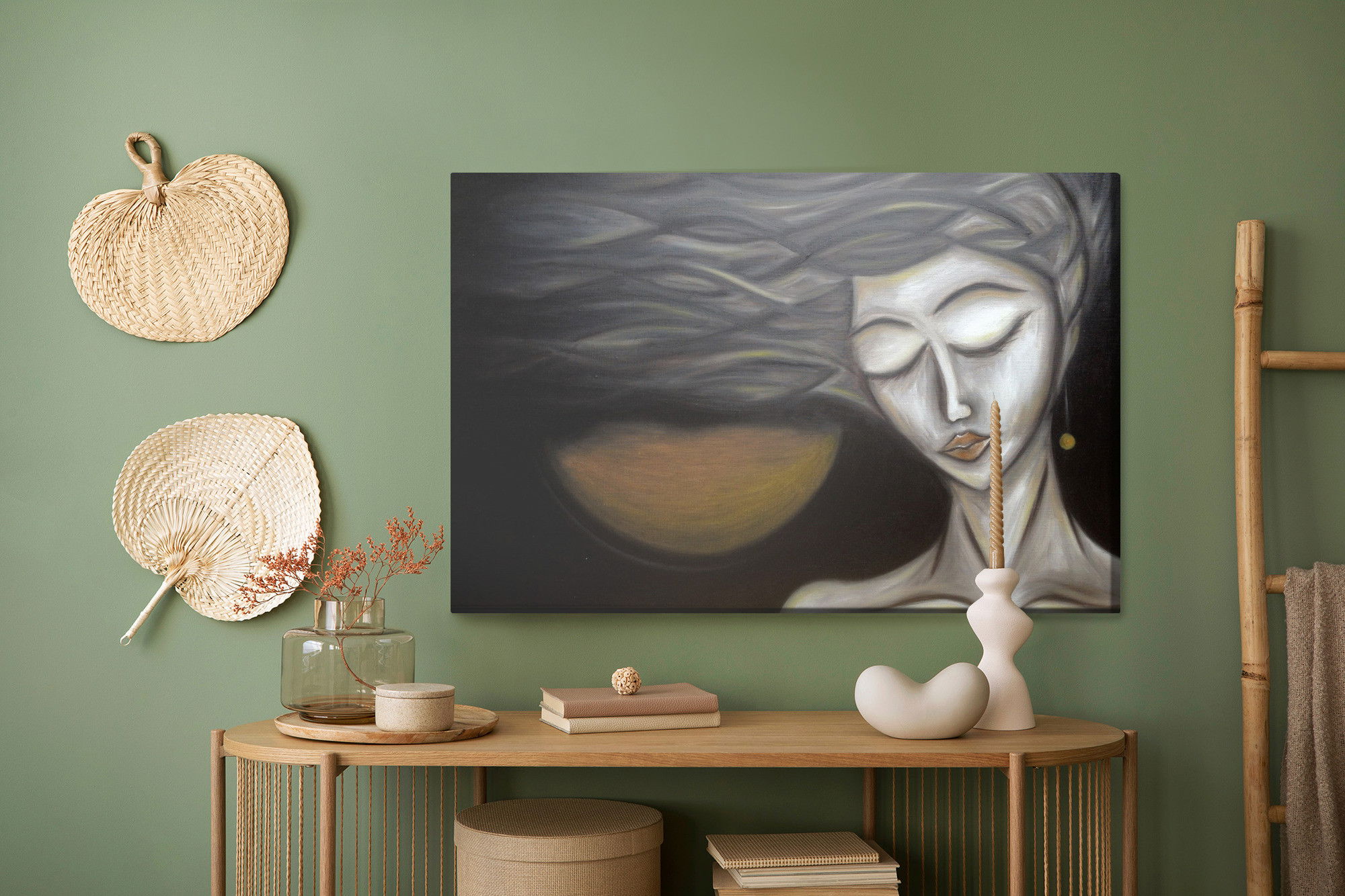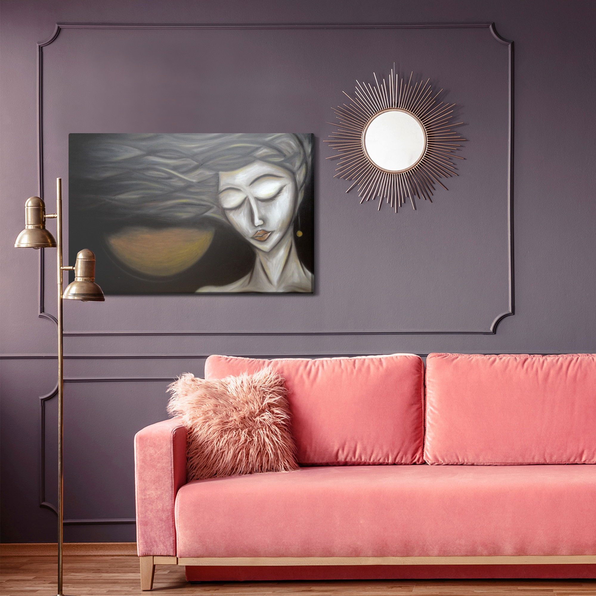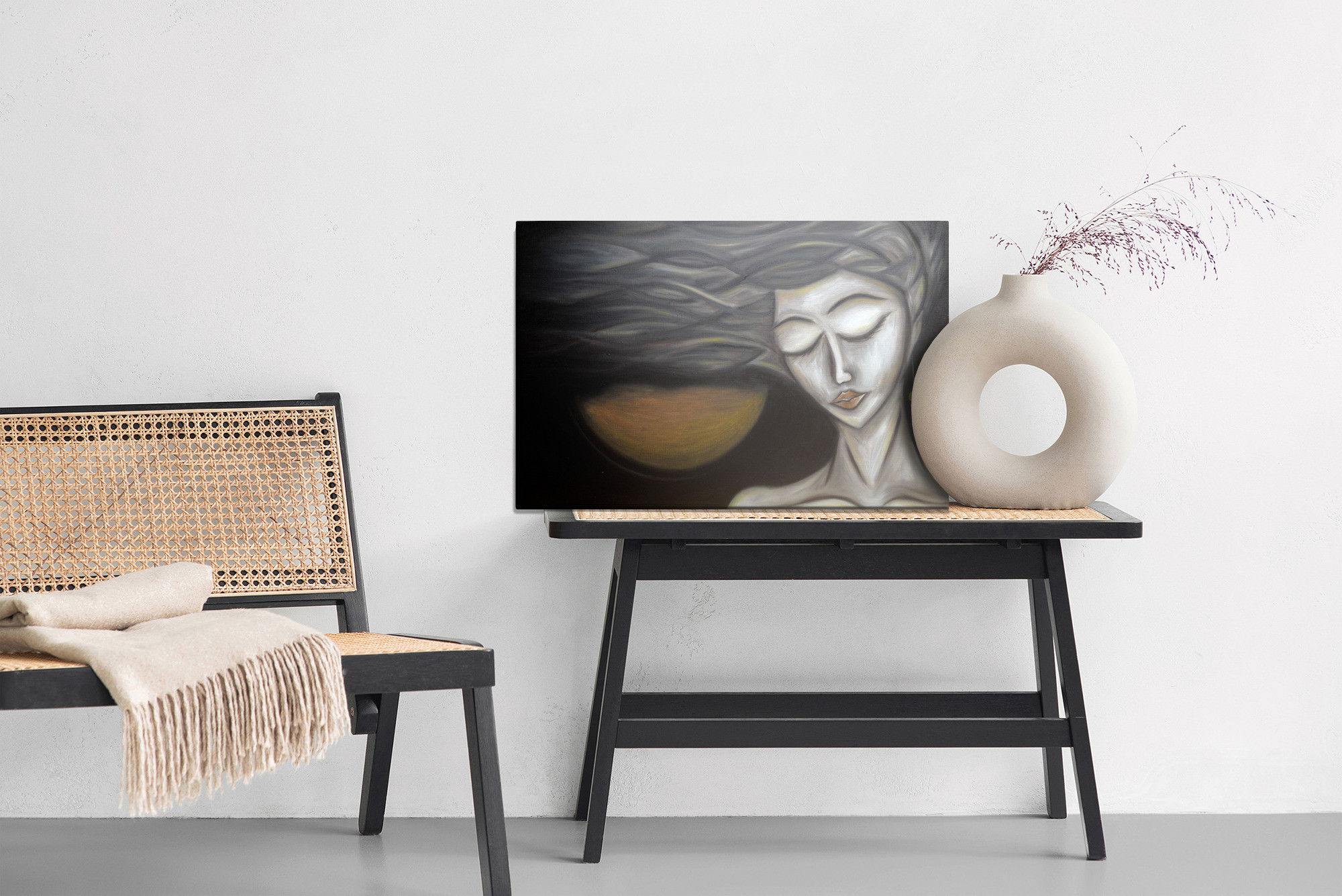 Ljuddämpande tavla – A female portrait för lugnare rum och mjukare akustik
