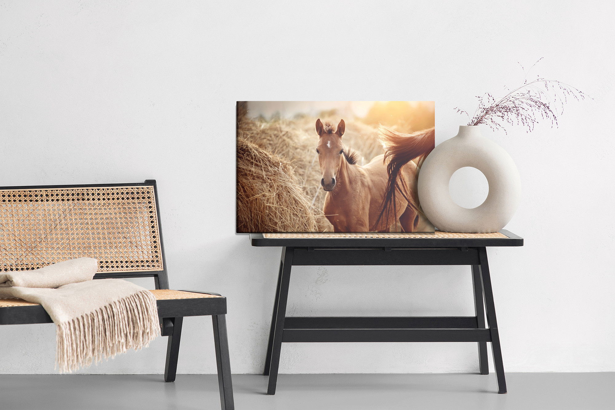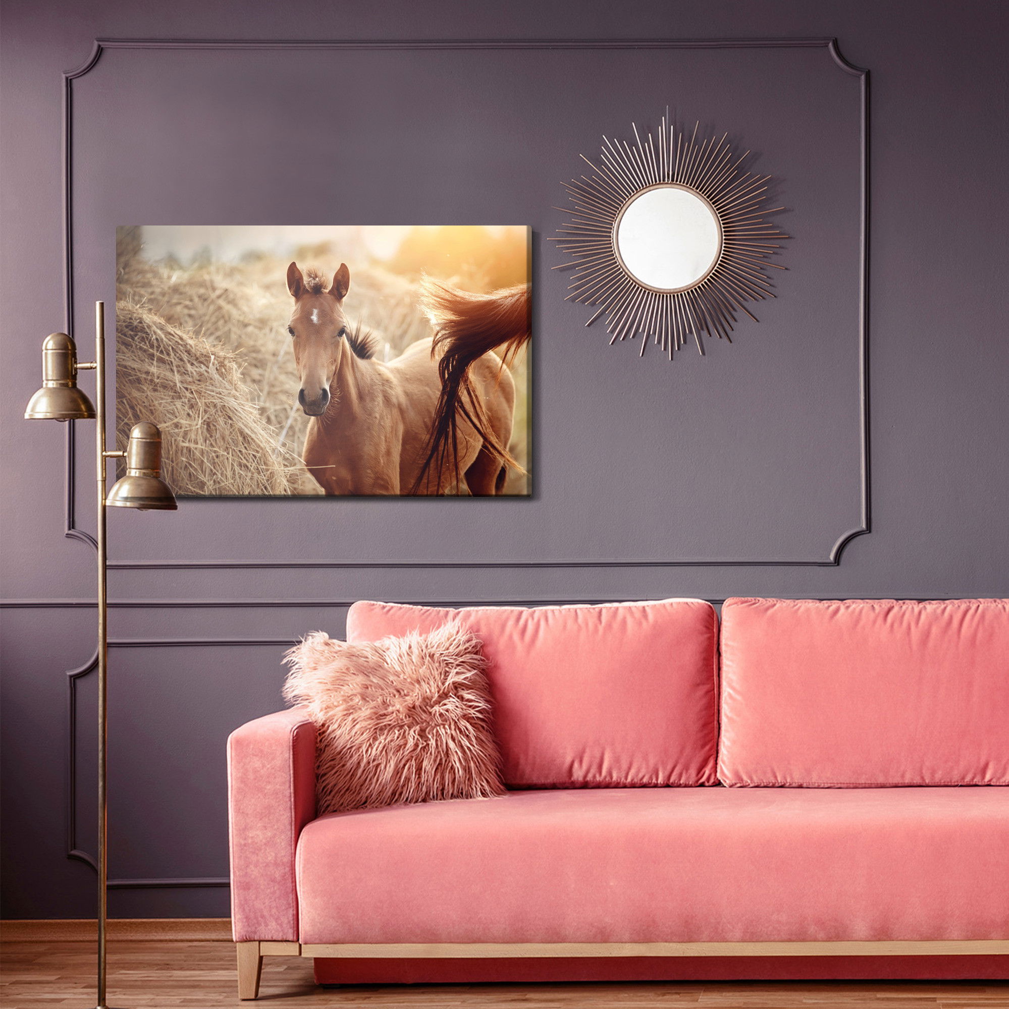 Motivet A foal on a background återges med hög färgprecision och detaljrikedom tack vare HP Latex-teknologi. Trycket sker med vattenbaserade, luktfria och GREENGUARD Gold-certifierade bläck som ger en upplösning på upp till 300 DPI. Färgerna är UV-beständiga och behåller sin styrka även i ljusa rum, vilket gör tavlan lämplig för både hem- och offentliga miljöer.