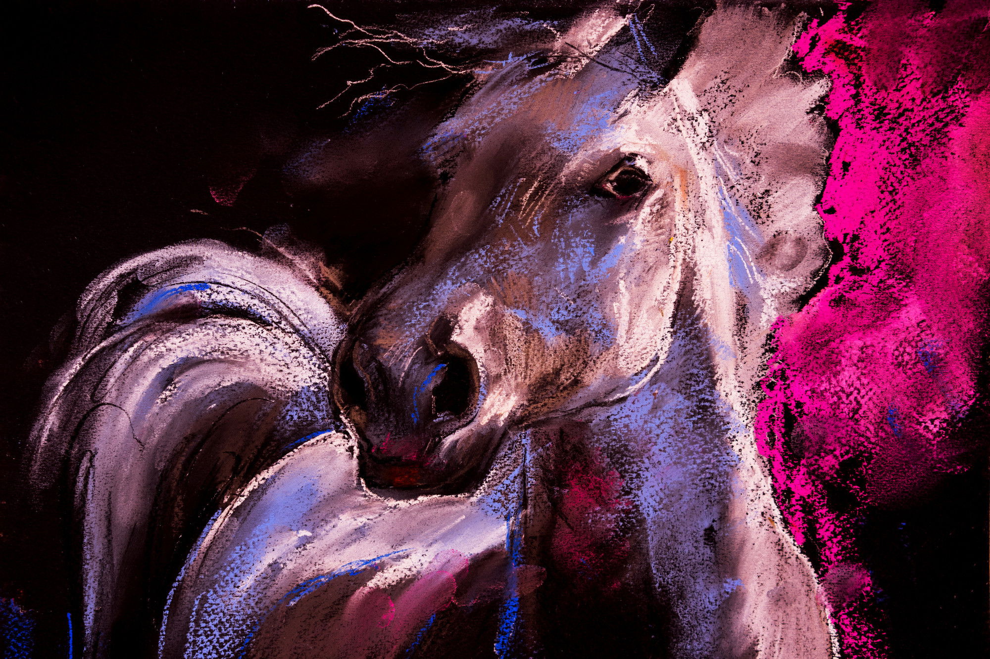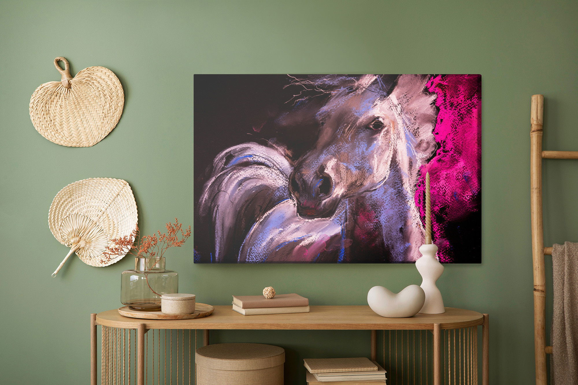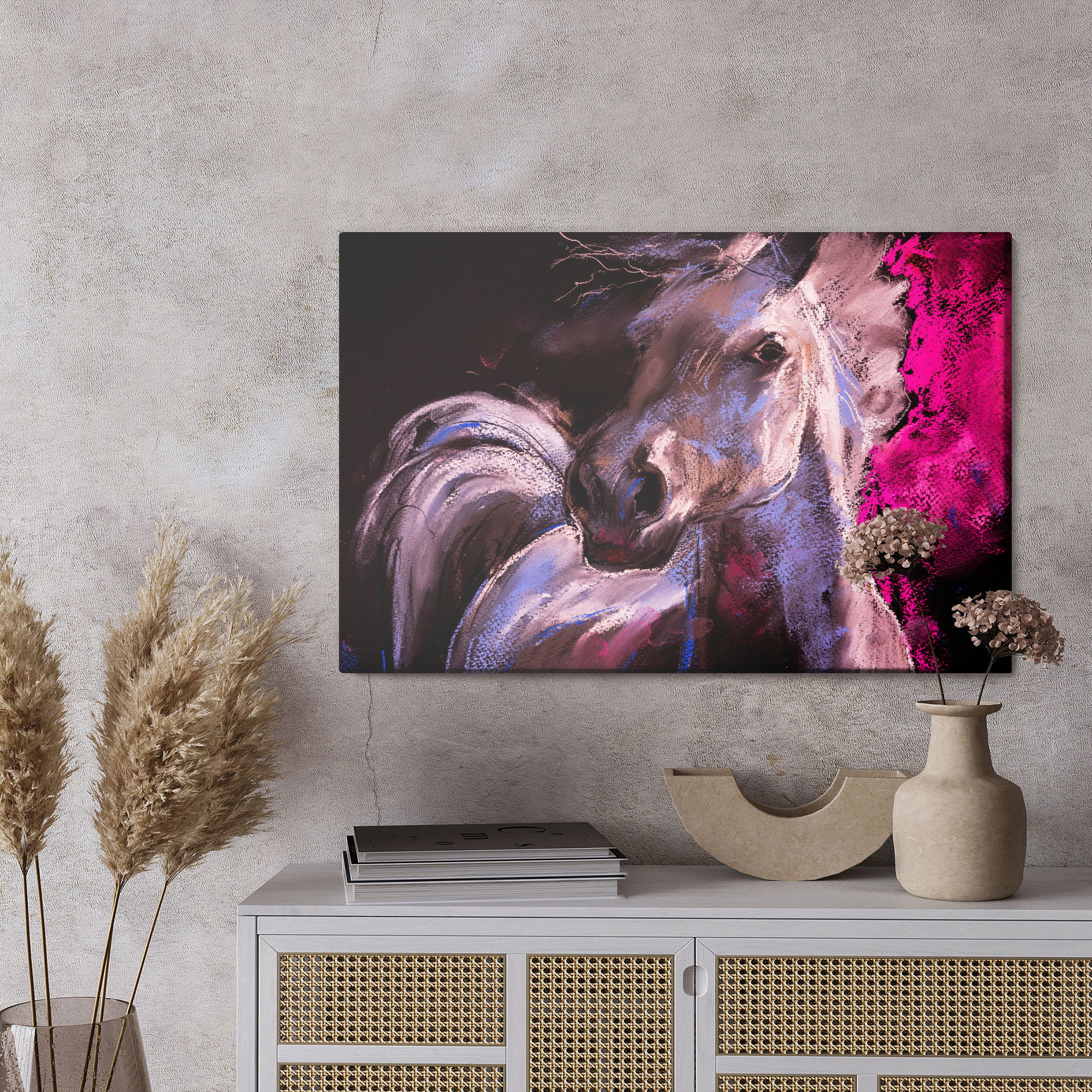 Ljuddämpande tavla – A horse in pastel colours för lugnare rum och mjukare akustik