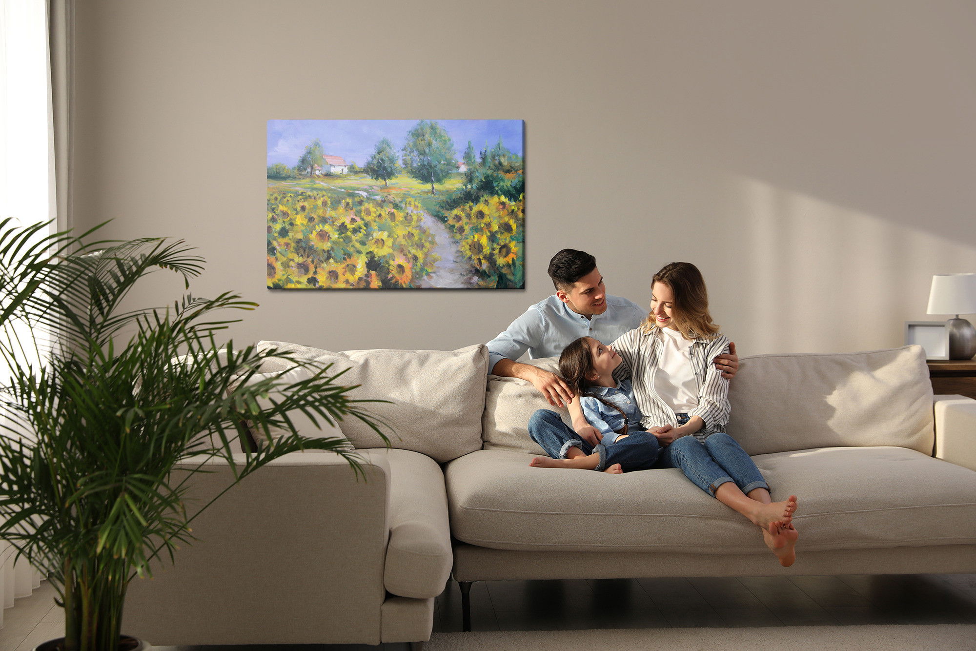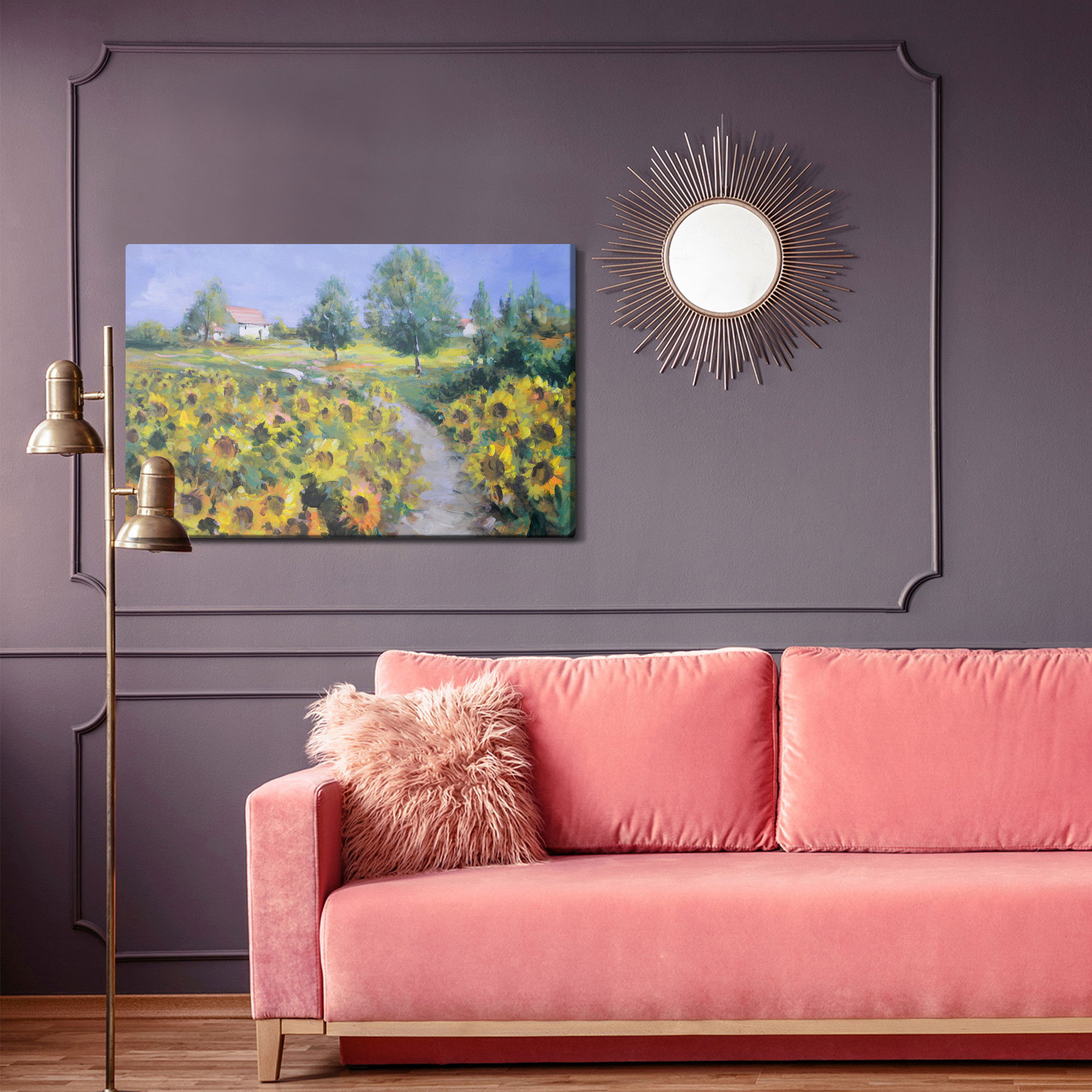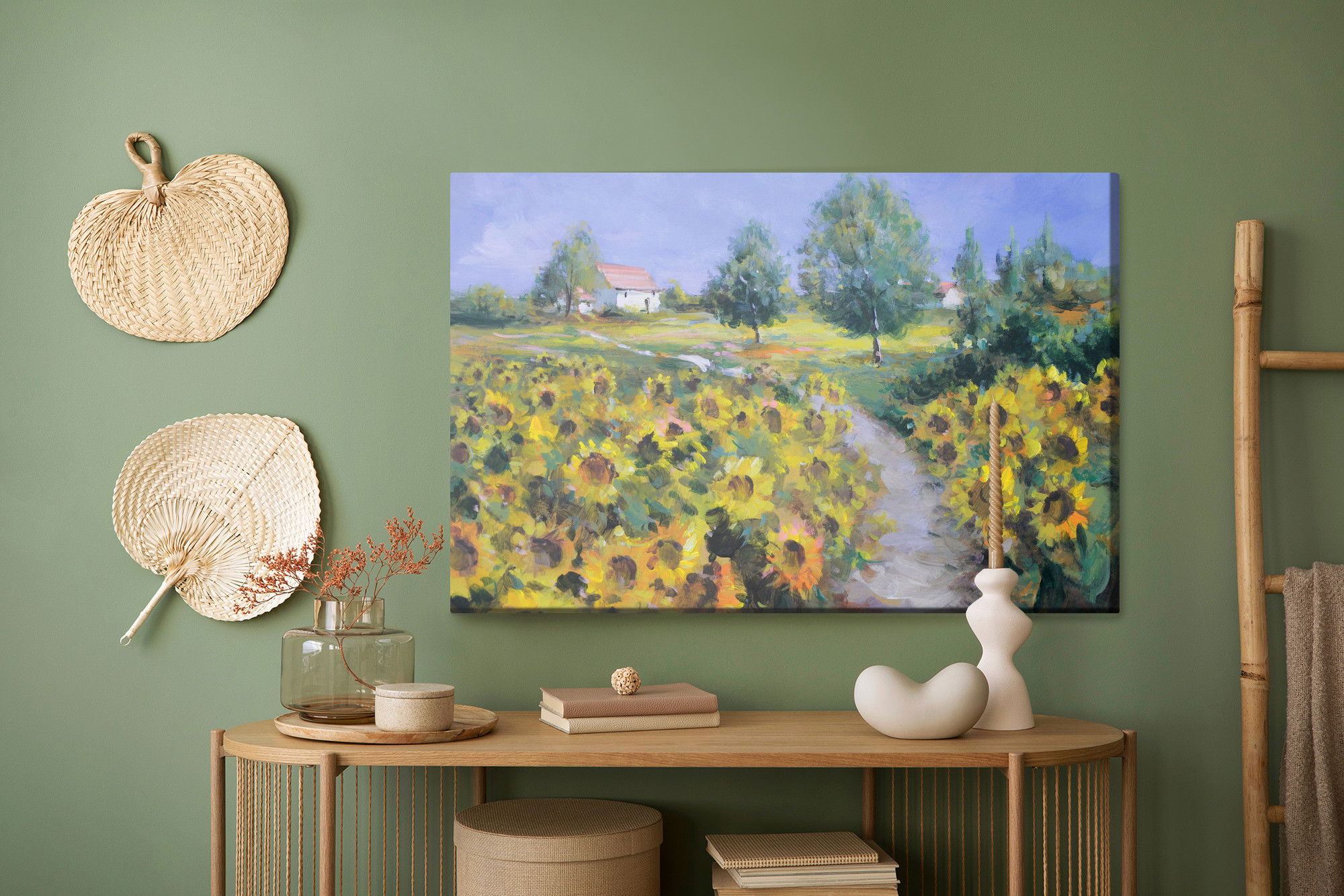 Ljuddämpande tavla – A landscape with sunflowers för lugnare rum och mjukare akustik