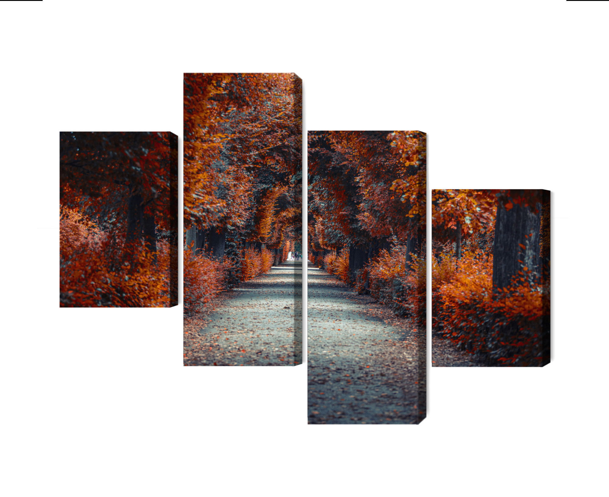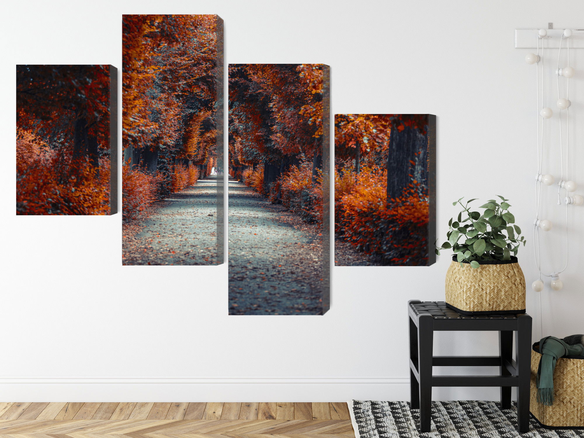 Motivet A path deep into the autumn återges med hög färgprecision och detaljrikedom tack vare HP Latex-teknologi. Trycket sker med vattenbaserade, luktfria och GREENGUARD Gold-certifierade bläck som ger en upplösning på upp till 300 DPI. Färgerna är UV-beständiga och behåller sin styrka även i ljusa rum, vilket gör tavlan lämplig för både hem- och offentliga miljöer.