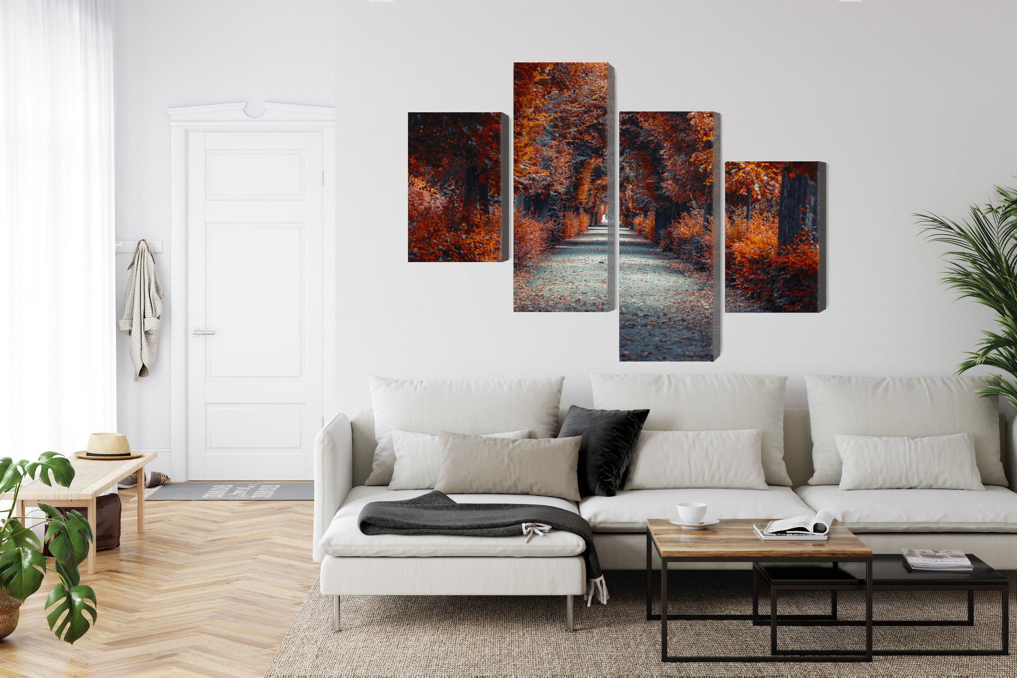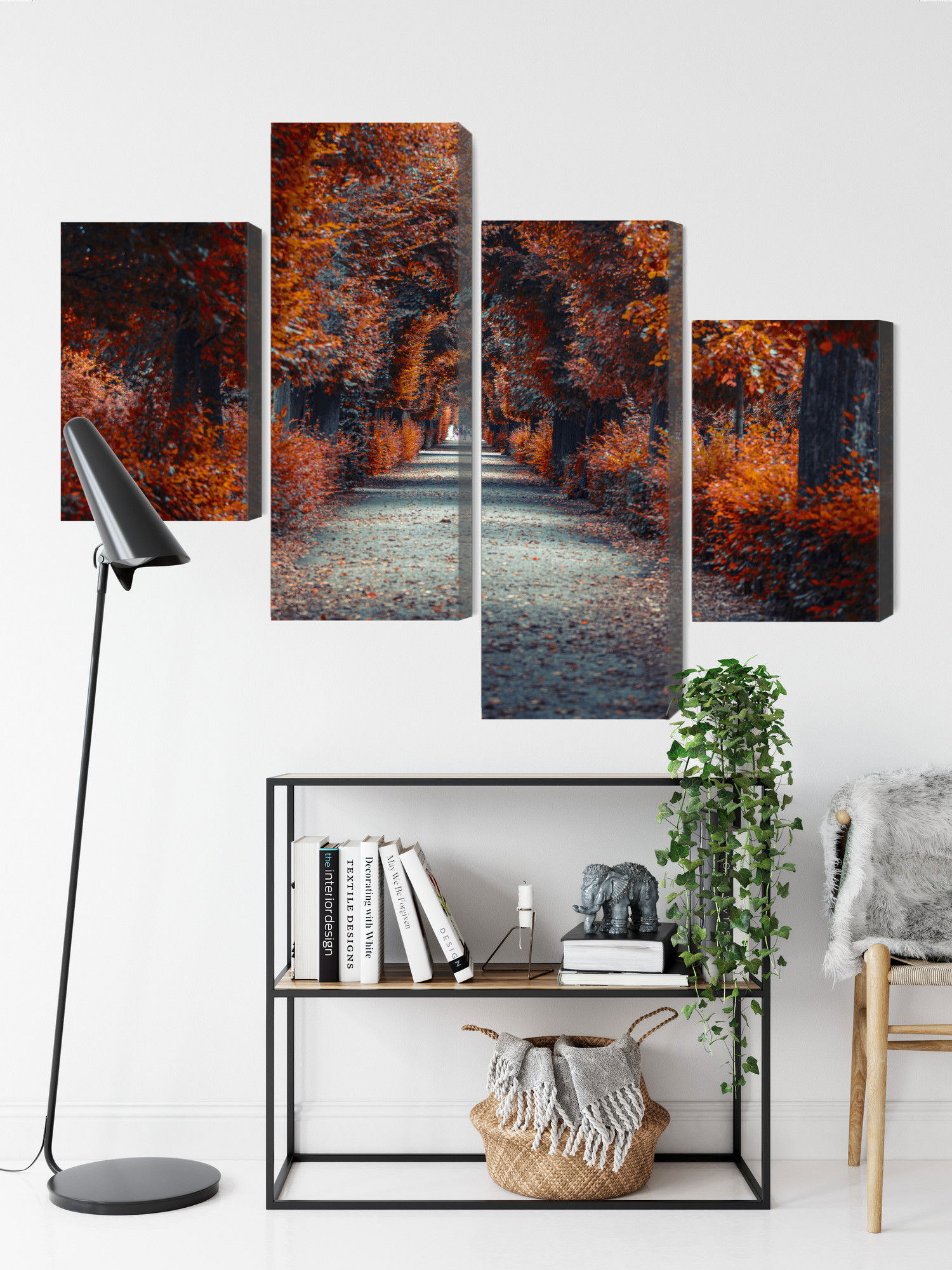 Varje tavla monteras på en massiv fururam. Format upp till 70×50 cm har en ram på 15 mm, medan format från 90×60 cm och uppåt har en ram på 20 mm. Den exakta dukspänningen gör att tavlan håller sin form över tid. Motivet A path deep into the autumn trycks runt hela ramen vilket ger ett stilrent galleriuttryck där tavlan är lika vacker från sidan som framifrån. Kombinationen av rak dukspänning, rena linjer och korrekt tryck ger en professionell finish.