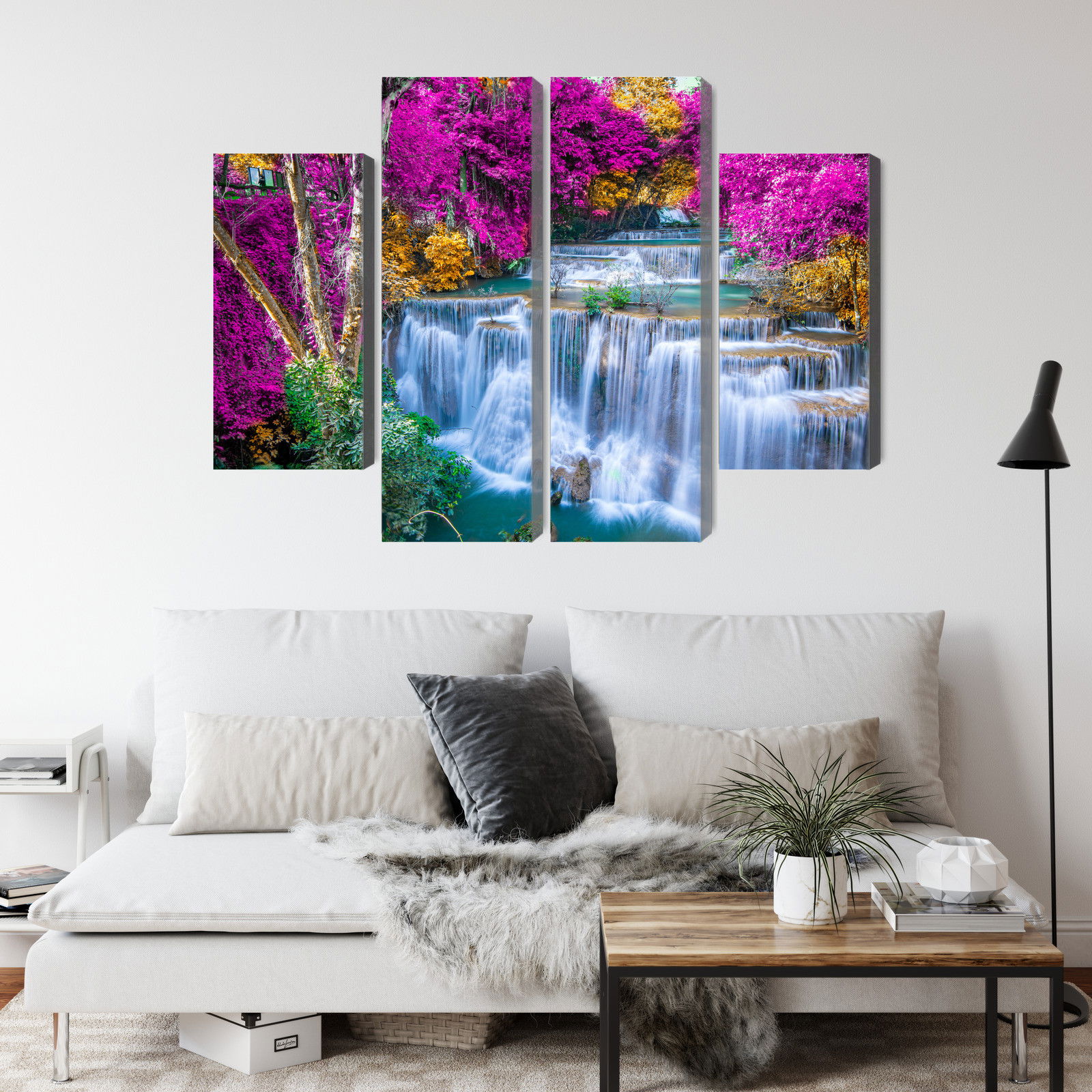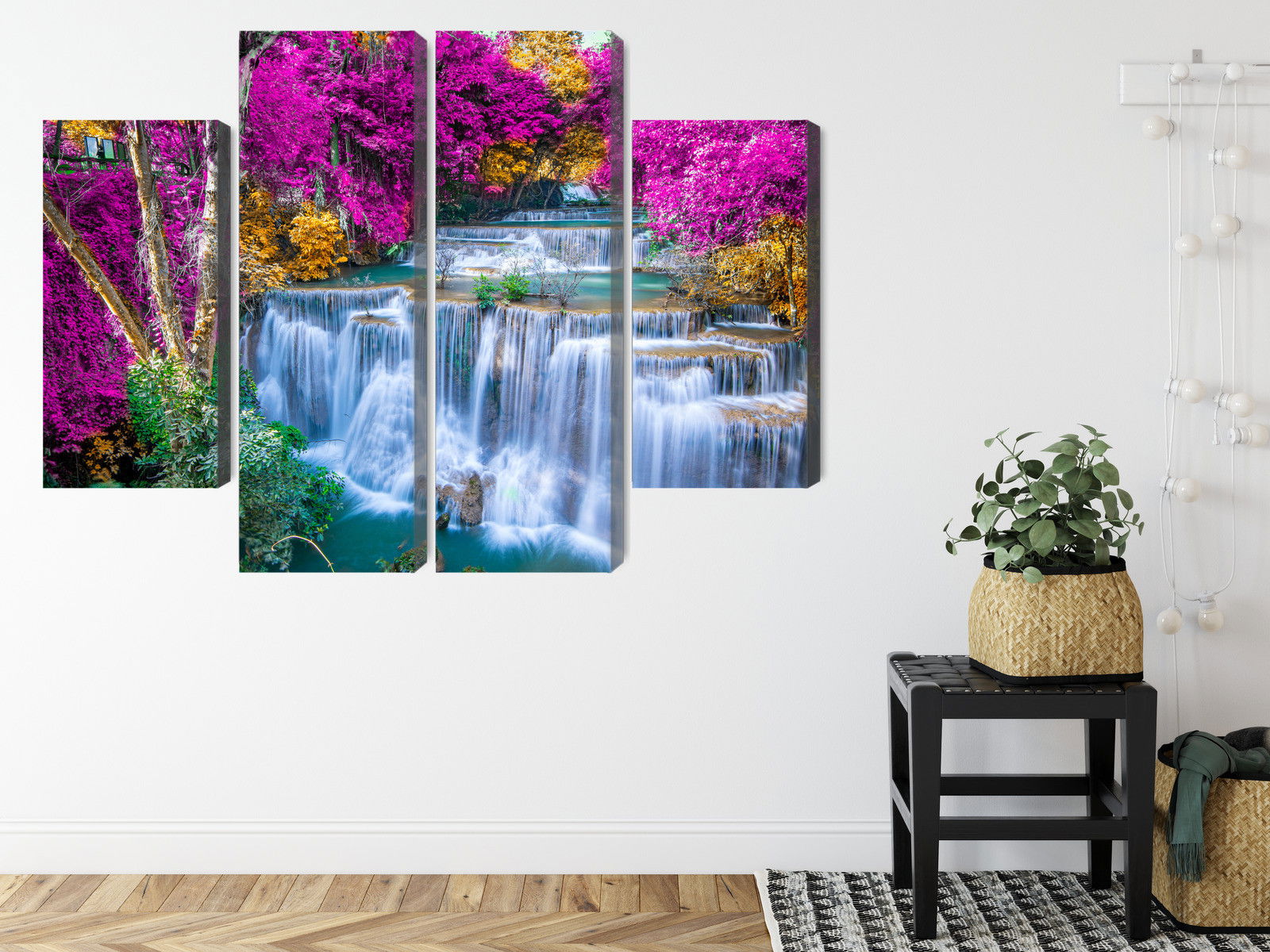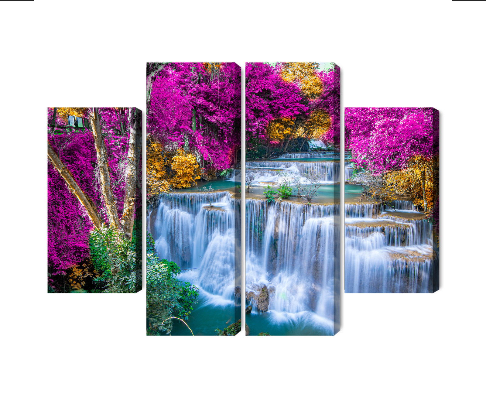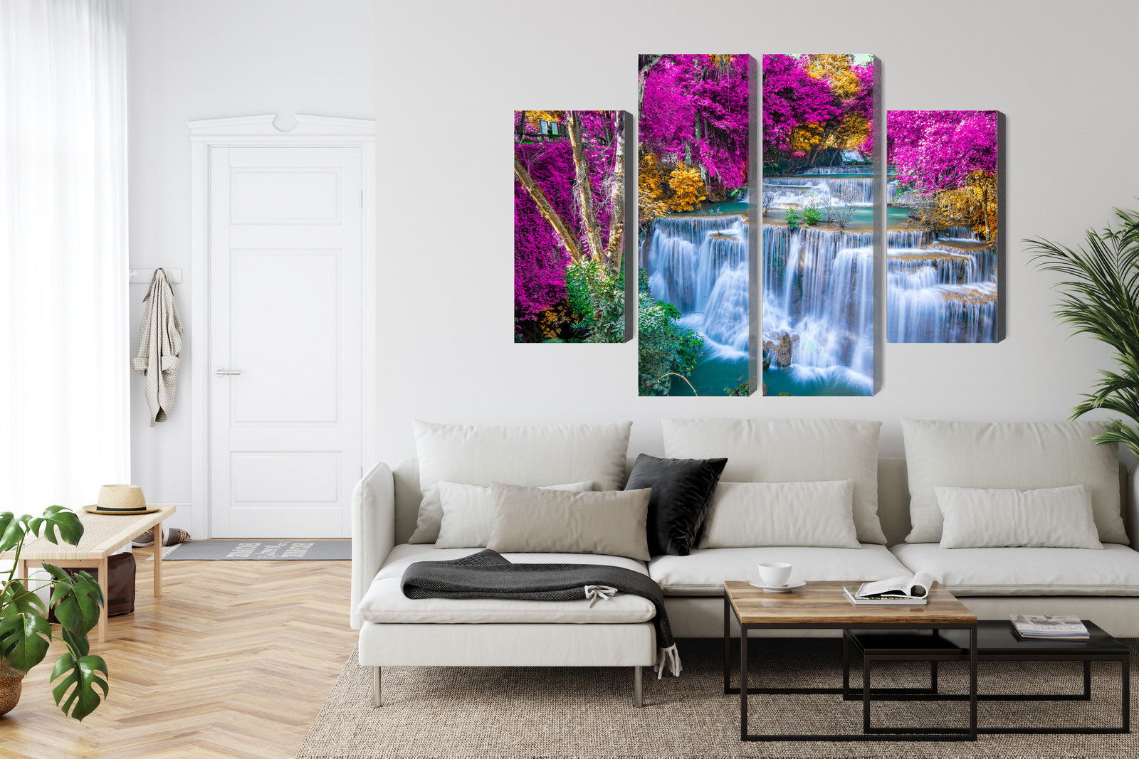 Motivet A waterfall in the fall återges med hög färgprecision och detaljrikedom tack vare HP Latex-teknologi. Trycket sker med vattenbaserade, luktfria och GREENGUARD Gold-certifierade bläck som ger en upplösning på upp till 300 DPI. Färgerna är UV-beständiga och behåller sin styrka även i ljusa rum, vilket gör tavlan lämplig för både hem- och offentliga miljöer.