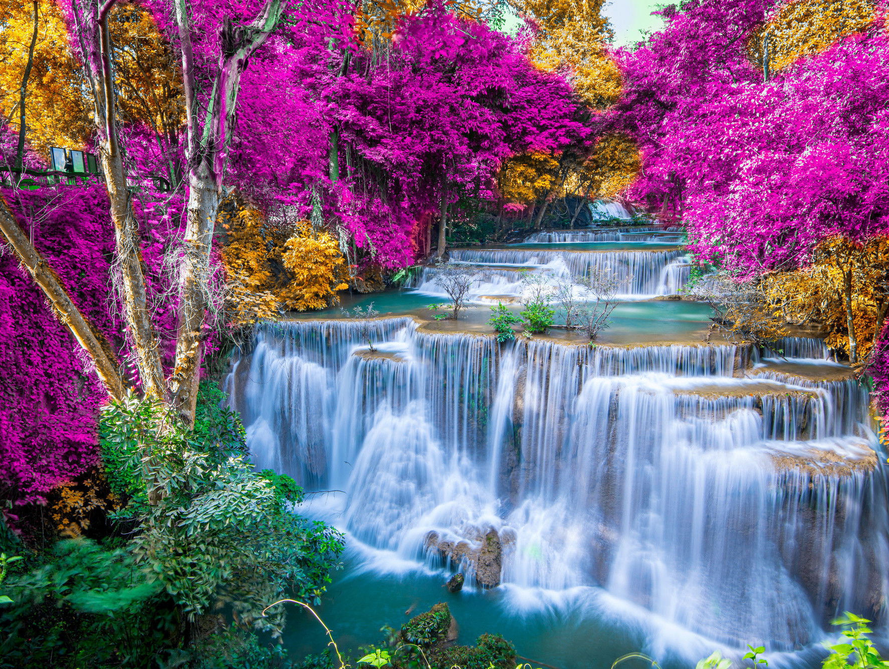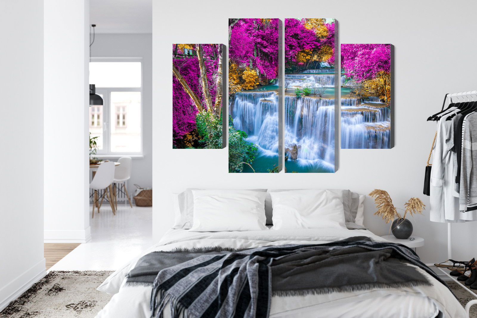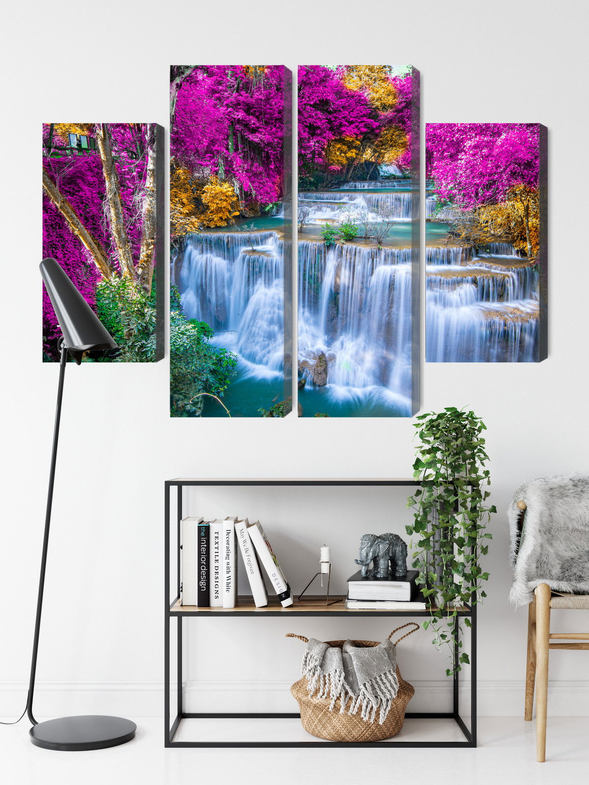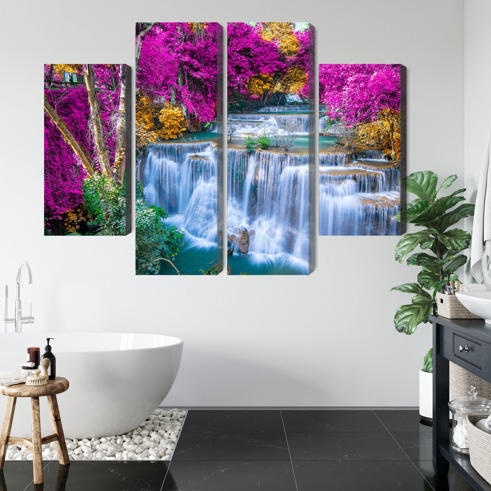Motivet A waterfall in the fall återges med hög färgprecision och detaljrikedom tack vare HP Latex-teknologi. Trycket sker med vattenbaserade, luktfria och GREENGUARD Gold-certifierade bläck som ger en upplösning på upp till 300 DPI. Färgerna är UV-beständiga och behåller sin styrka även i ljusa rum, vilket gör tavlan lämplig för både hem- och offentliga miljöer.