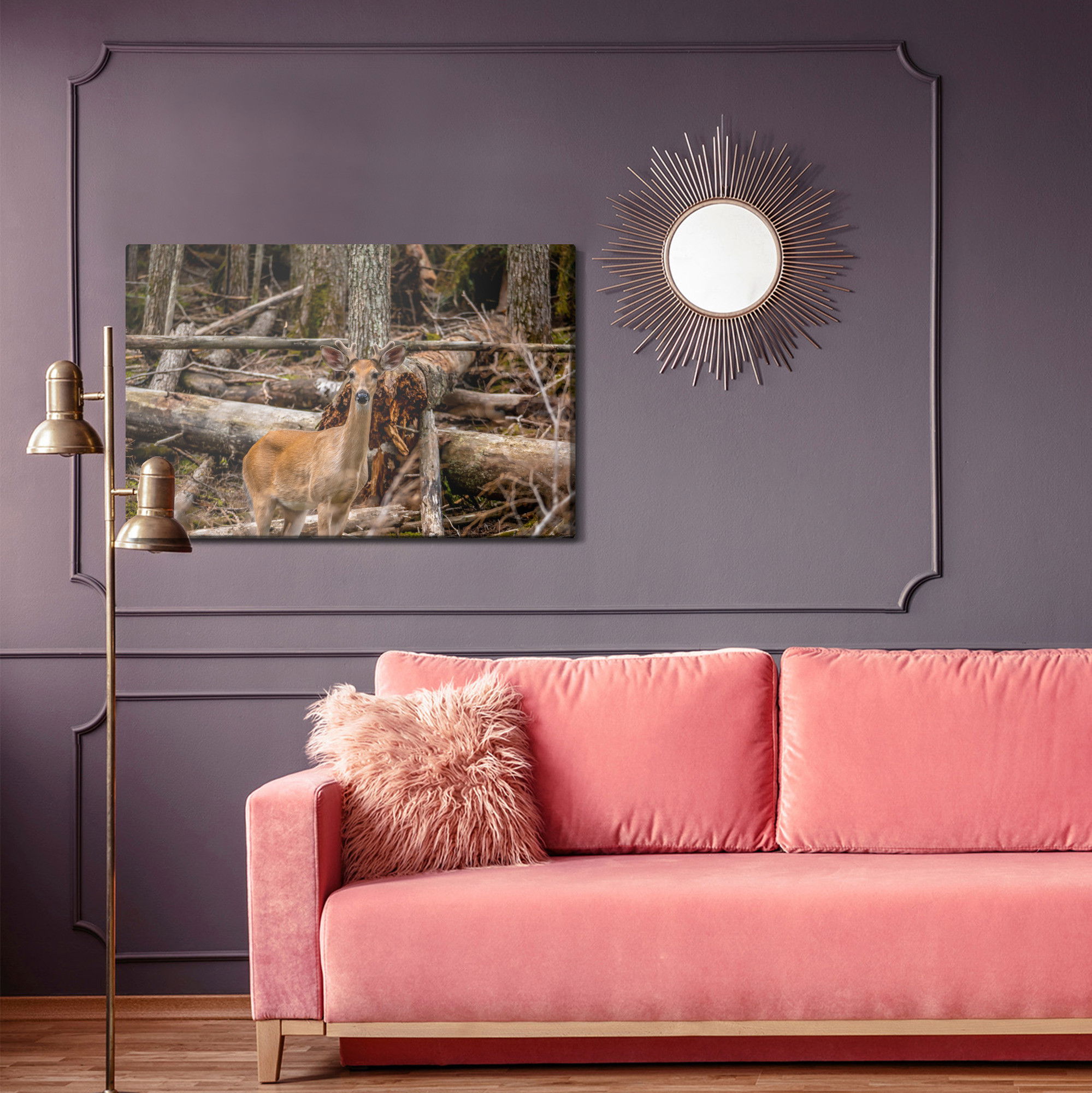 Ljuddämpande tavla – A young deer among the trees för lugnare rum och mjukare akustik