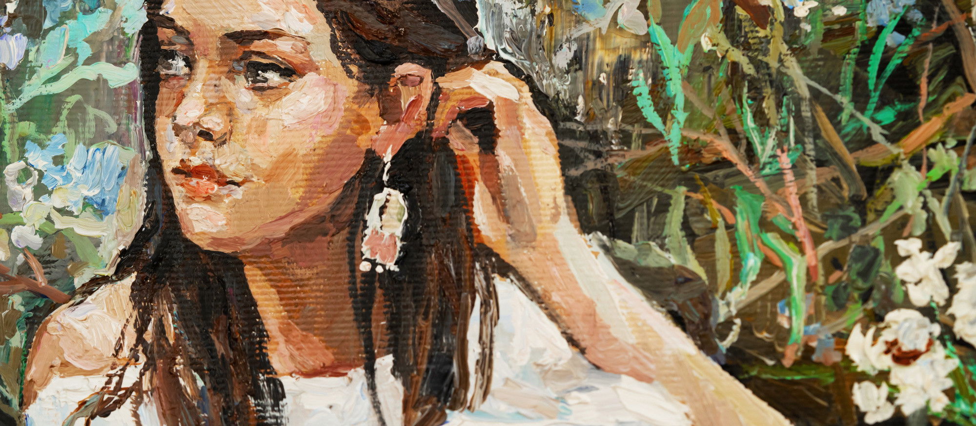 SilentDirects ljuddämpande tavla A young girl is sitting kombinerar ett högupplöst motiv med avancerad akustikteknik. Varje tavla monteras i Sverige och bygger på en stabil canvastavla med fururam, där insidan av ramen fylls med en ljudabsorberande kärna av återvunnen polyester. Konstruktionen gör tavlan till ett både estetiskt och funktionellt inslag i rummet.