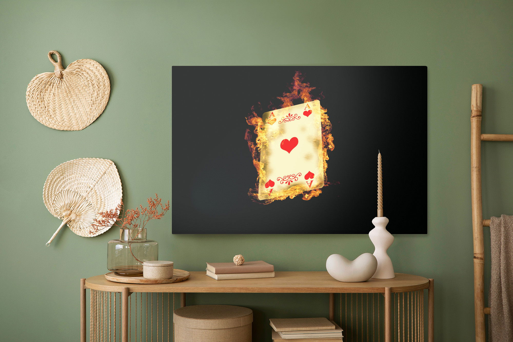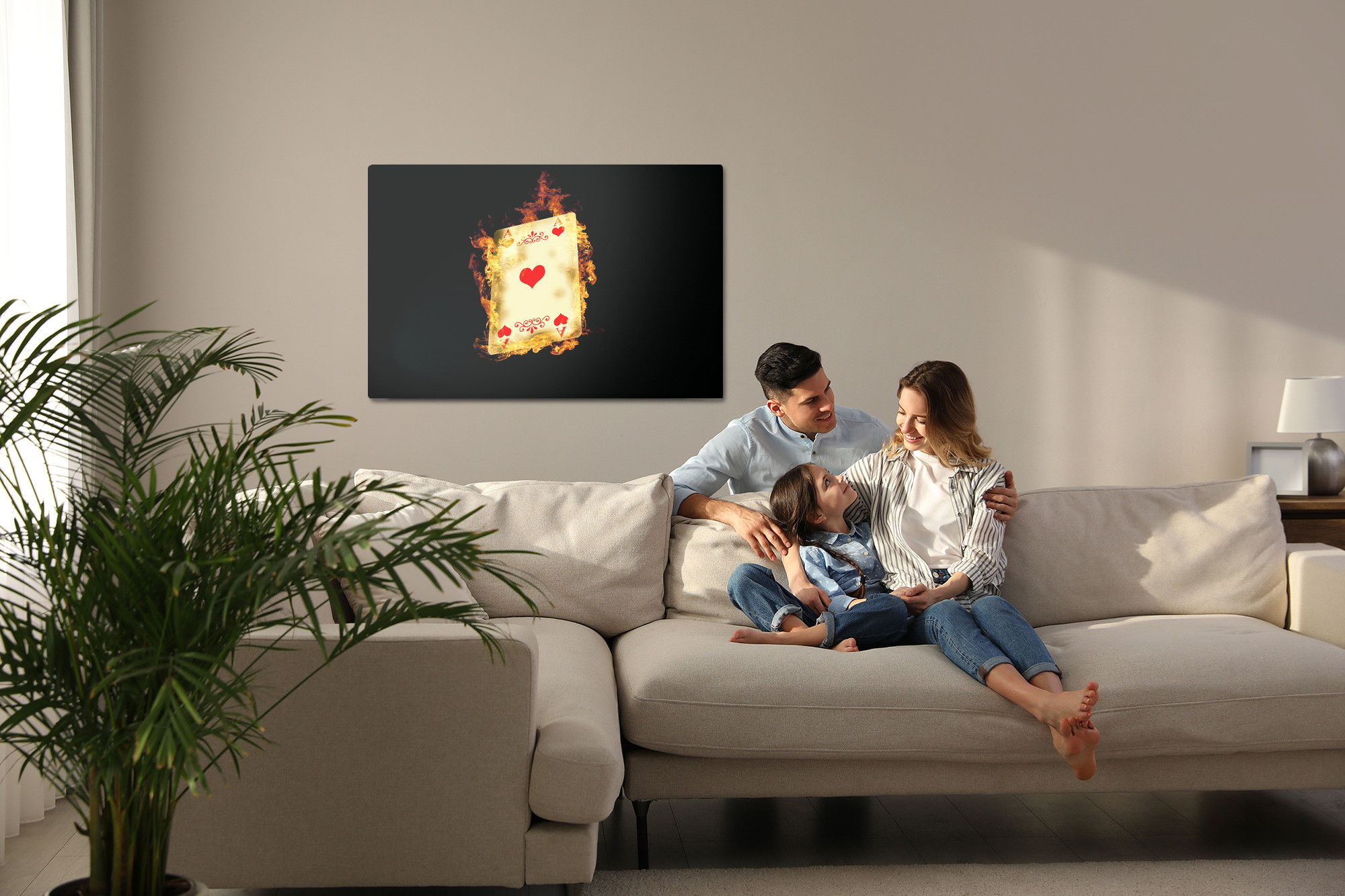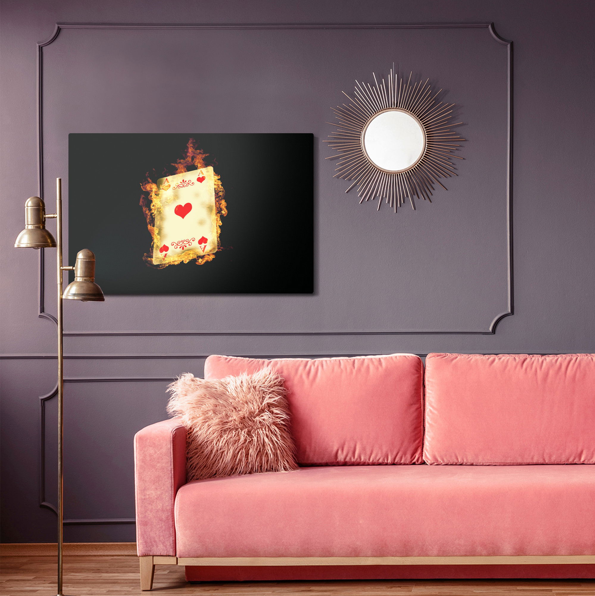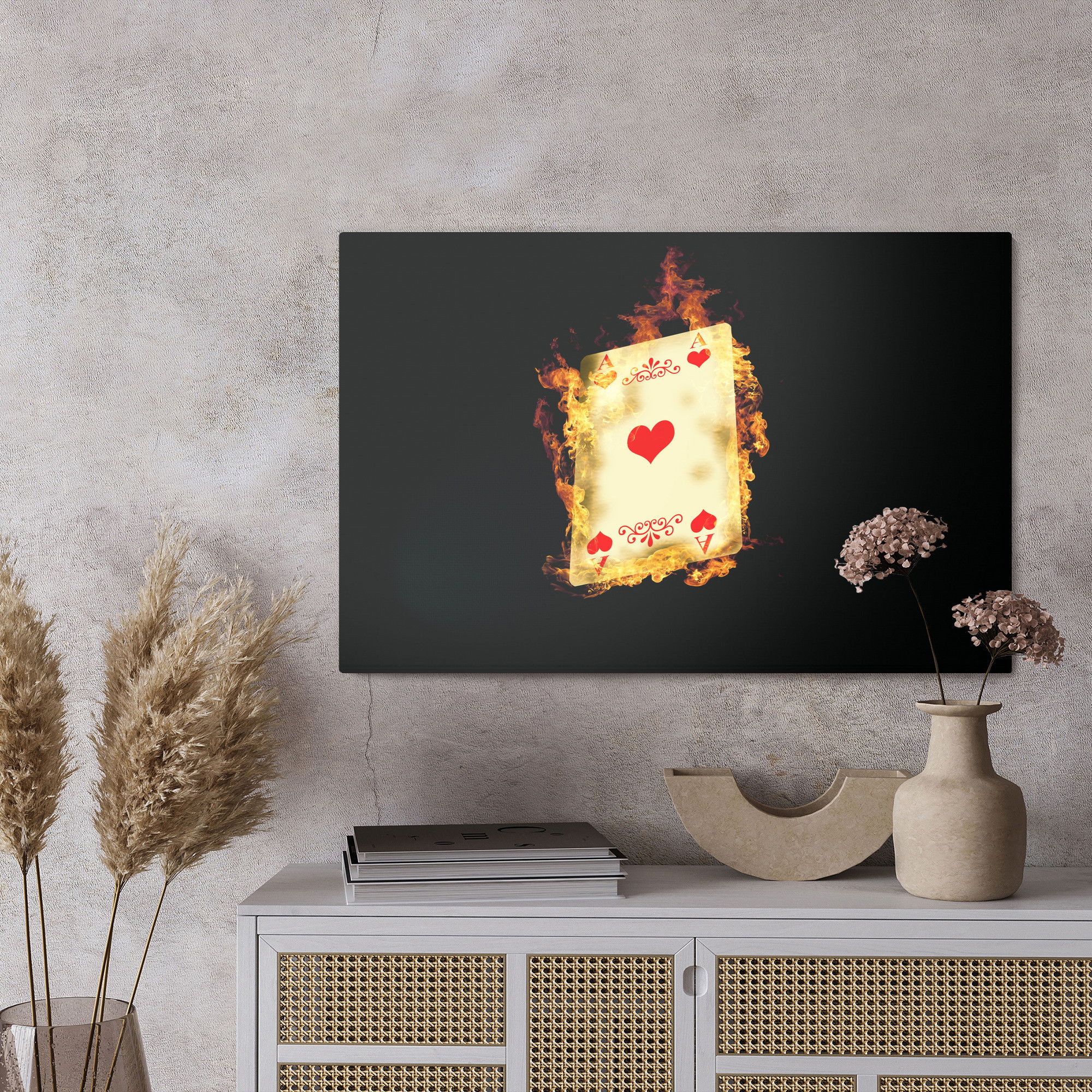Motivet Ace in flames återges med hög färgprecision och detaljrikedom tack vare HP Latex-teknologi. Trycket sker med vattenbaserade, luktfria och GREENGUARD Gold-certifierade bläck som ger en upplösning på upp till 300 DPI. Färgerna är UV-beständiga och behåller sin styrka även i ljusa rum, vilket gör tavlan lämplig för både hem- och offentliga miljöer.
