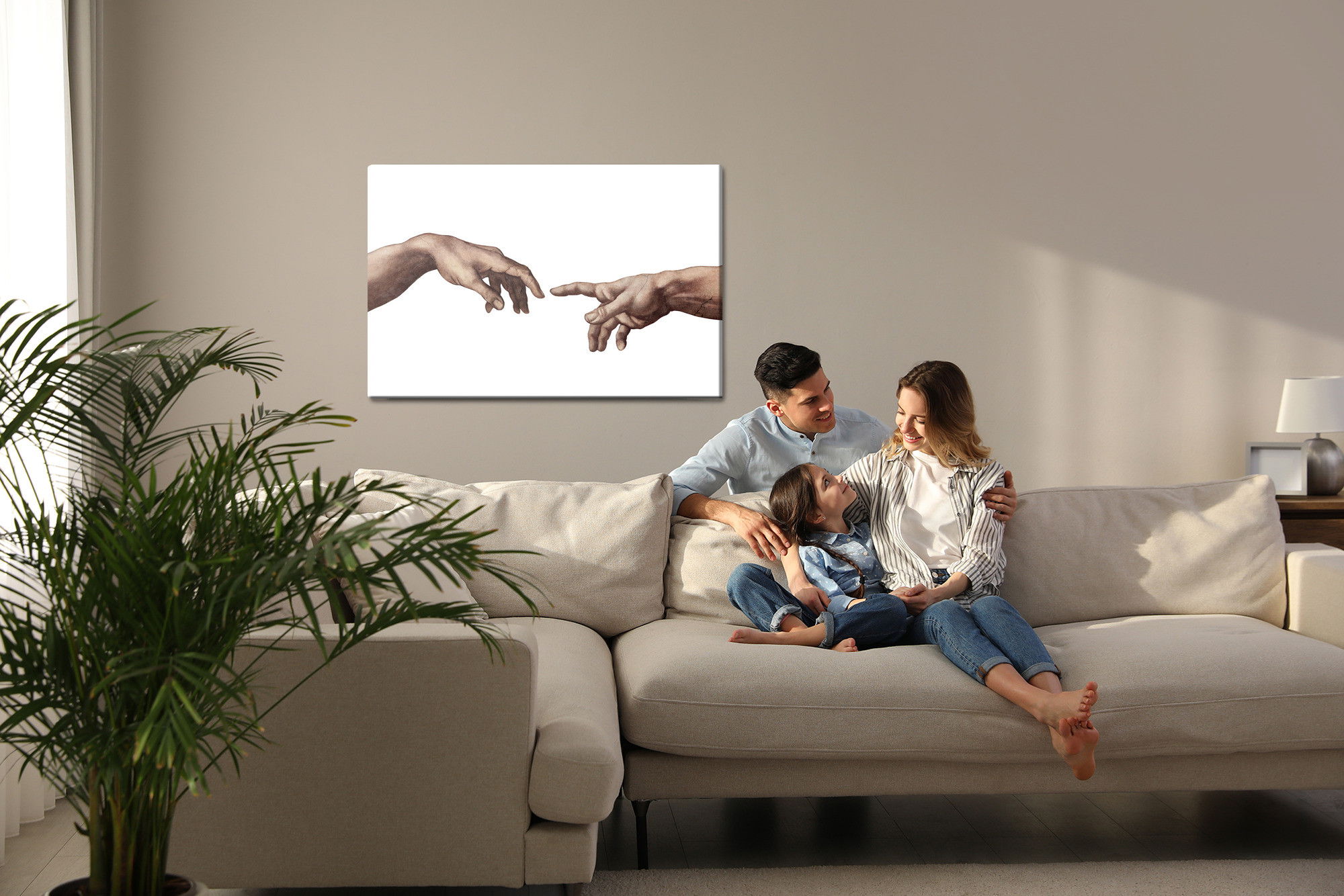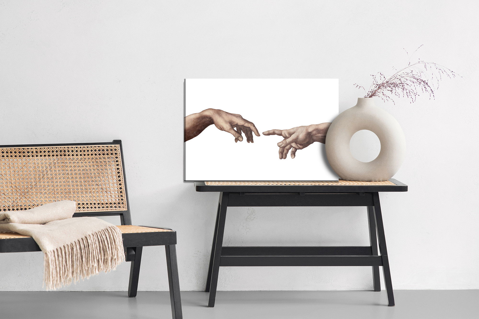 Motivet Adam's minimalist creation återges med hög färgprecision och detaljrikedom tack vare HP Latex-teknologi. Trycket sker med vattenbaserade, luktfria och GREENGUARD Gold-certifierade bläck som ger en upplösning på upp till 300 DPI. Färgerna är UV-beständiga och behåller sin styrka även i ljusa rum, vilket gör tavlan lämplig för både hem- och offentliga miljöer.