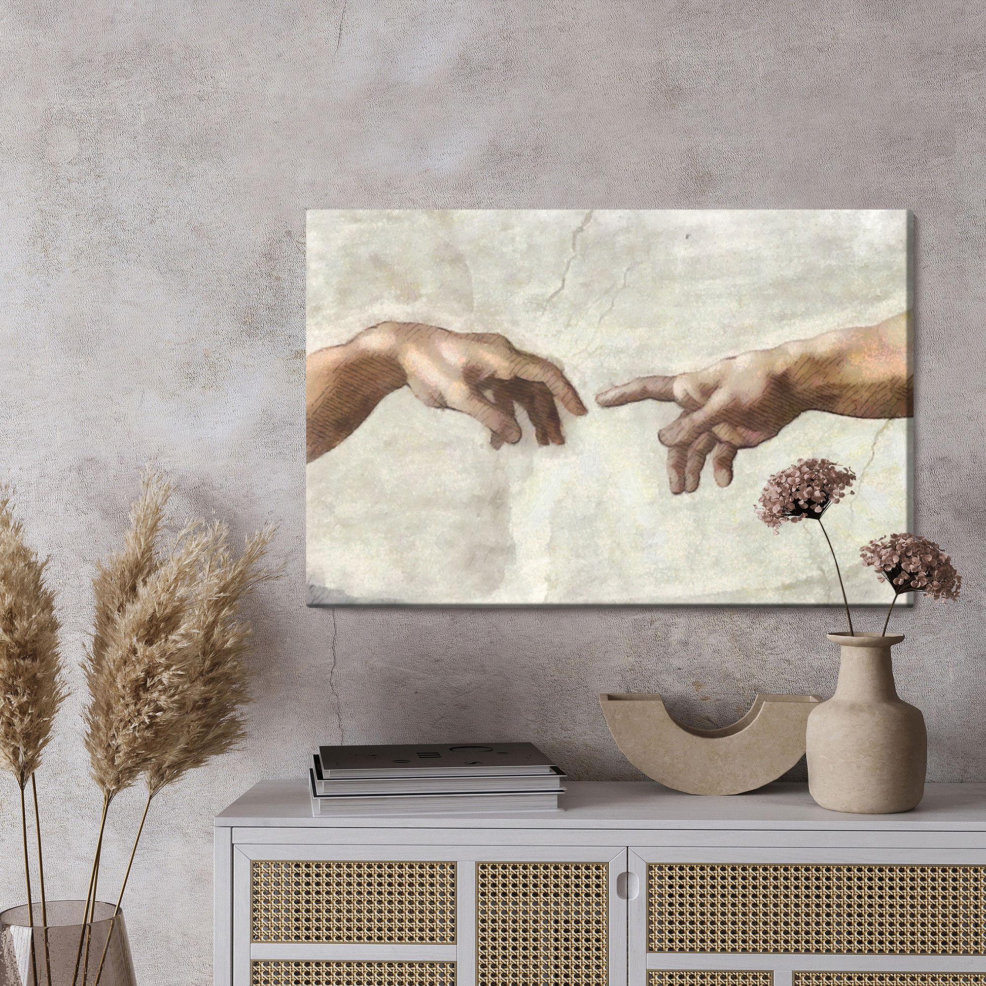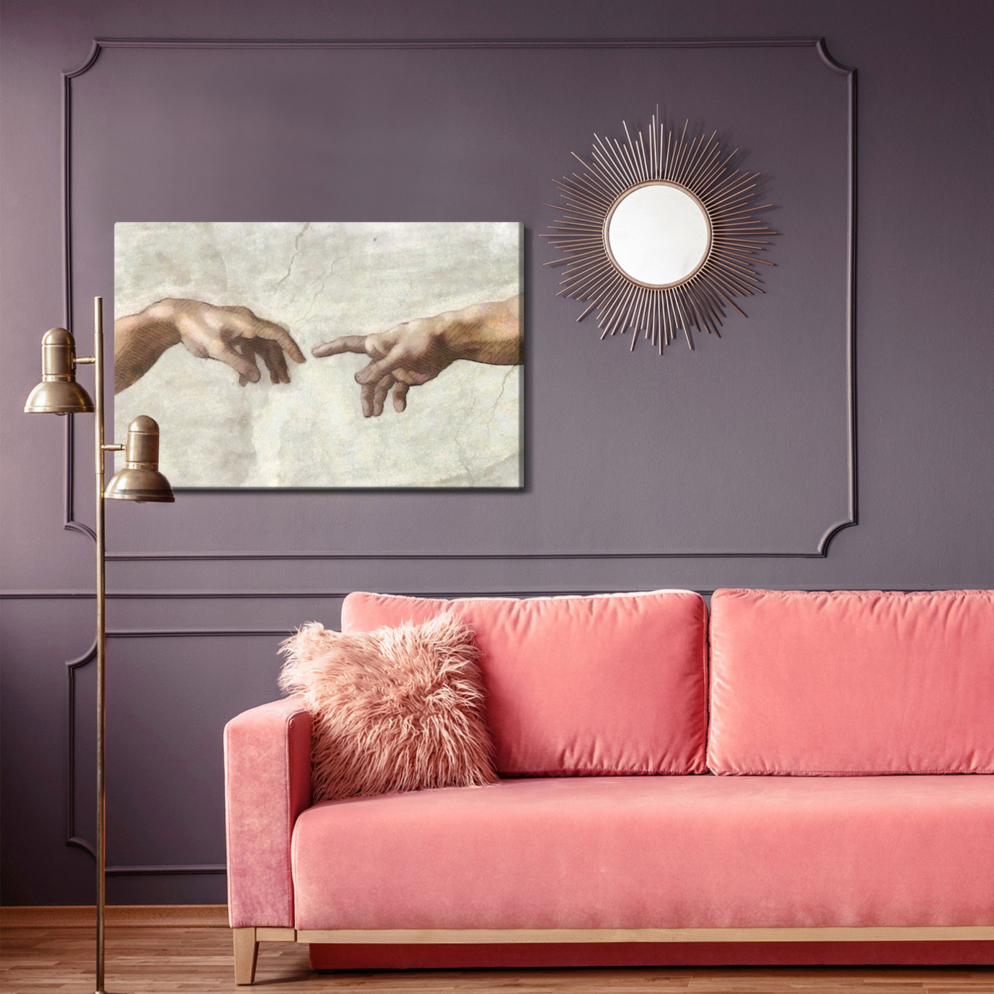 Motivet Adam's painted creation återges med hög färgprecision och detaljrikedom tack vare HP Latex-teknologi. Trycket sker med vattenbaserade, luktfria och GREENGUARD Gold-certifierade bläck som ger en upplösning på upp till 300 DPI. Färgerna är UV-beständiga och behåller sin styrka även i ljusa rum, vilket gör tavlan lämplig för både hem- och offentliga miljöer.