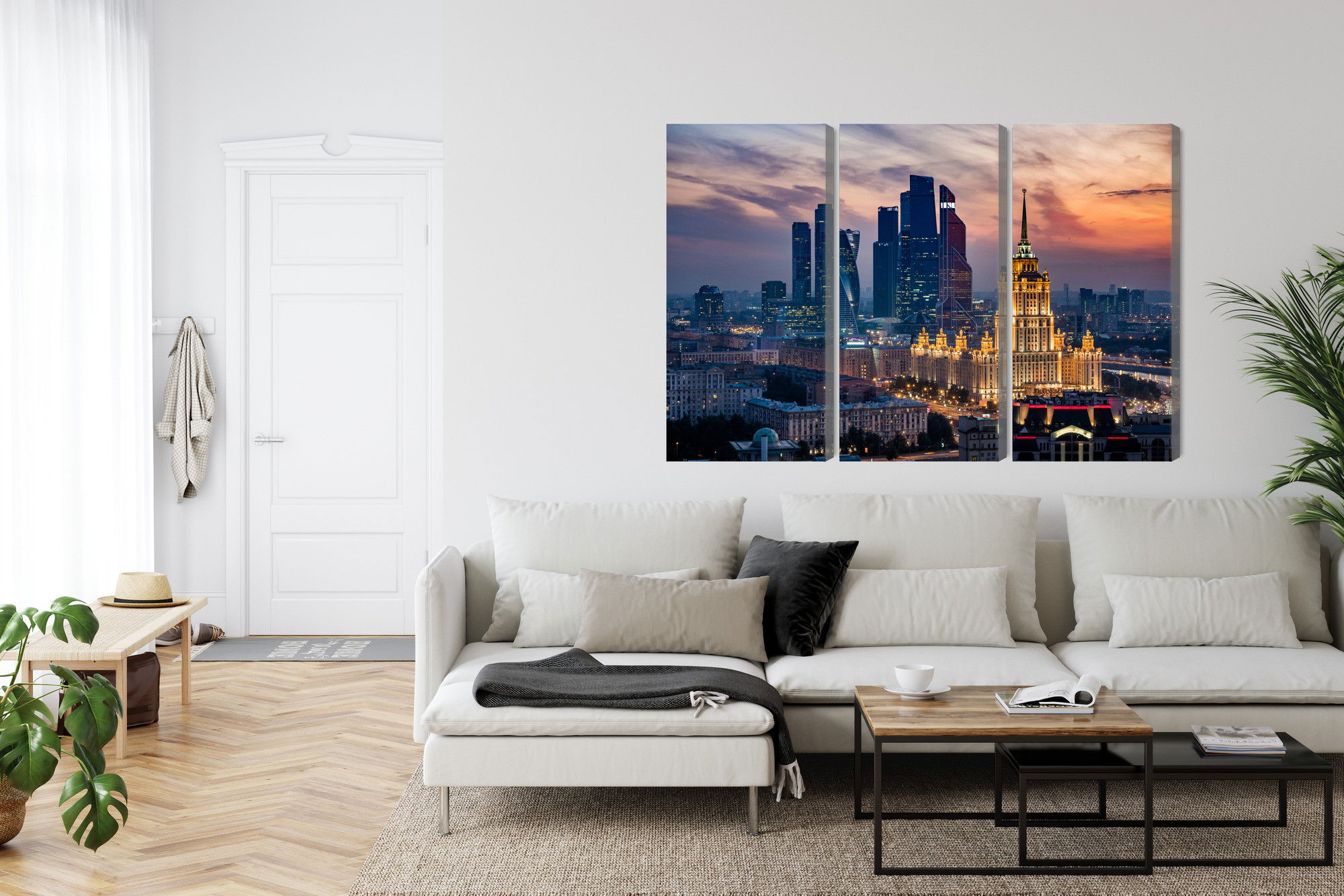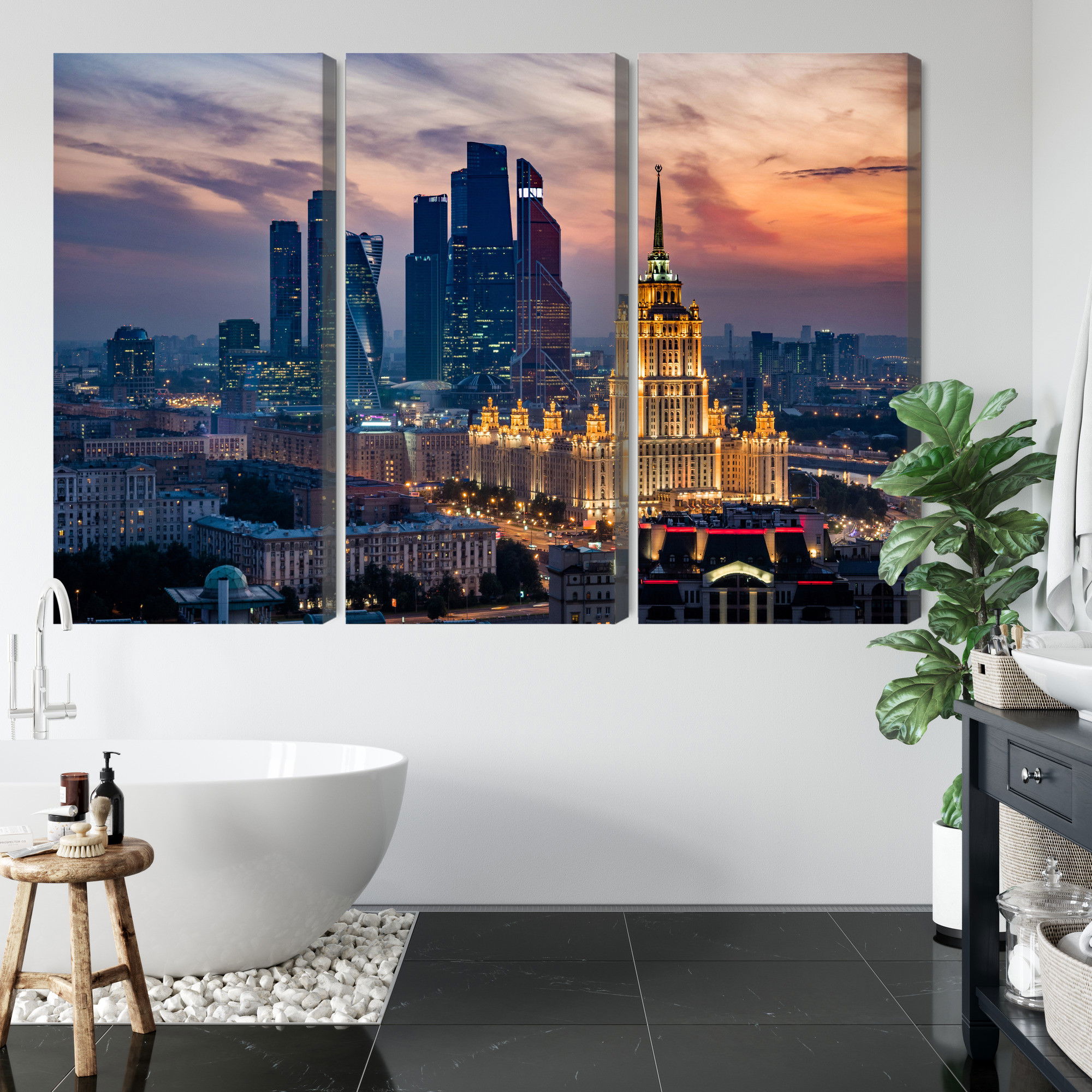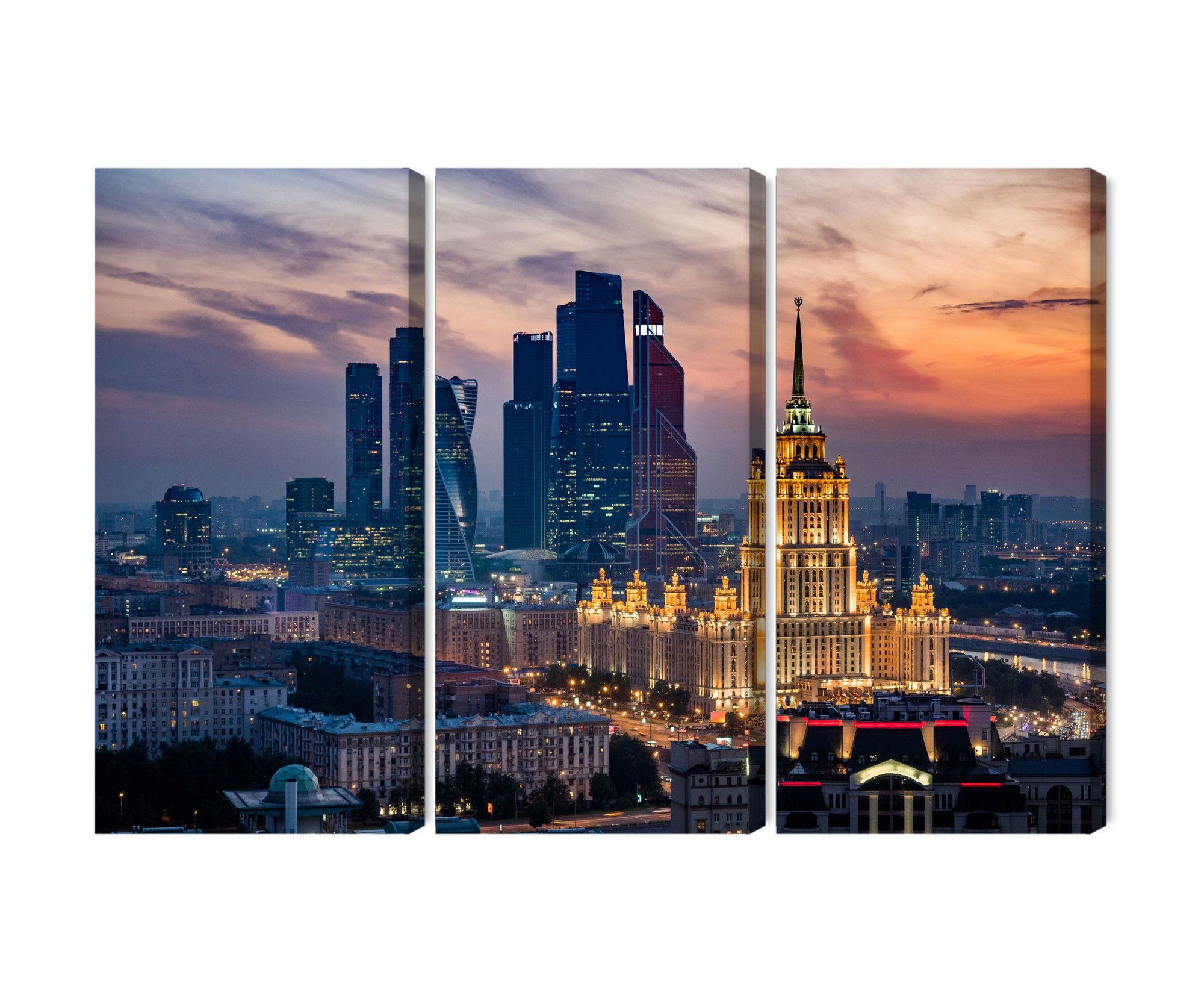 Varje tavla monteras på en massiv fururam. Format upp till 70×50 cm har en ram på 15 mm, medan format från 90×60 cm och uppåt har en ram på 20 mm. Den exakta dukspänningen gör att tavlan håller sin form över tid. Motivet Aerial view of the moscow trycks runt hela ramen vilket ger ett stilrent galleriuttryck där tavlan är lika vacker från sidan som framifrån. Kombinationen av rak dukspänning, rena linjer och korrekt tryck ger en professionell finish.