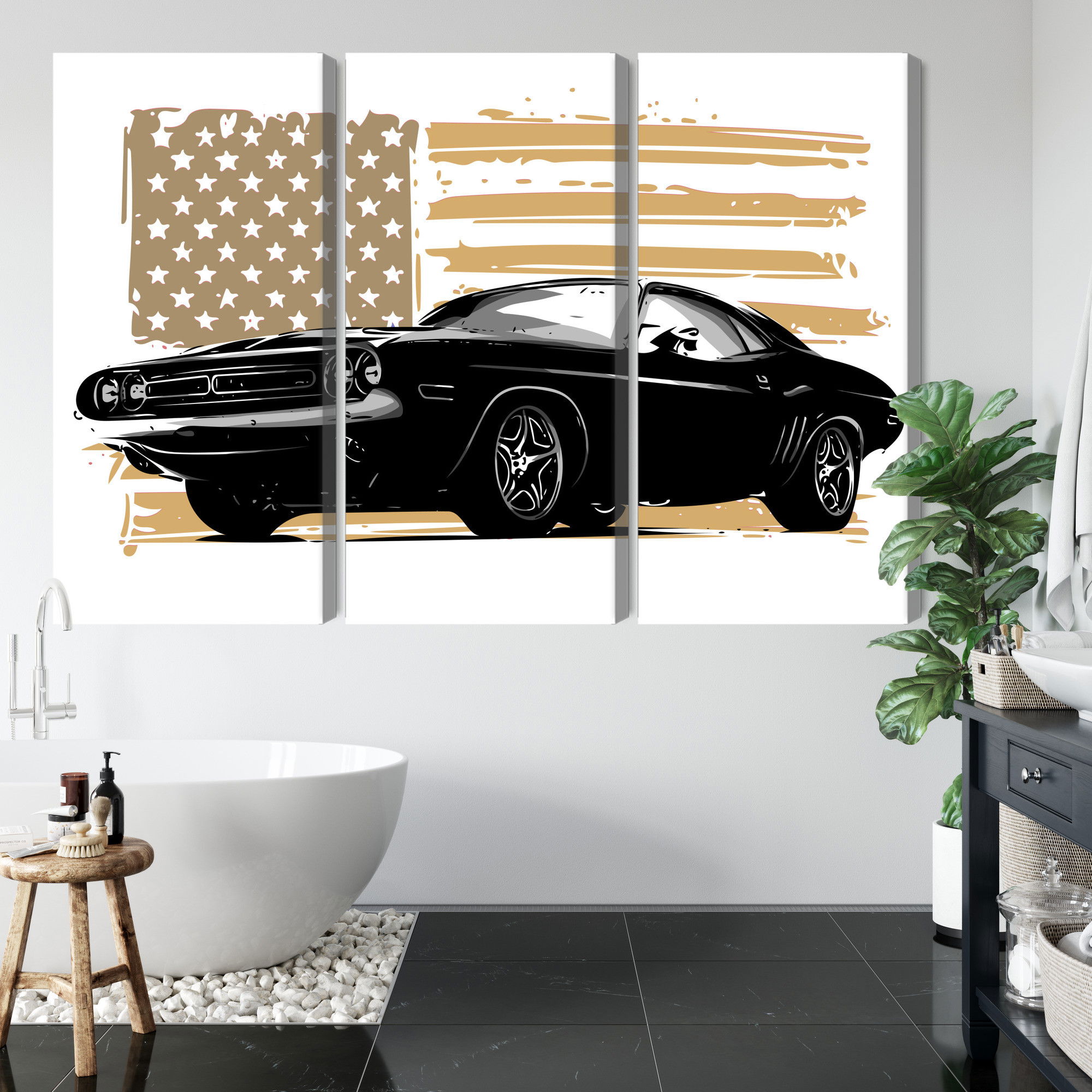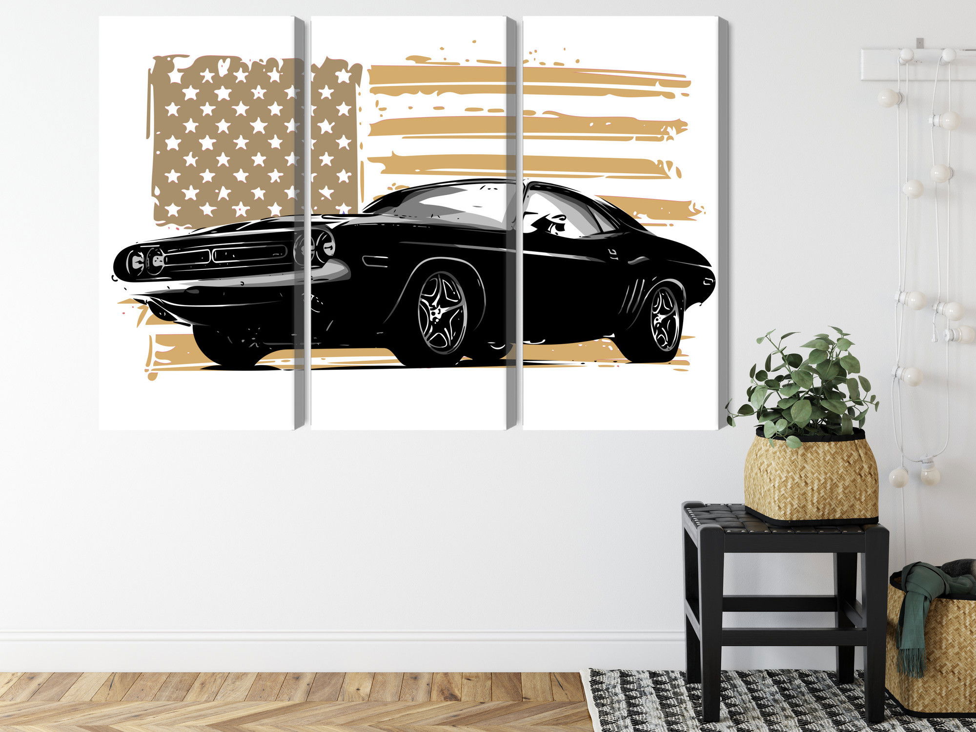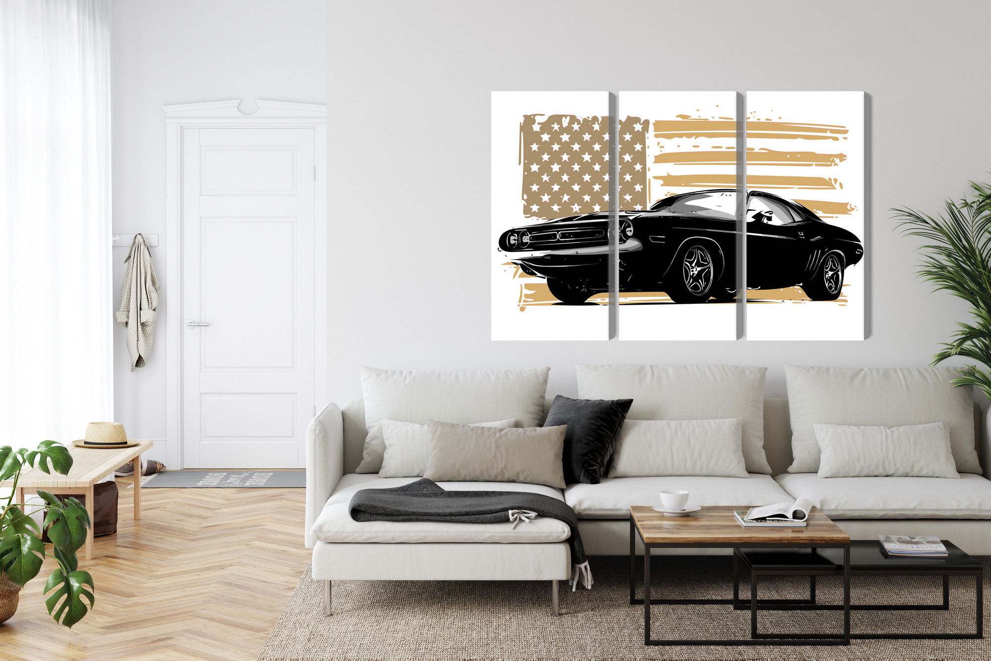 Ljuddämpande tavla – American muscle car with Usa för lugnare rum och mjukare akustik