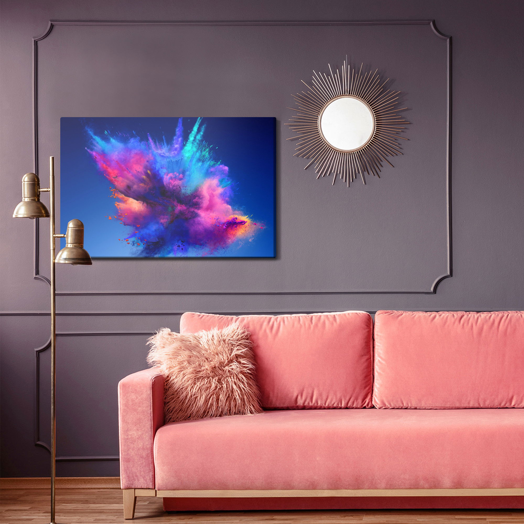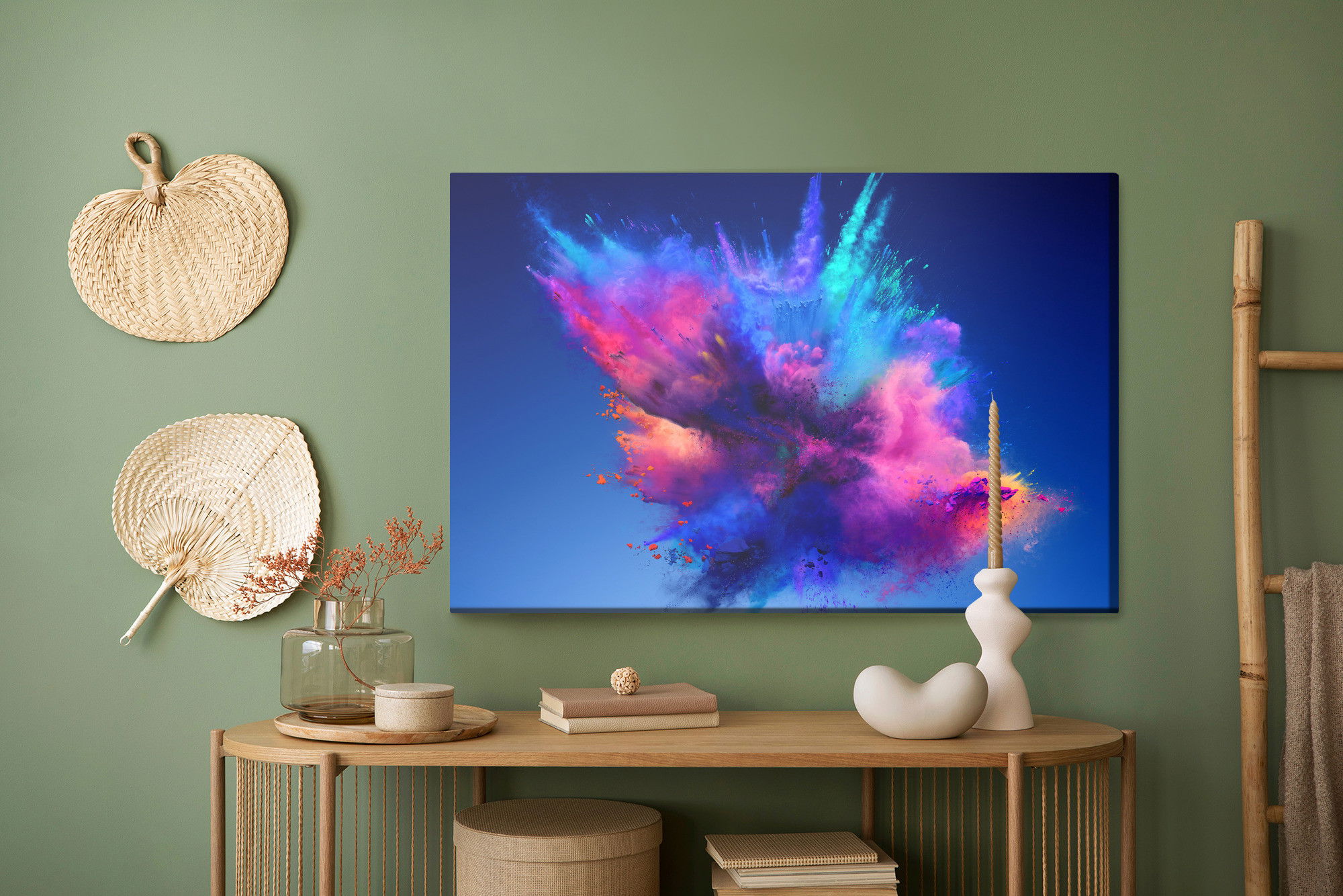 Motivet An abstract explosion återges med hög färgprecision och detaljrikedom tack vare HP Latex-teknologi. Trycket sker med vattenbaserade, luktfria och GREENGUARD Gold-certifierade bläck som ger en upplösning på upp till 300 DPI. Färgerna är UV-beständiga och behåller sin styrka även i ljusa rum, vilket gör tavlan lämplig för både hem- och offentliga miljöer.