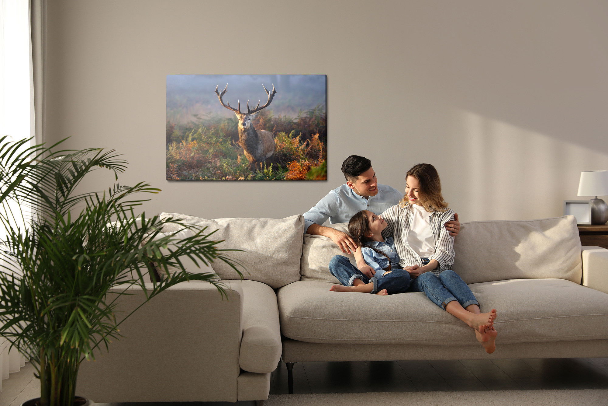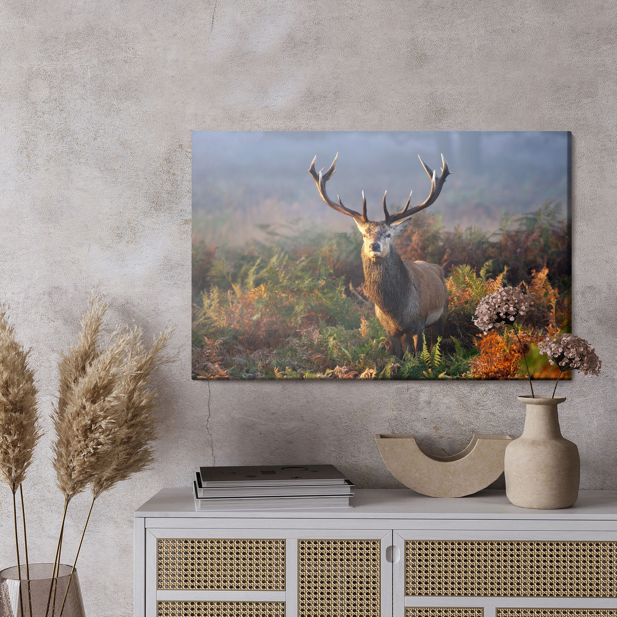 Motivet An impressive deer among återges med hög färgprecision och detaljrikedom tack vare HP Latex-teknologi. Trycket sker med vattenbaserade, luktfria och GREENGUARD Gold-certifierade bläck som ger en upplösning på upp till 300 DPI. Färgerna är UV-beständiga och behåller sin styrka även i ljusa rum, vilket gör tavlan lämplig för både hem- och offentliga miljöer.