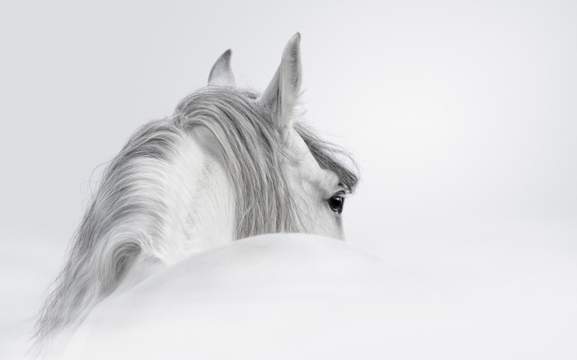 Ljuddämpande tavla – Andalusian horse in the fog för lugnare rum och mjukare akustik