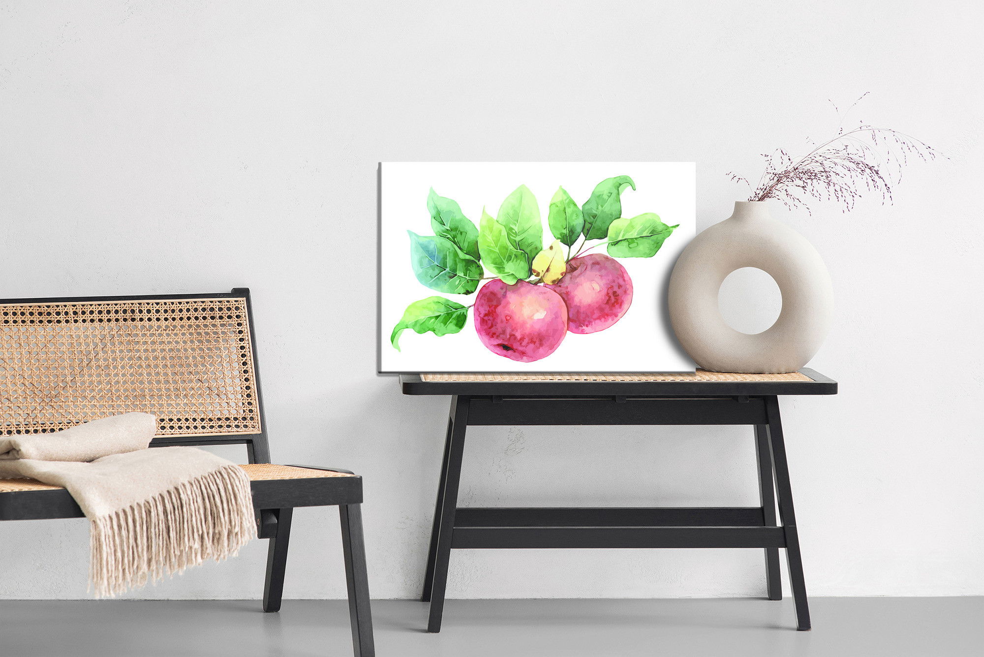 Motivet Apples painted återges med hög färgprecision och detaljrikedom tack vare HP Latex-teknologi. Trycket sker med vattenbaserade, luktfria och GREENGUARD Gold-certifierade bläck som ger en upplösning på upp till 300 DPI. Färgerna är UV-beständiga och behåller sin styrka även i ljusa rum, vilket gör tavlan lämplig för både hem- och offentliga miljöer.
