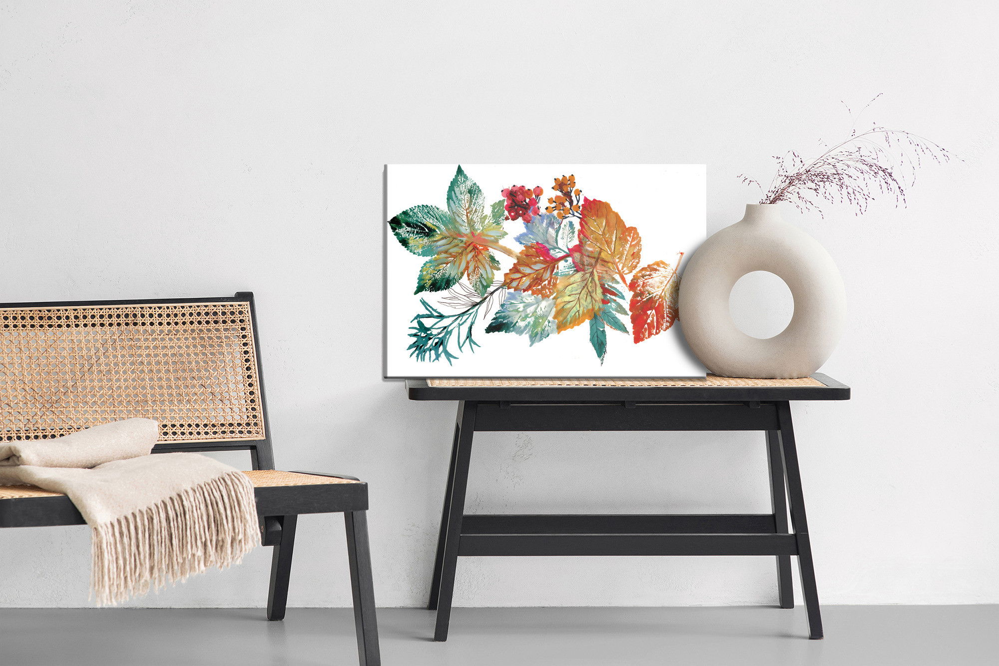 Motivet Autumn leaves as if painted återges med hög färgprecision och detaljrikedom tack vare HP Latex-teknologi. Trycket sker med vattenbaserade, luktfria och GREENGUARD Gold-certifierade bläck som ger en upplösning på upp till 300 DPI. Färgerna är UV-beständiga och behåller sin styrka även i ljusa rum, vilket gör tavlan lämplig för både hem- och offentliga miljöer.