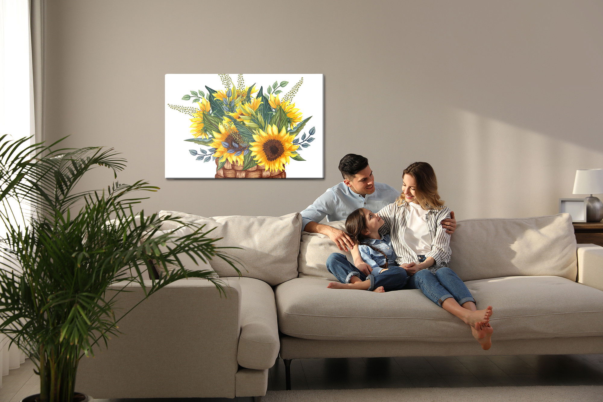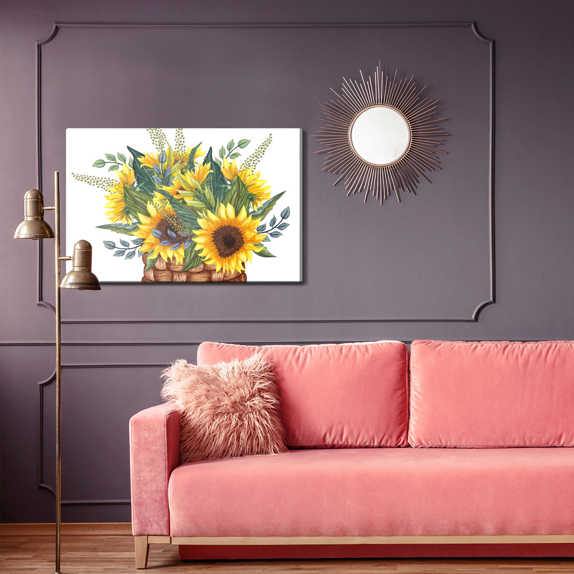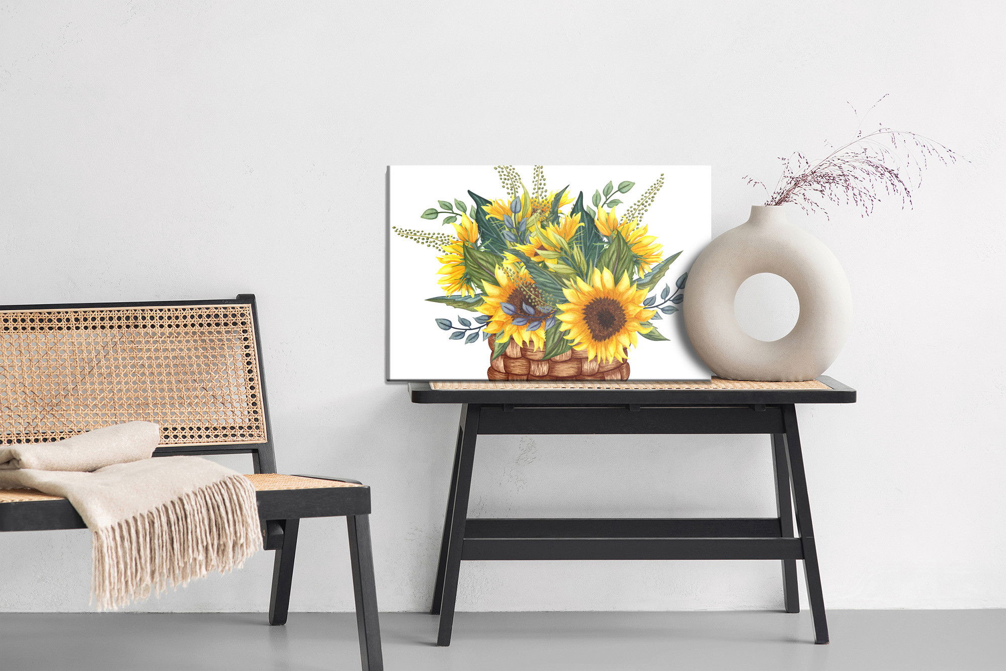 Motivet Basket with a bouquet återges med hög färgprecision och detaljrikedom tack vare HP Latex-teknologi. Trycket sker med vattenbaserade, luktfria och GREENGUARD Gold-certifierade bläck som ger en upplösning på upp till 300 DPI. Färgerna är UV-beständiga och behåller sin styrka även i ljusa rum, vilket gör tavlan lämplig för både hem- och offentliga miljöer.
