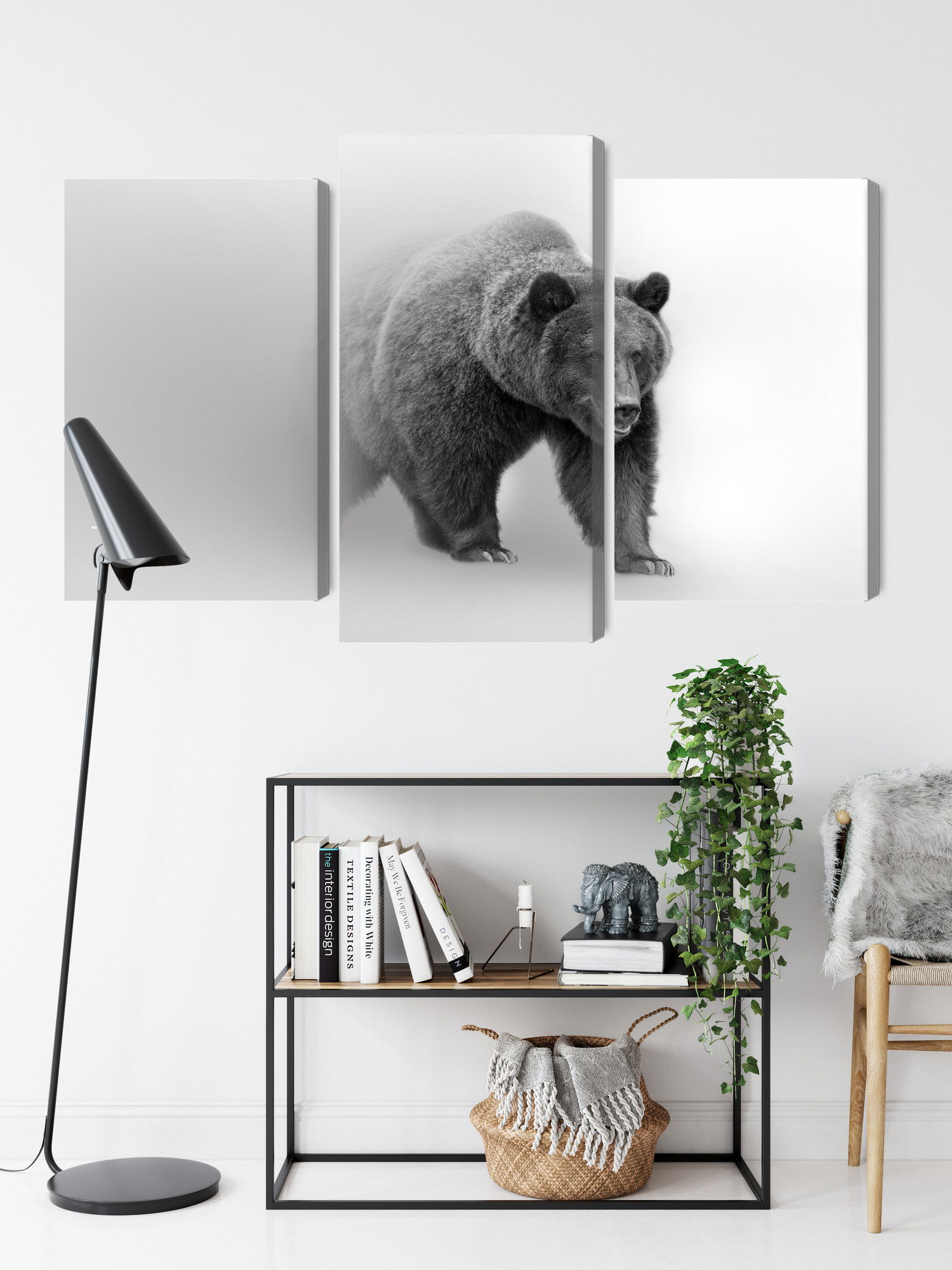 Varje tavla monteras på en massiv fururam. Format upp till 70×50 cm har en ram på 15 mm, medan format från 90×60 cm och uppåt har en ram på 20 mm. Den exakta dukspänningen gör att tavlan håller sin form över tid. Motivet Bear in the fog 3d trycks runt hela ramen vilket ger ett stilrent galleriuttryck där tavlan är lika vacker från sidan som framifrån. Kombinationen av rak dukspänning, rena linjer och korrekt tryck ger en professionell finish.