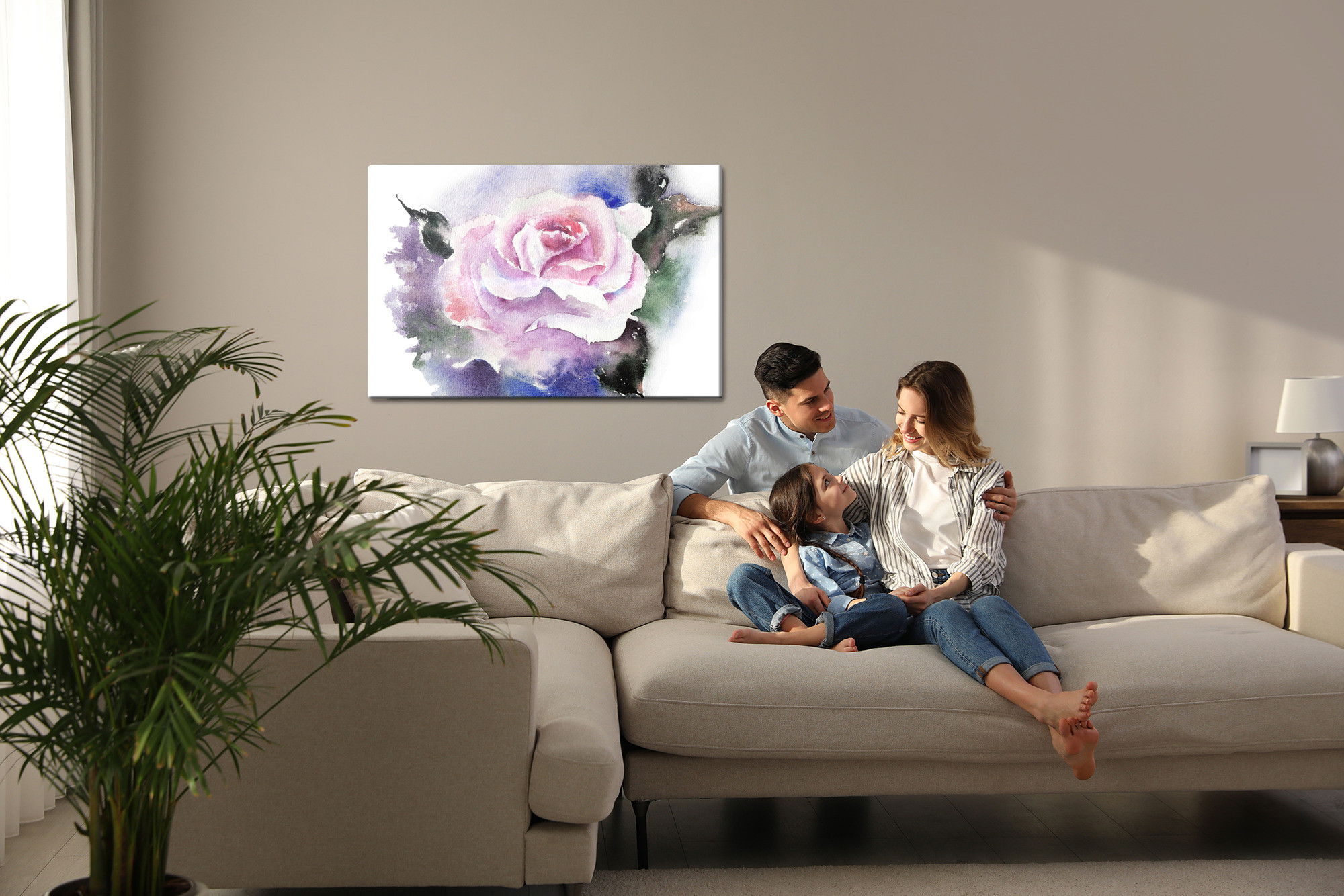 Motivet Beautiful rose painted återges med hög färgprecision och detaljrikedom tack vare HP Latex-teknologi. Trycket sker med vattenbaserade, luktfria och GREENGUARD Gold-certifierade bläck som ger en upplösning på upp till 300 DPI. Färgerna är UV-beständiga och behåller sin styrka även i ljusa rum, vilket gör tavlan lämplig för både hem- och offentliga miljöer.